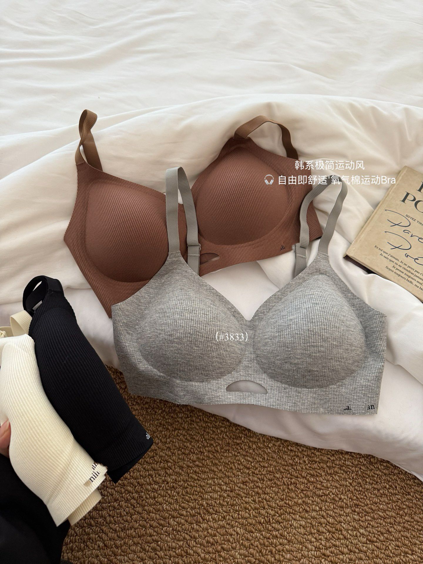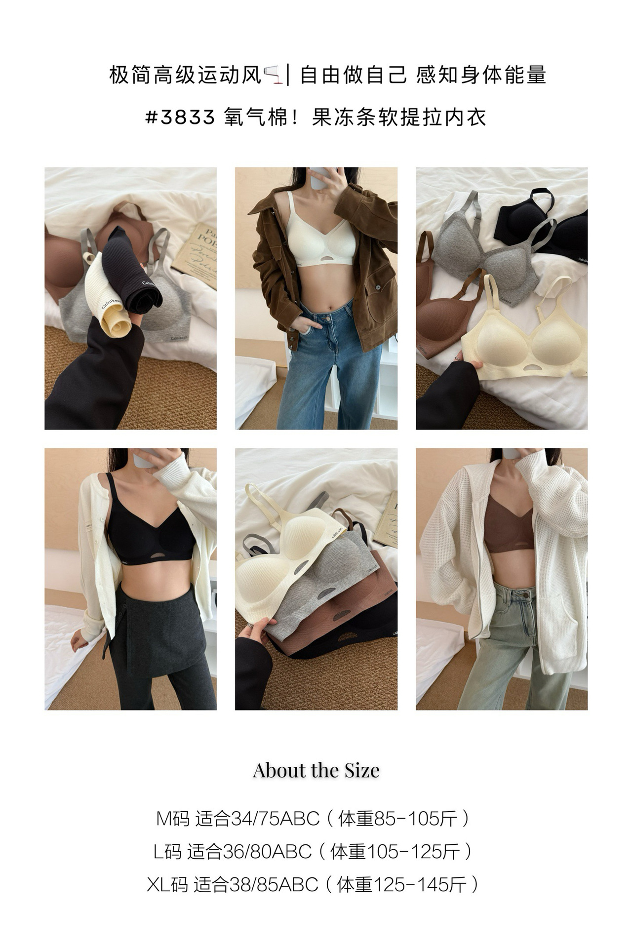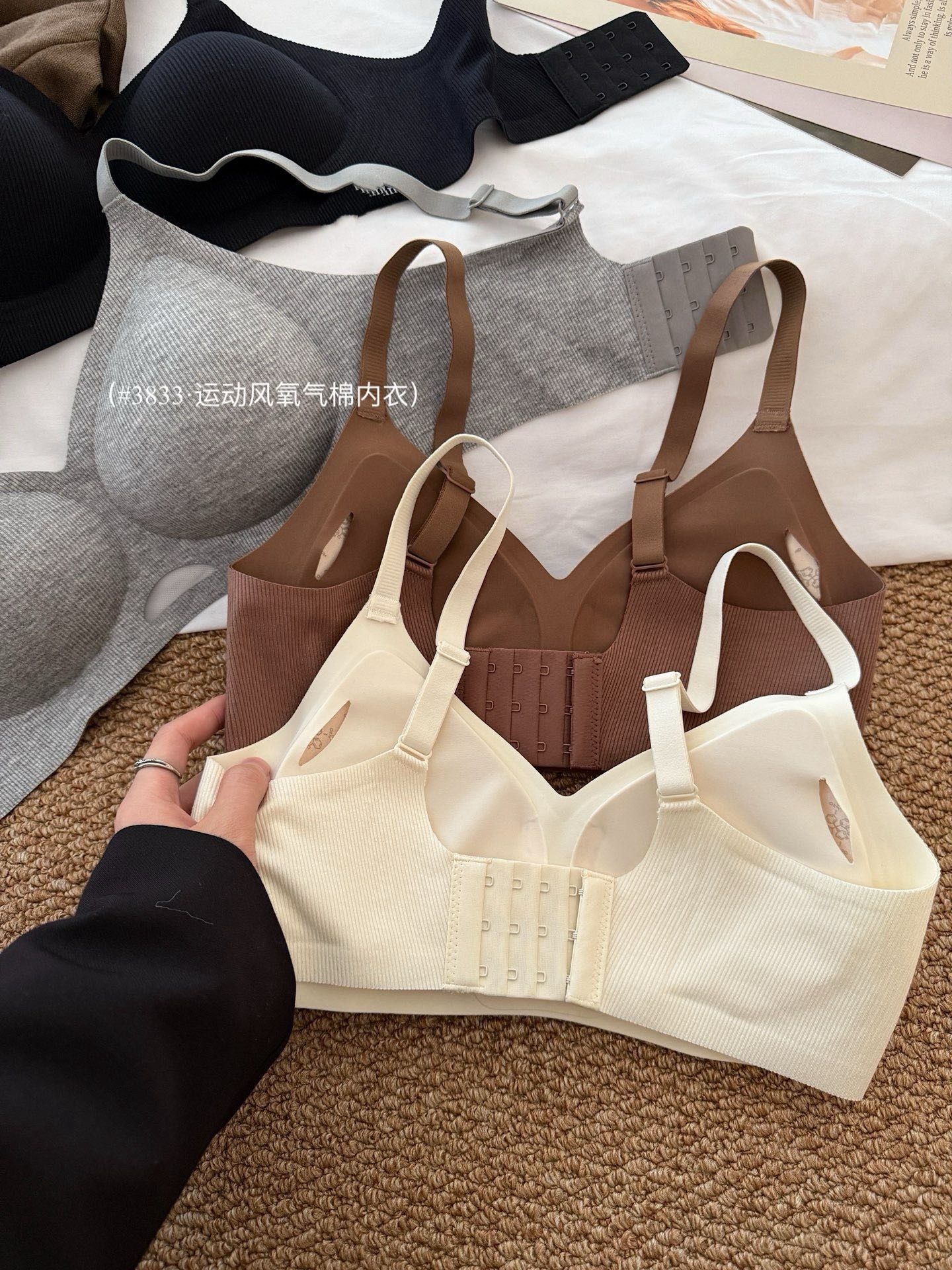 3833 산소 코튼 젤리 스트립 소프트 리프팅 속옷 여성의 무선 푸시 업 유방 컬렉션 안티 처짐 소프트 지원 브래지어