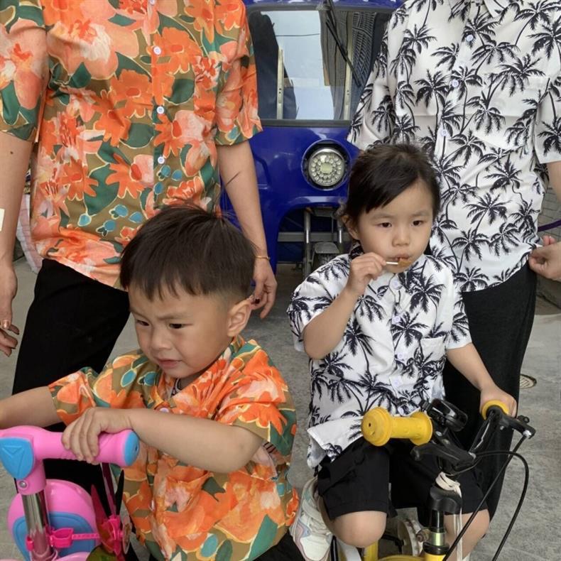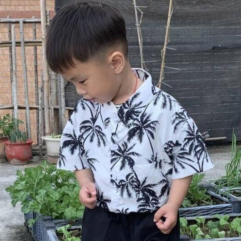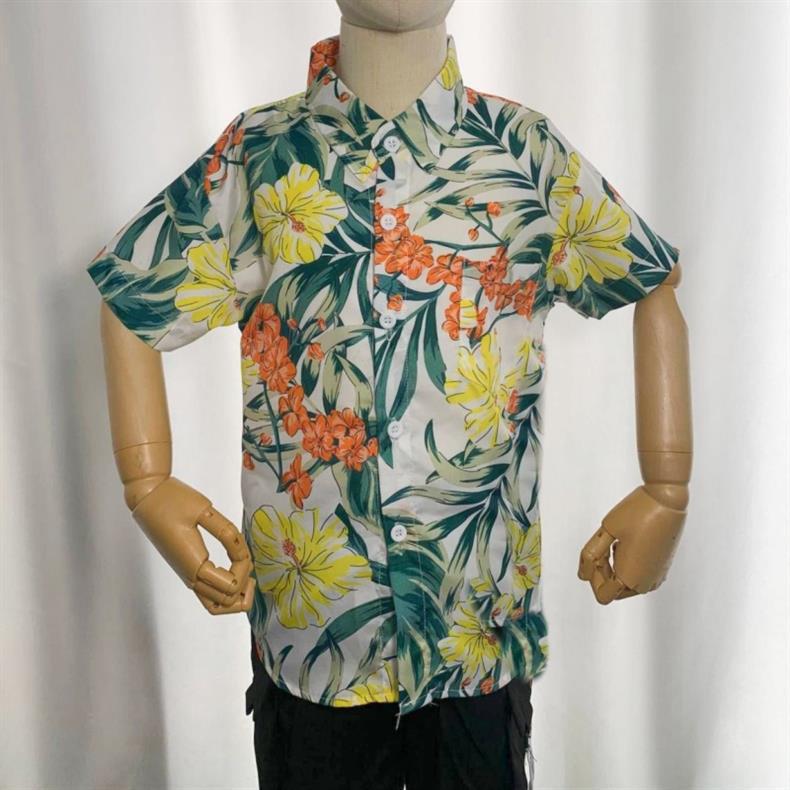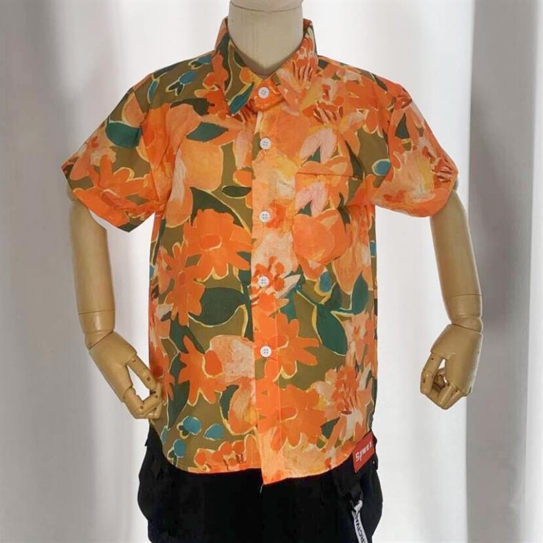튀긴 거리 아기 꽃 셔츠 비치 반팔 휴일 부모-자식 느슨한 복고풍 반소매 셔츠 여름 어린이 패션스토어 가기