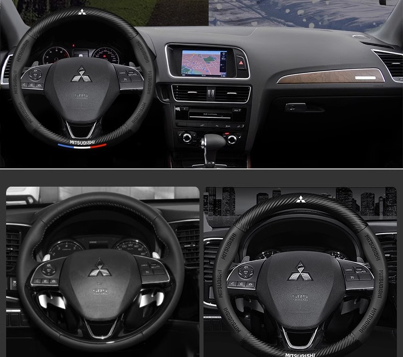 • 풀 탄소 섬유 가죽 모델 + 미쓰비시 로고 + 블랙 + 라운드