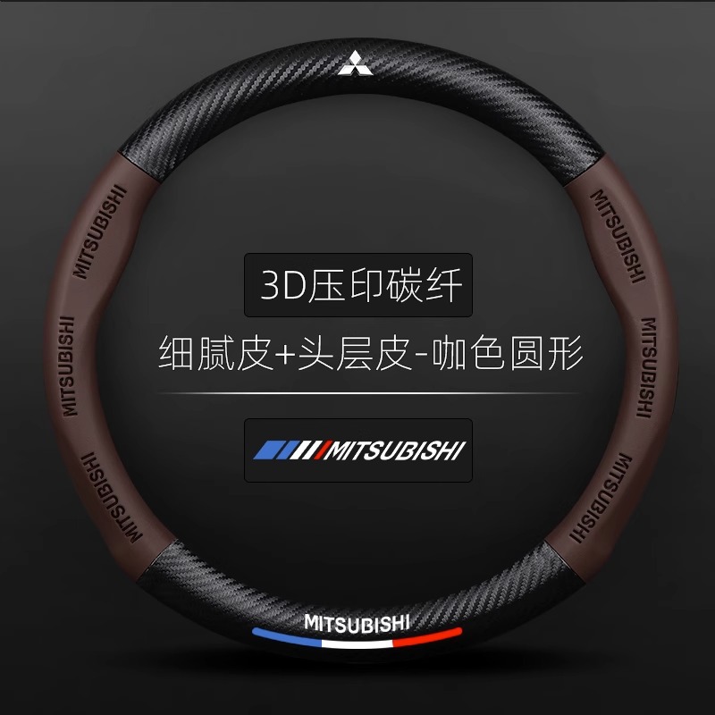 • 3D 엠보싱 탄소 섬유 가죽 모델 + 3색 로고 + 미쓰비시 로고 + 커피 컬러 + 라운드