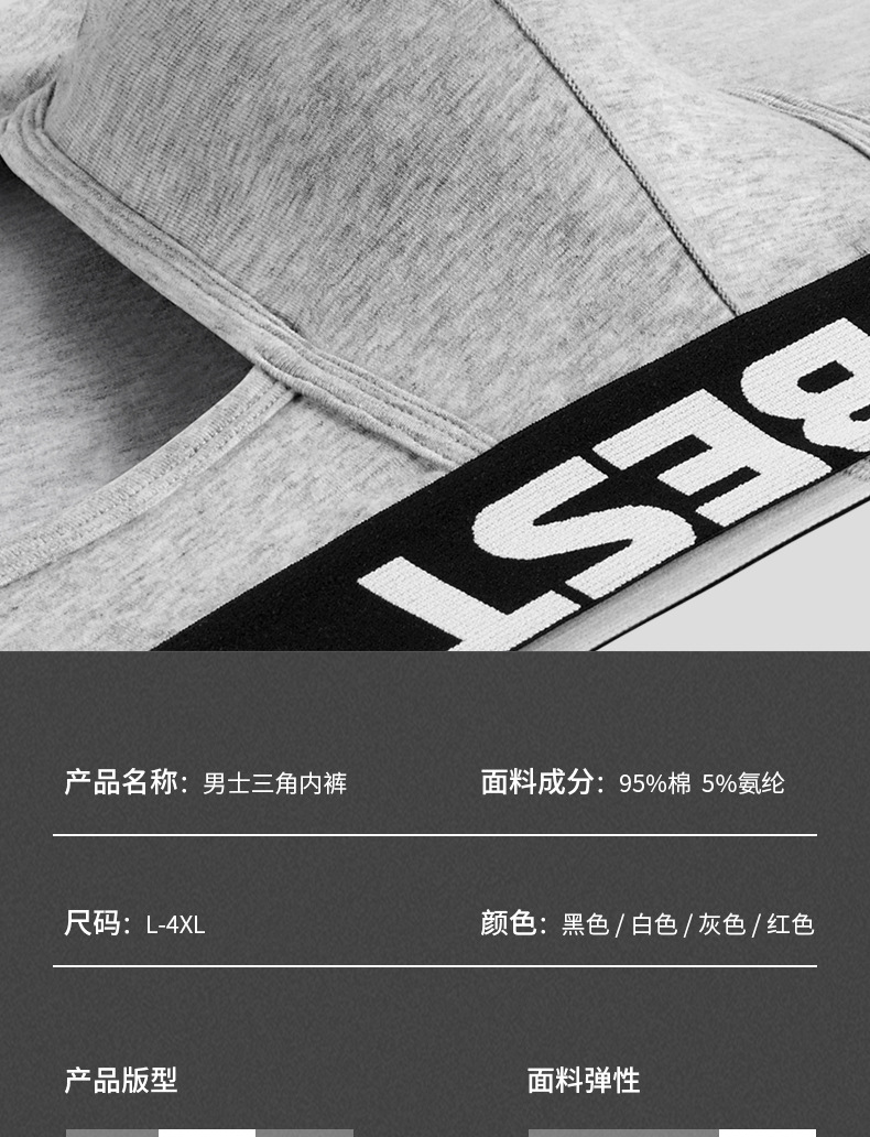 사계절 순면 남성 패션 브리프 U 자형 대형 가방 신장 면화 남성 속옷 단색 청소년 속옷