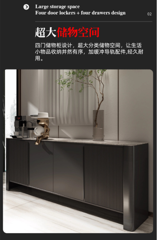 2025 새로운 현대적인 가벼운 럭셔리 스타일의 슬레이트 사이드보드, 거실 북유럽 장식 캐비닛, 벽면 수납 현관 캐비닛