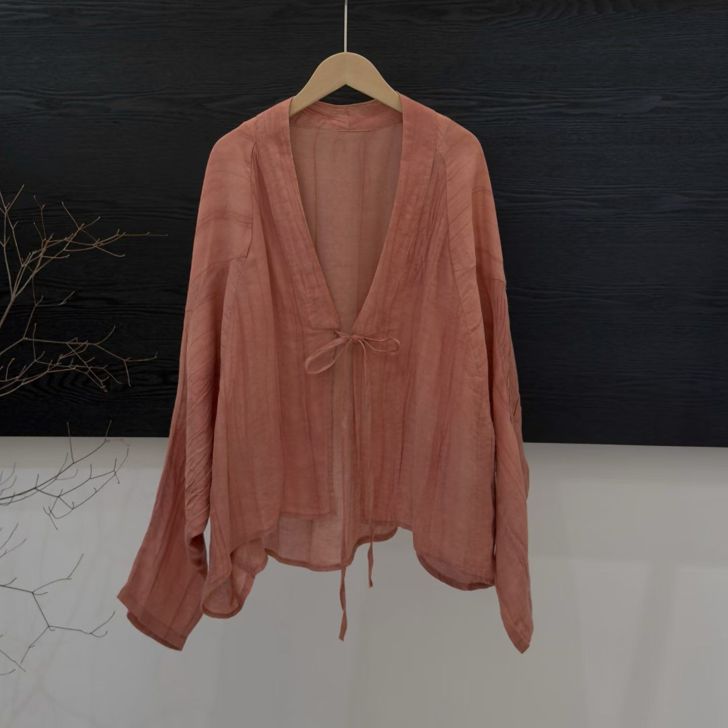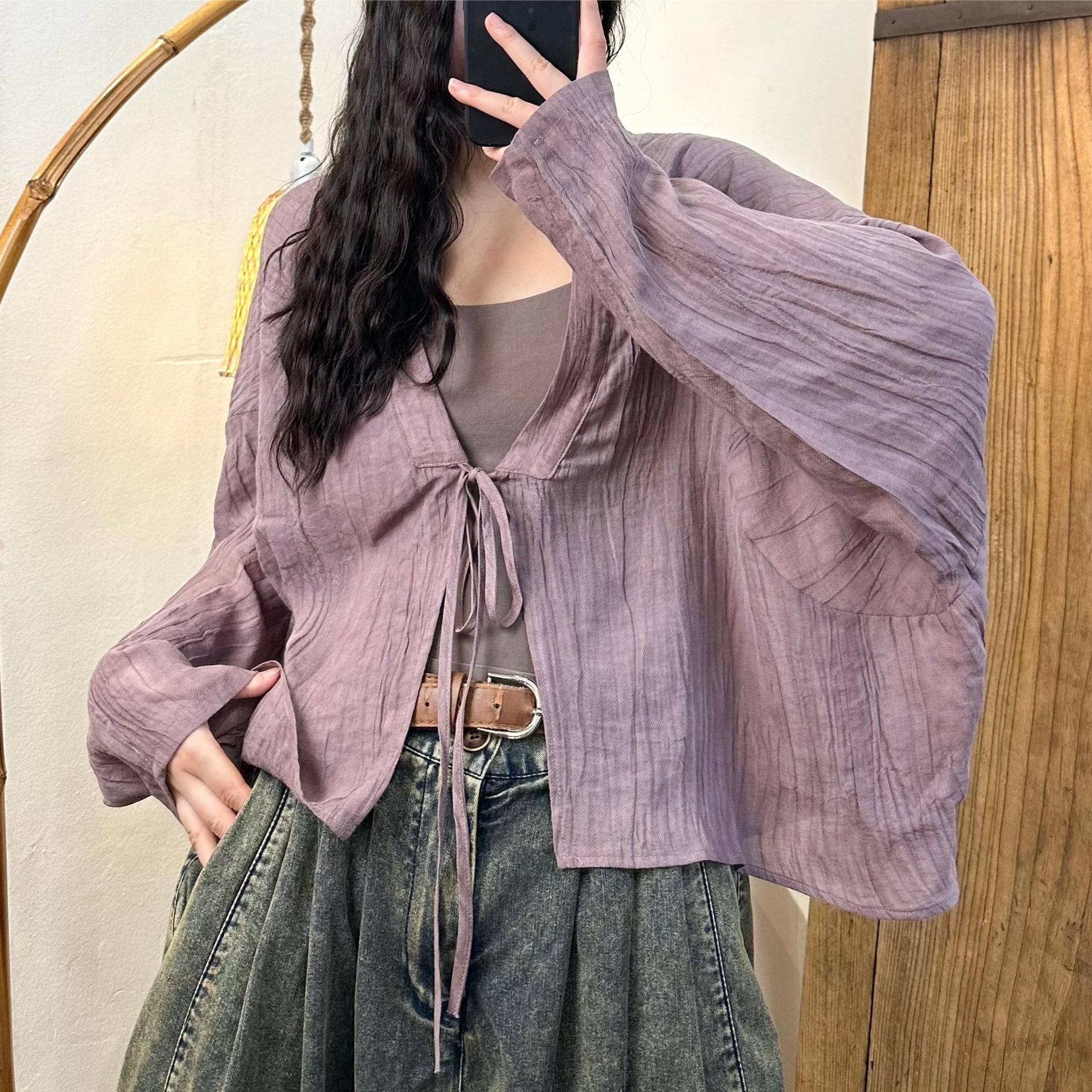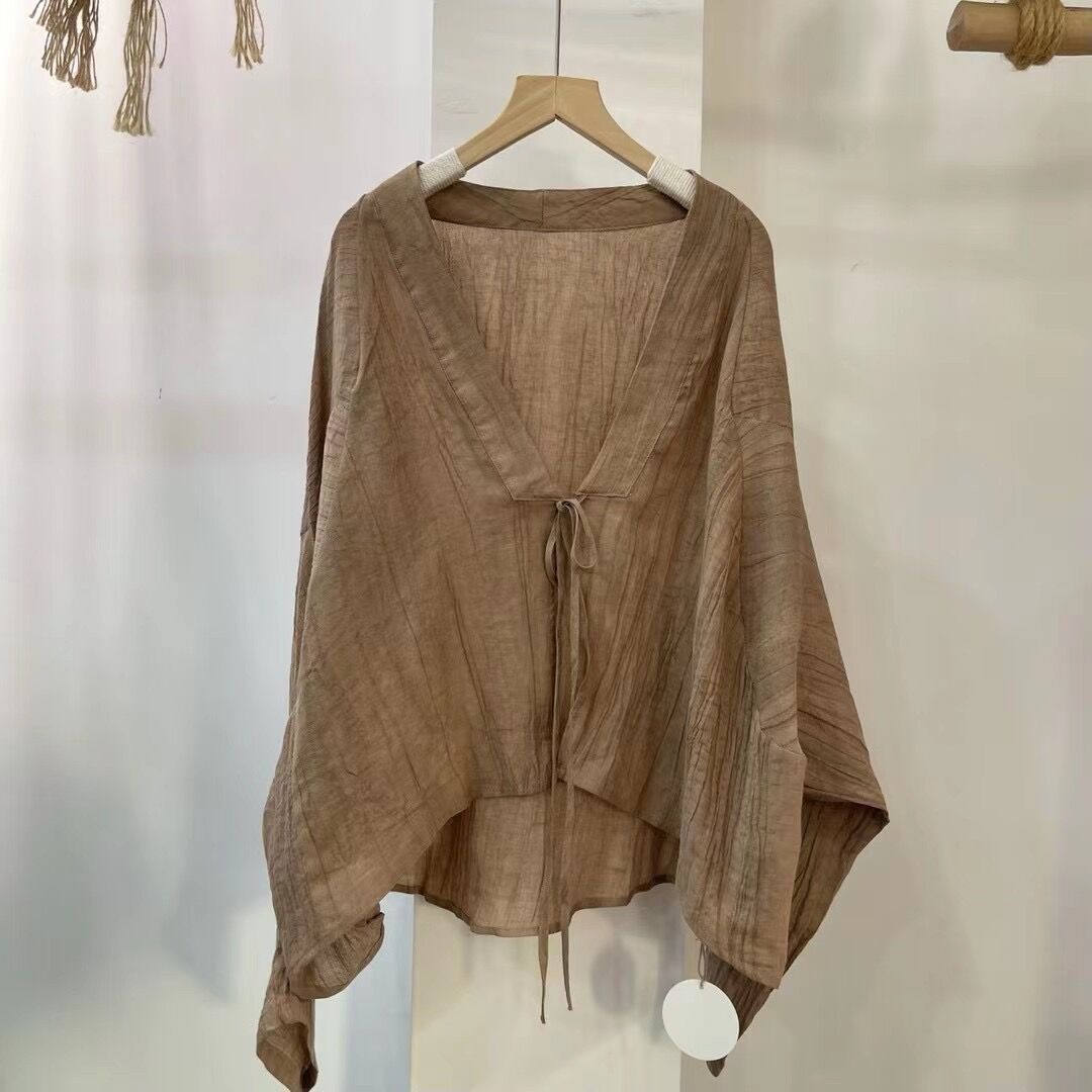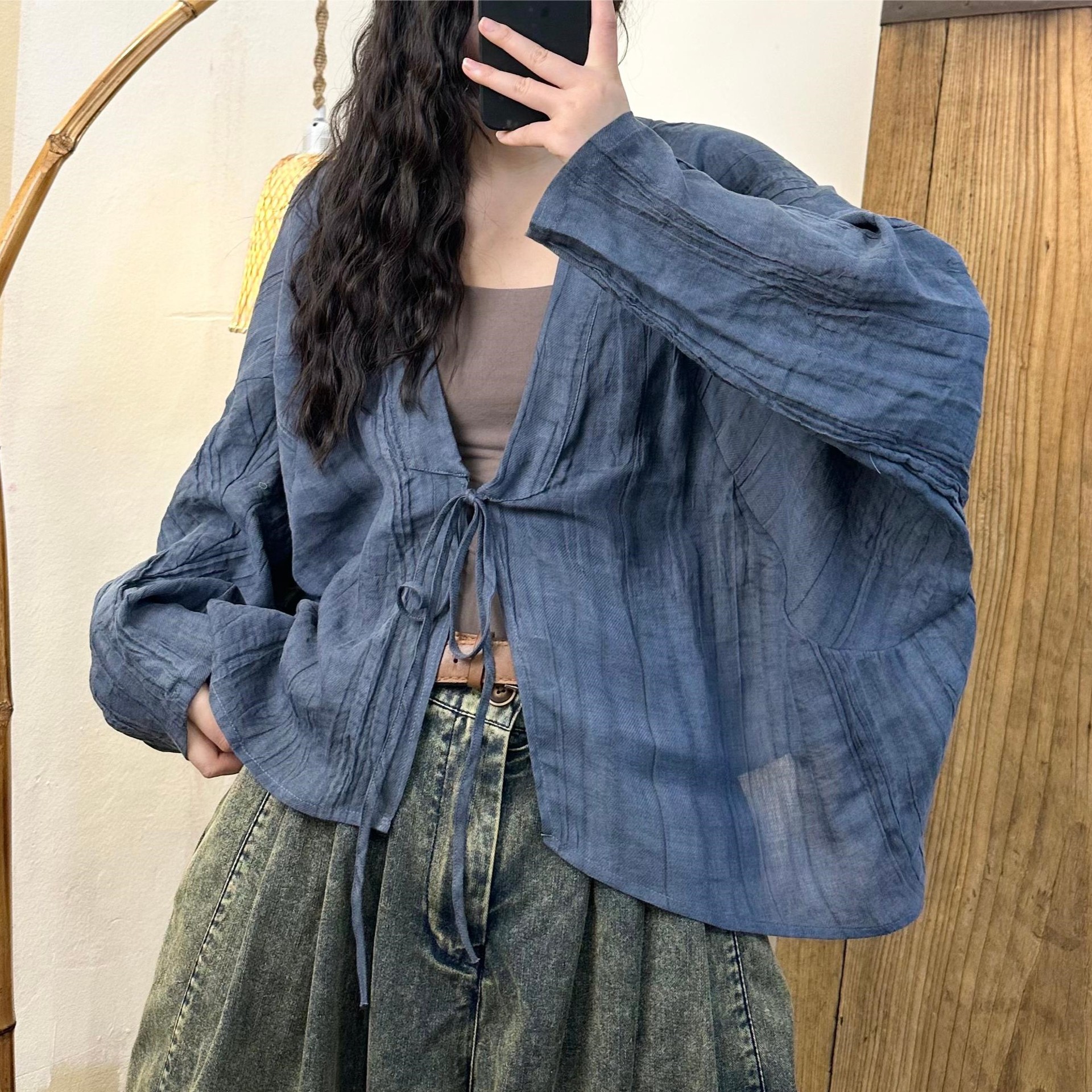 텐셀 모시 셔츠 2026 여름 신상품 타이다이 레이스업 자외선 차단 가디건 솔리드 컬러 여성용 상의 24036