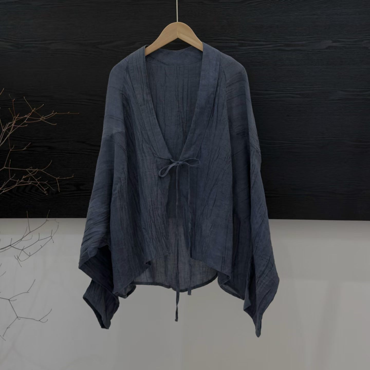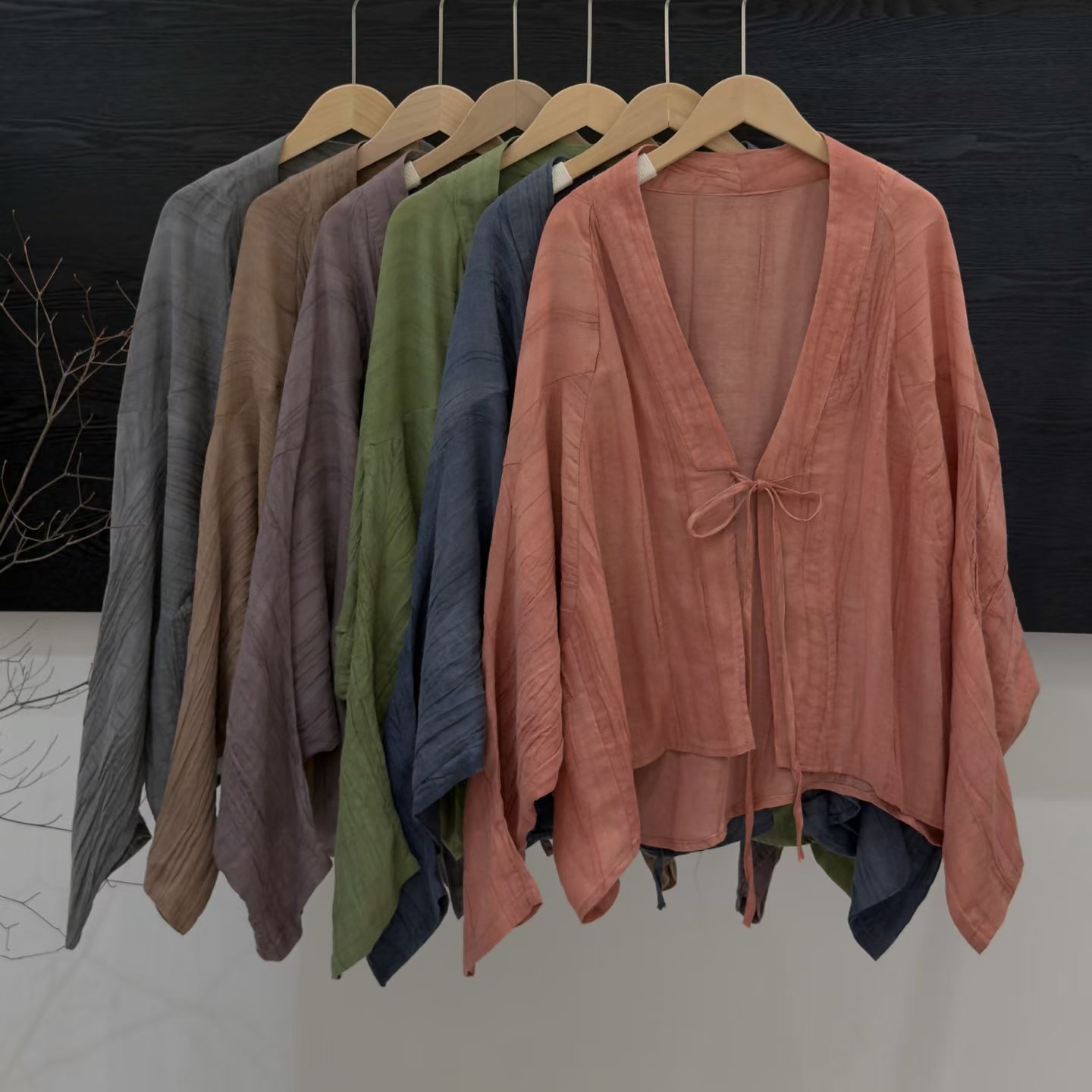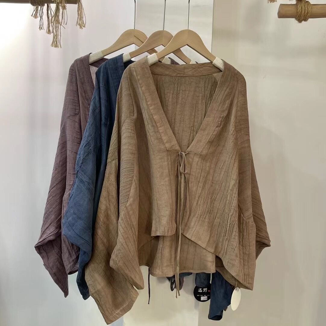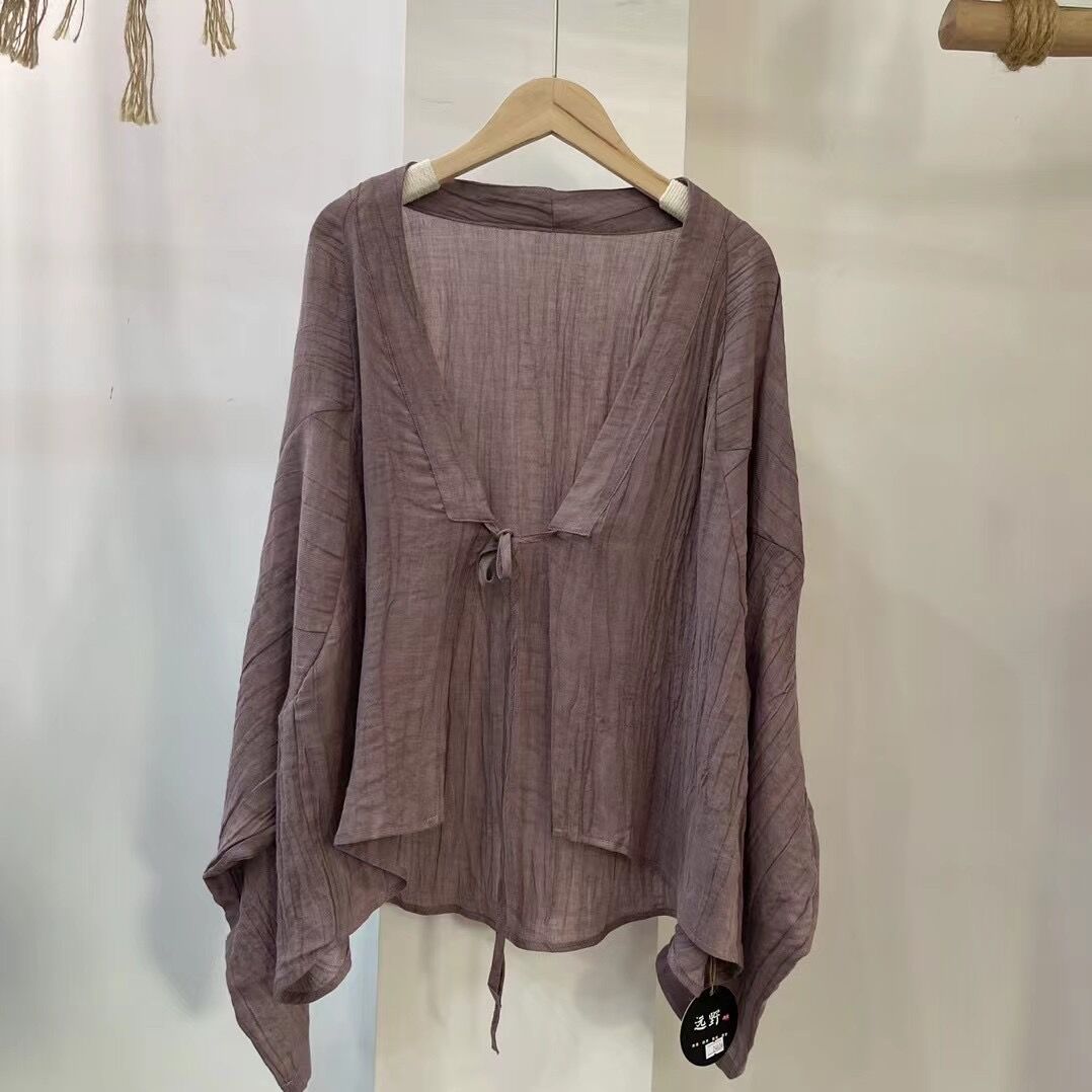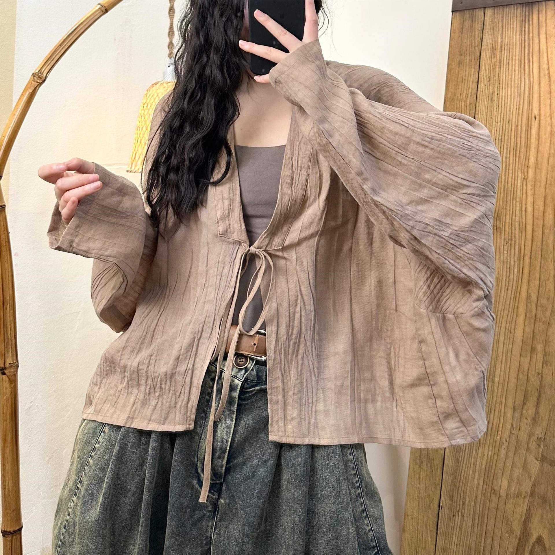 텐셀 모시 셔츠 2026 여름 신상품 타이다이 레이스업 자외선 차단 가디건 솔리드 컬러 여성용 상의 24036