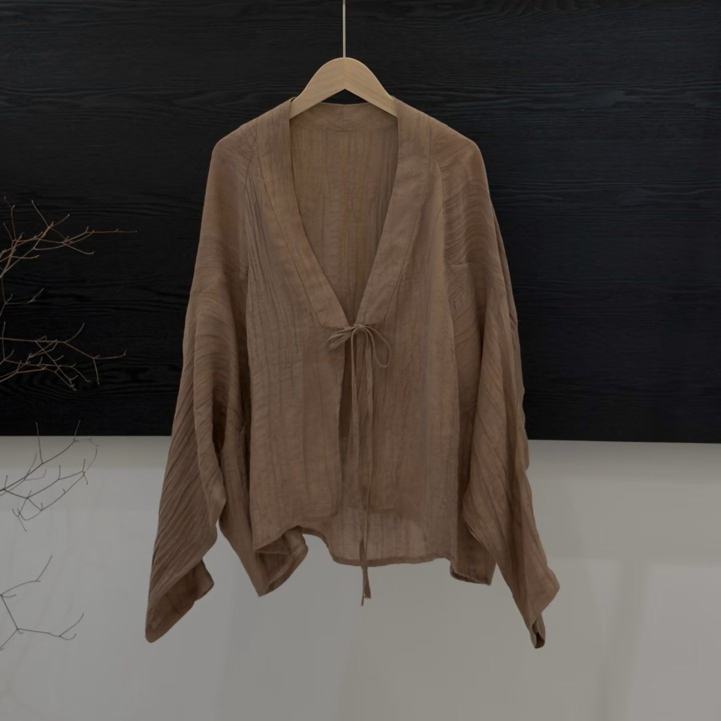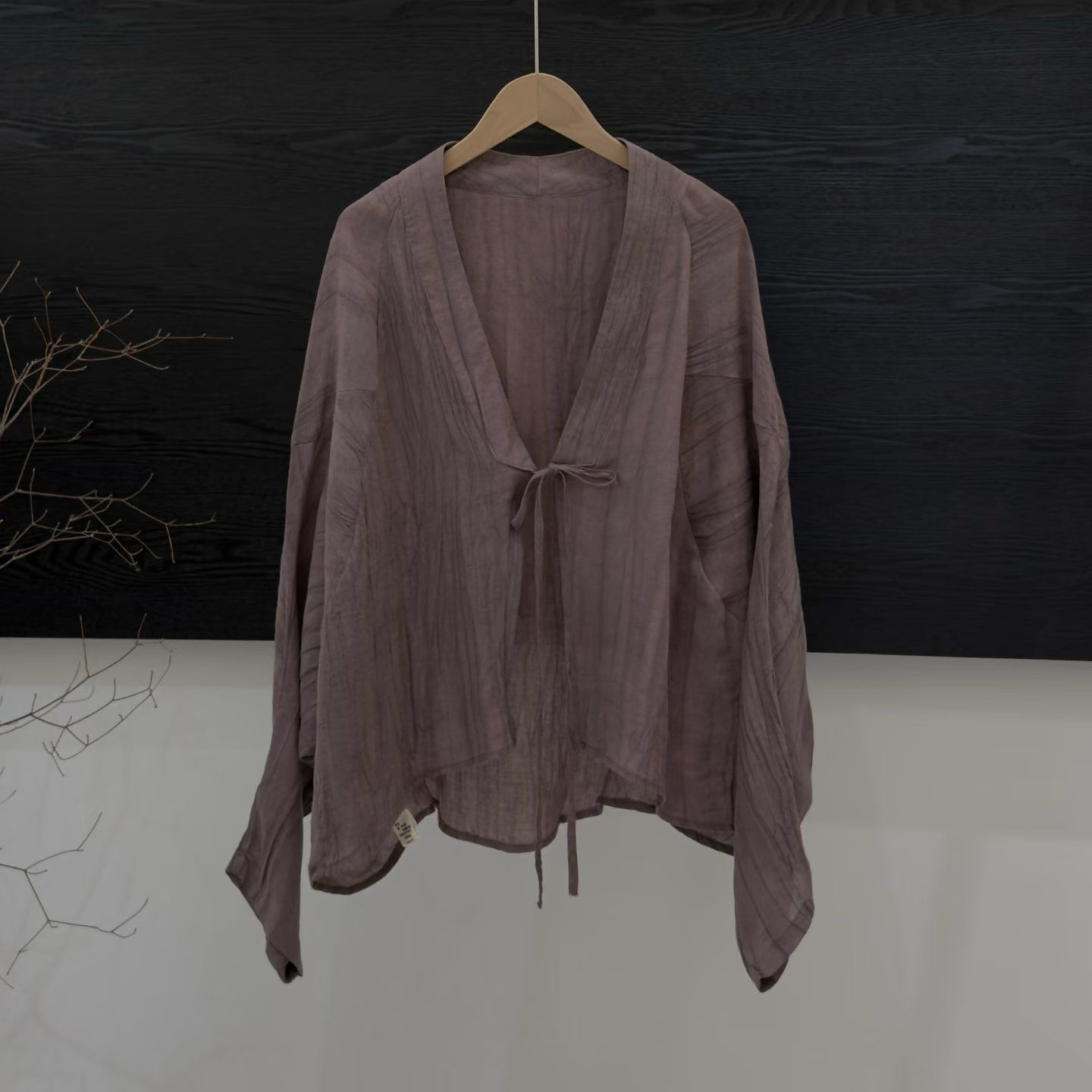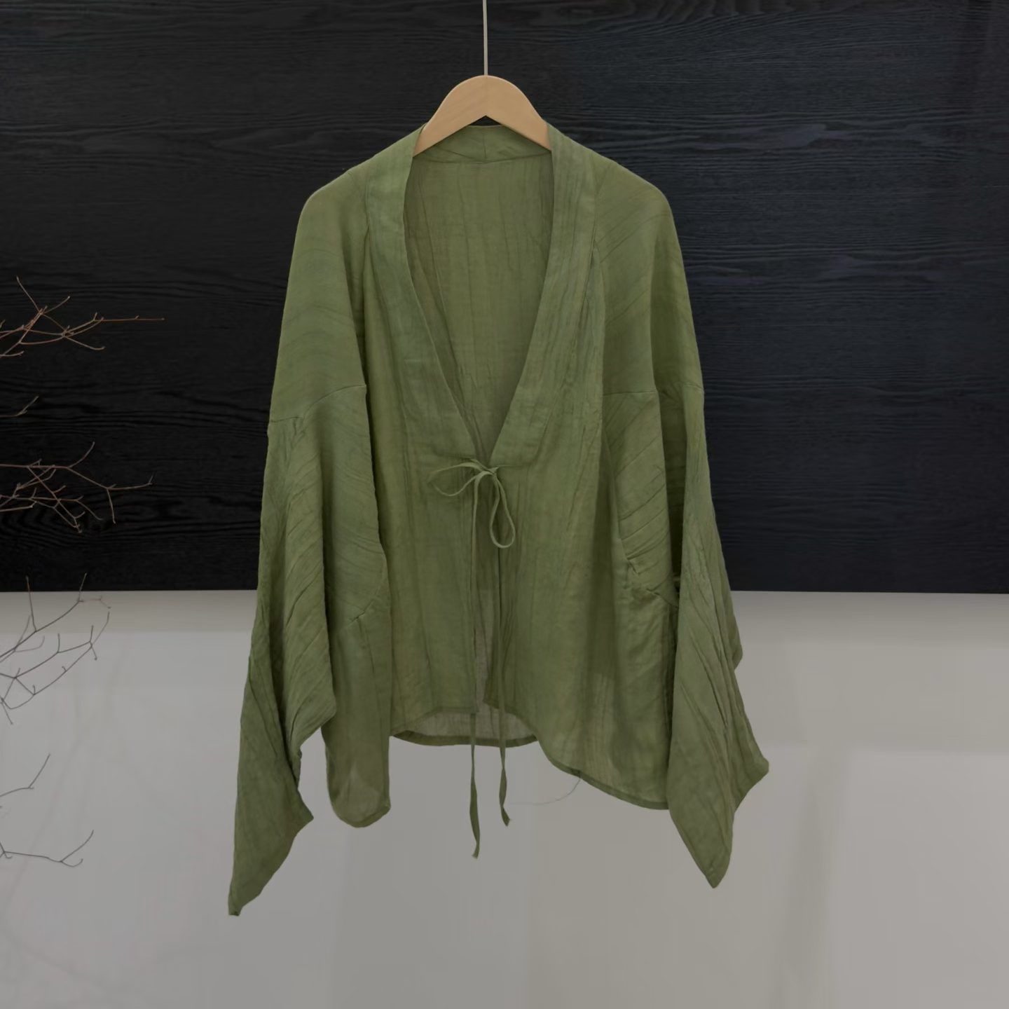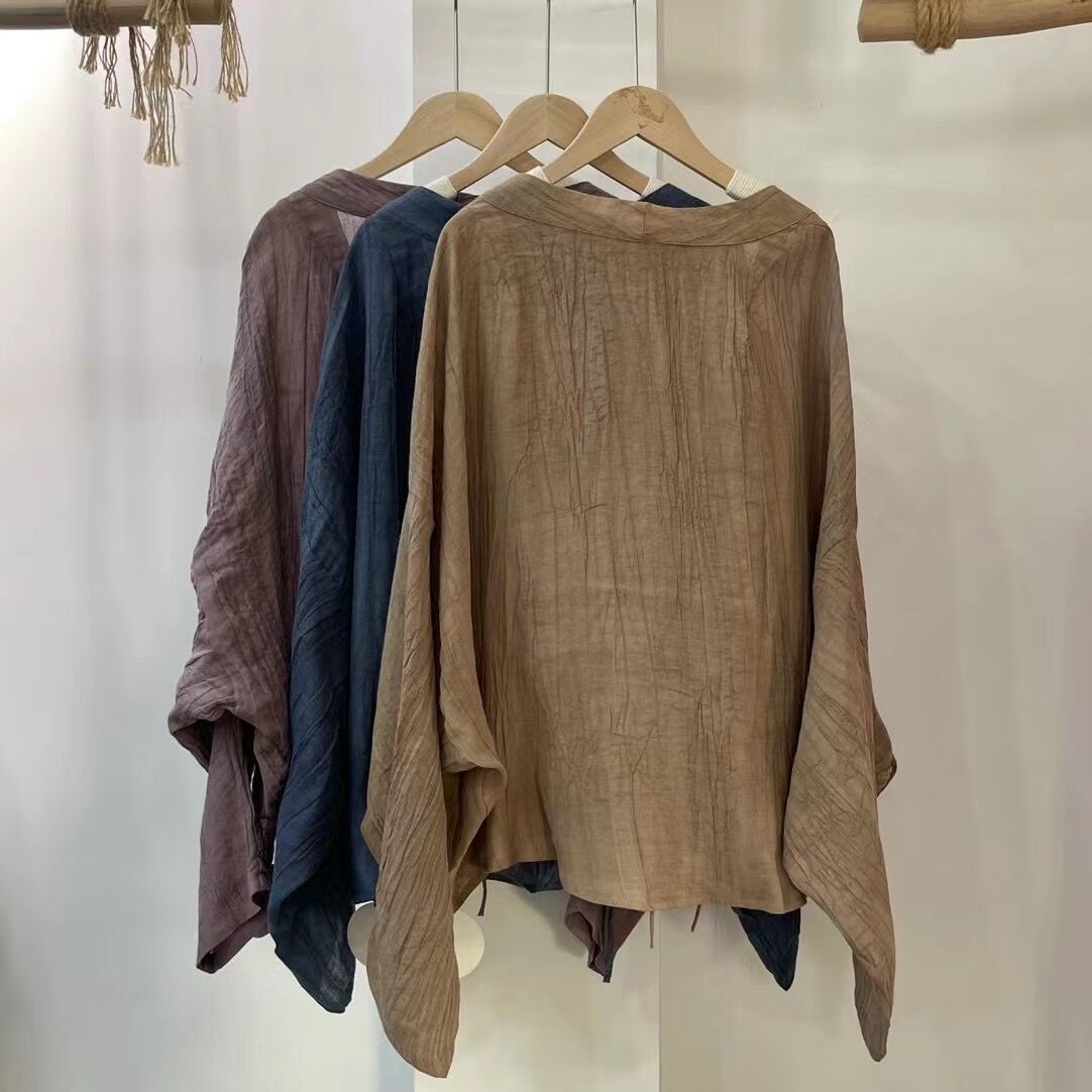 텐셀 모시 셔츠 2026 여름 신상품 타이다이 레이스업 자외선 차단 가디건 솔리드 컬러 여성용 상의 24036