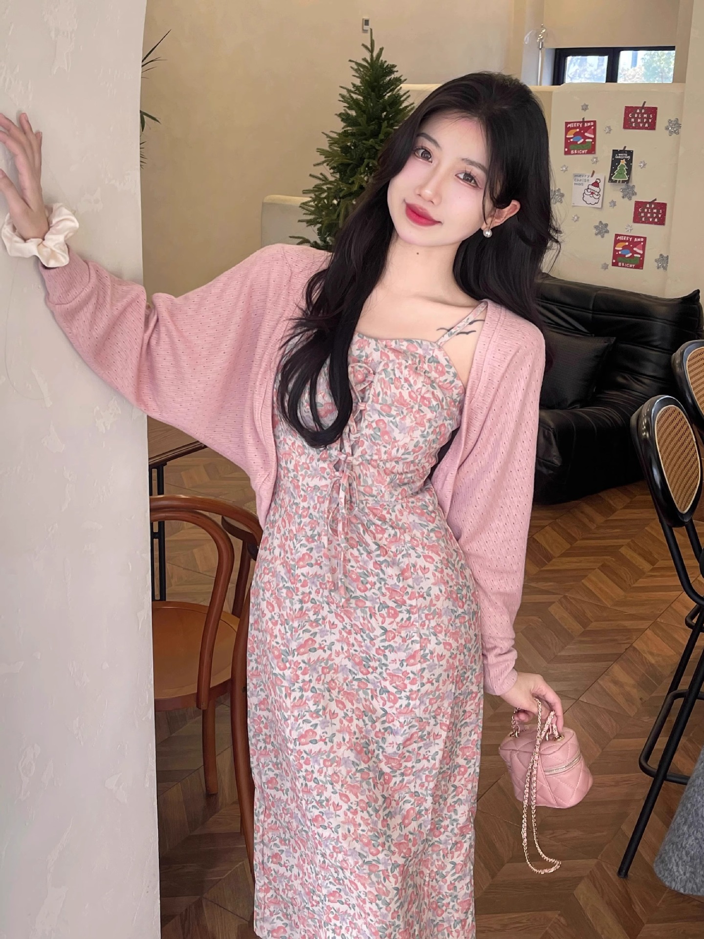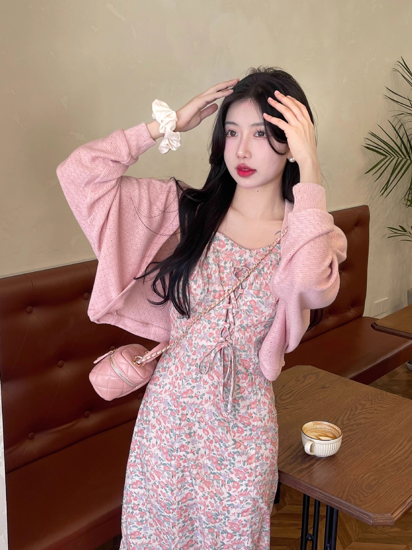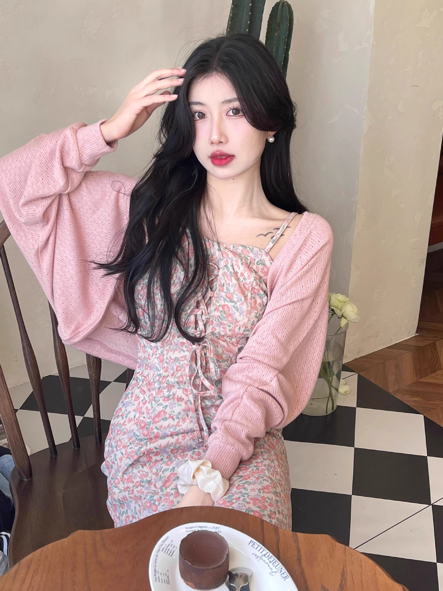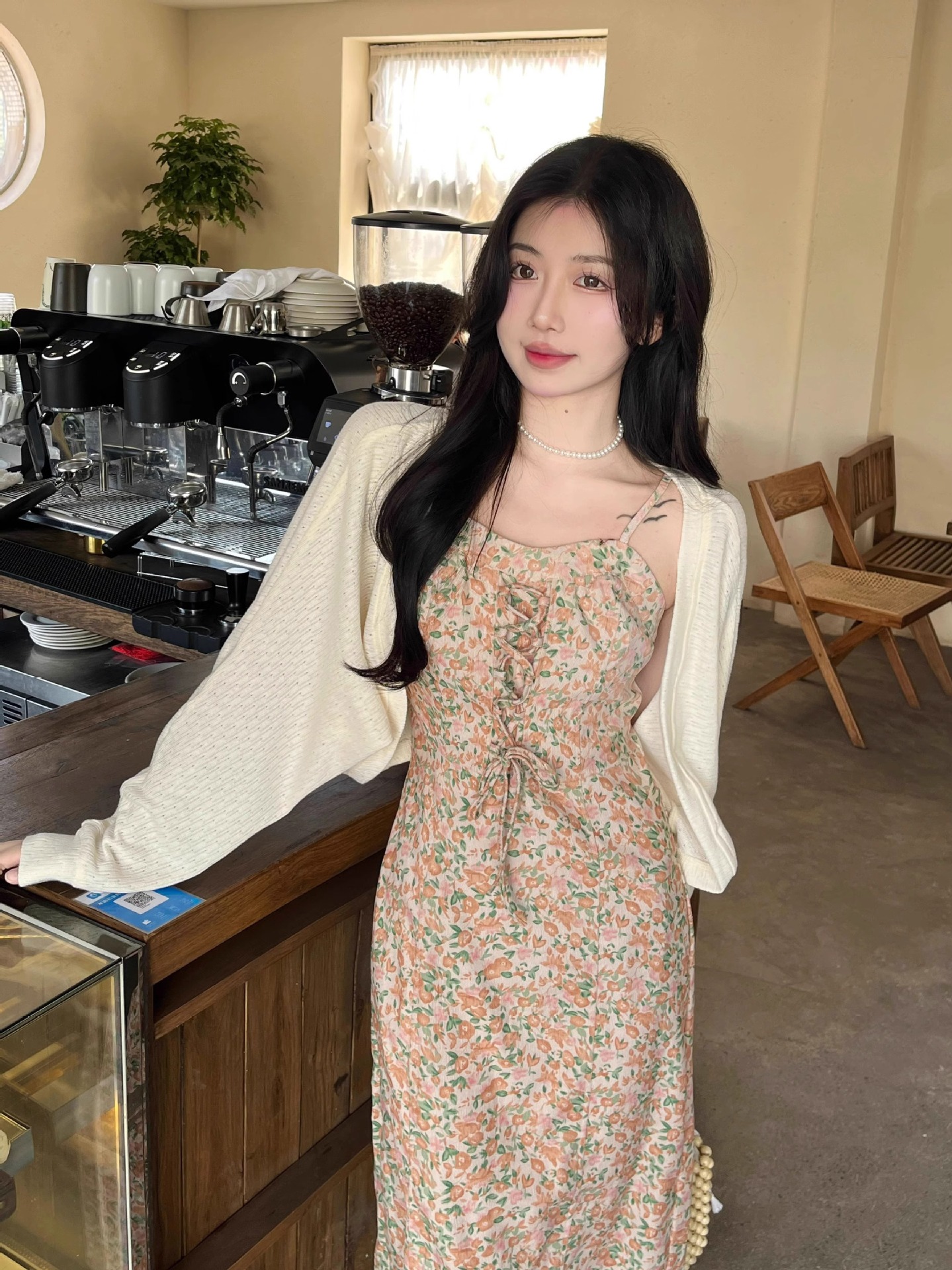 프랑스 우유 살구색 니트 카디건 코트 여성의 봄과 가을 서스펜더 스커트 외부 목도리 배트 윙 슬리브 아이스 실크 태양 보호 셔츠 여름스토어 가기
