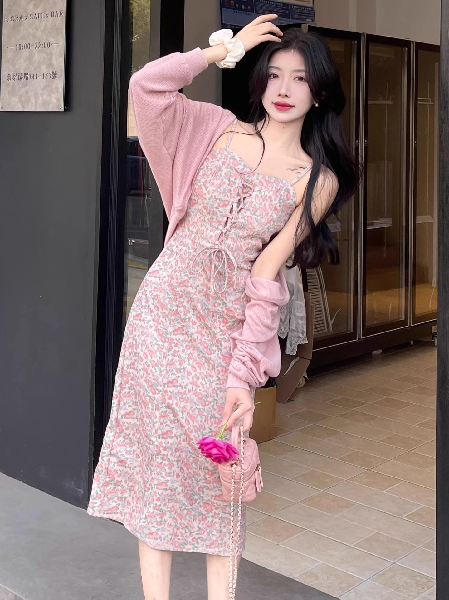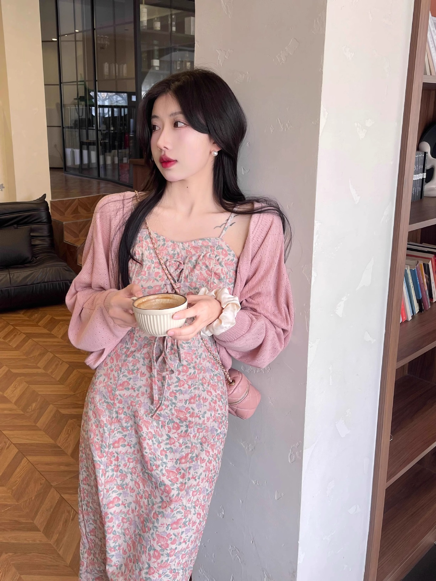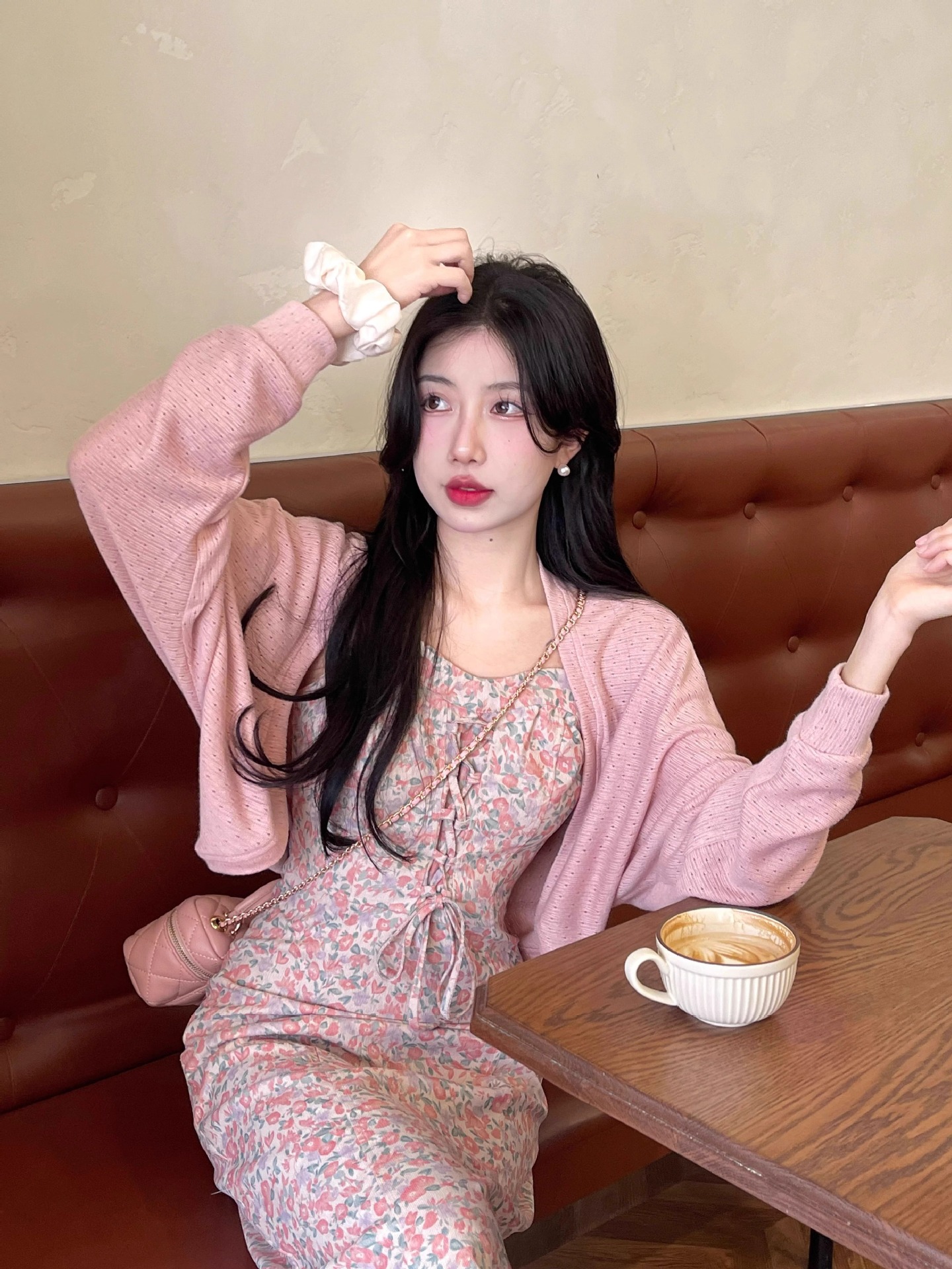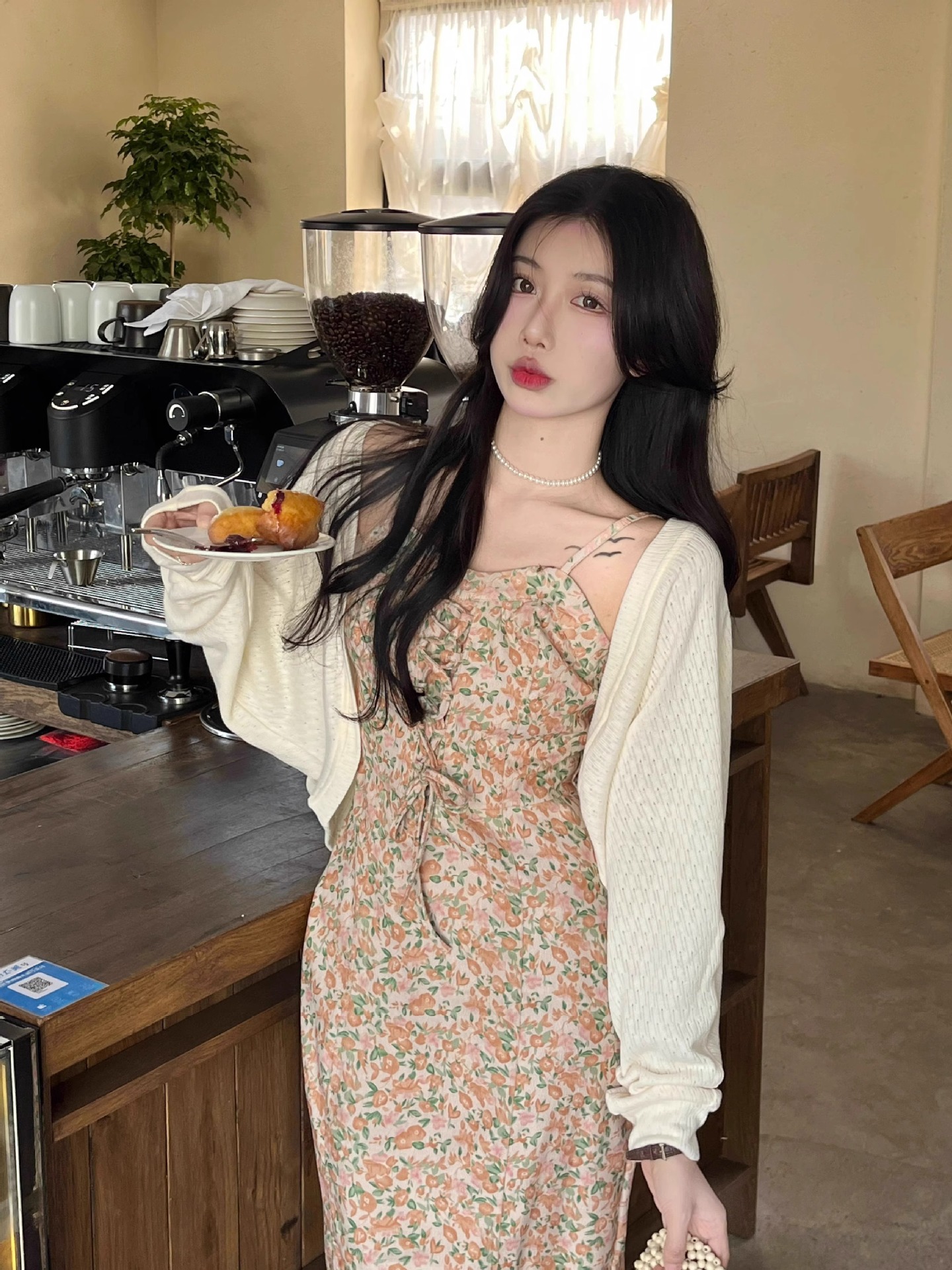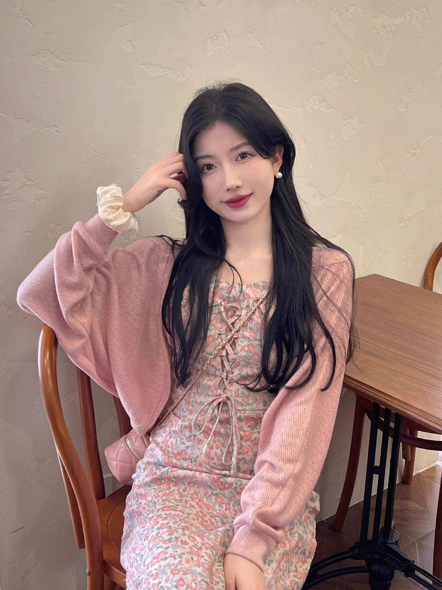 프랑스 우유 살구색 니트 카디건 코트 여성의 봄과 가을 서스펜더 스커트 외부 목도리 배트 윙 슬리브 아이스 실크 태양 보호 셔츠 여름스토어 가기
