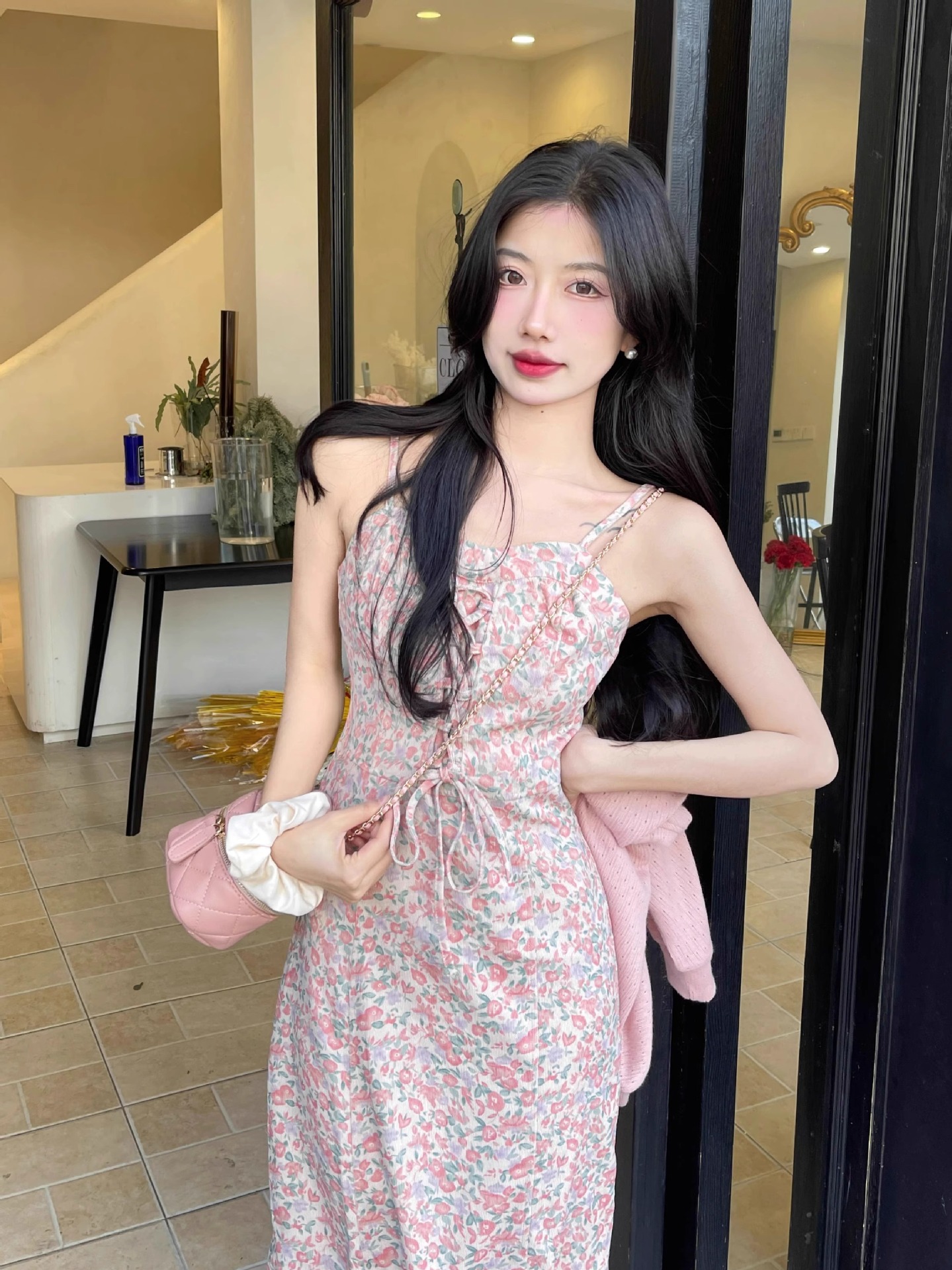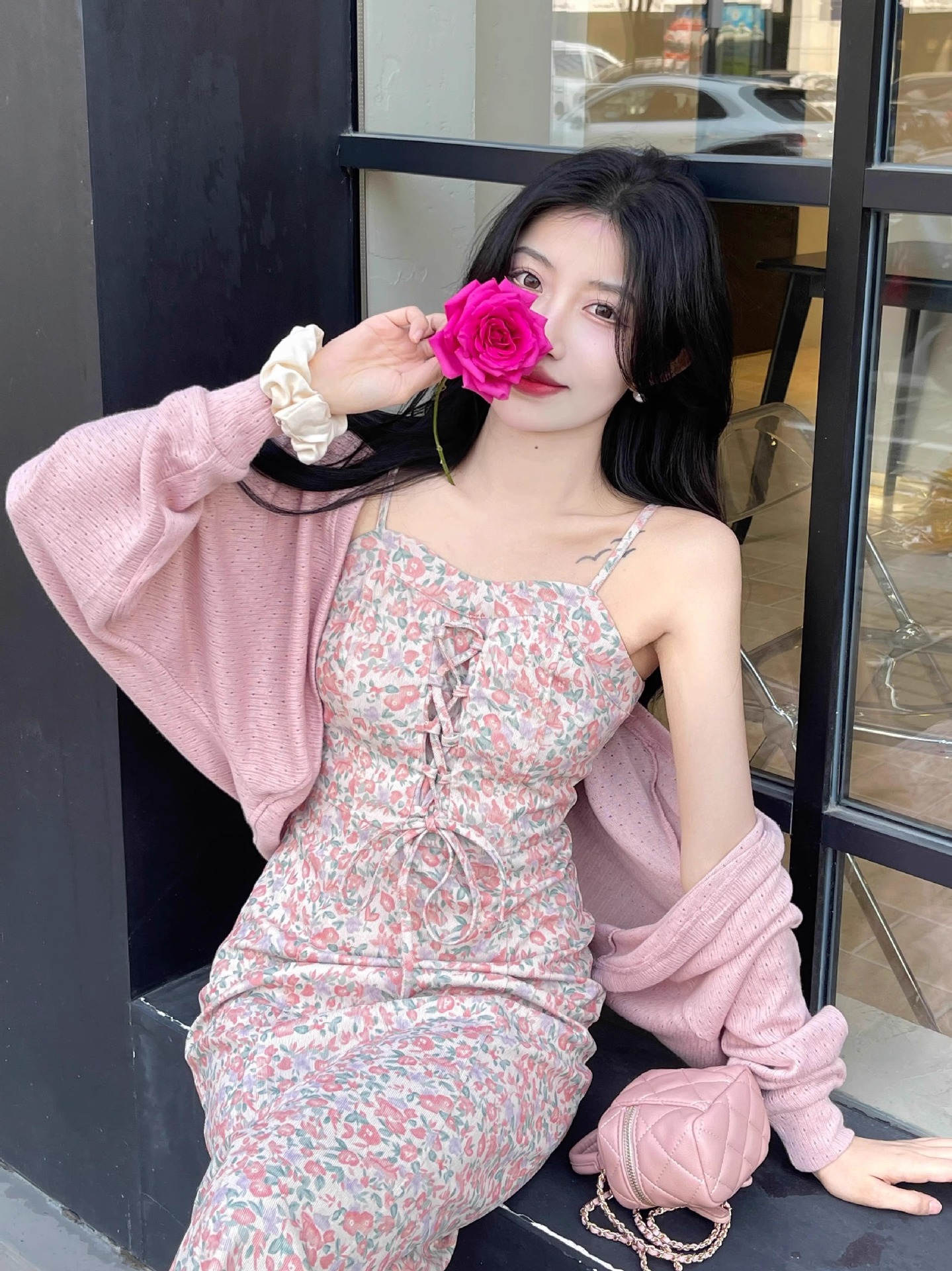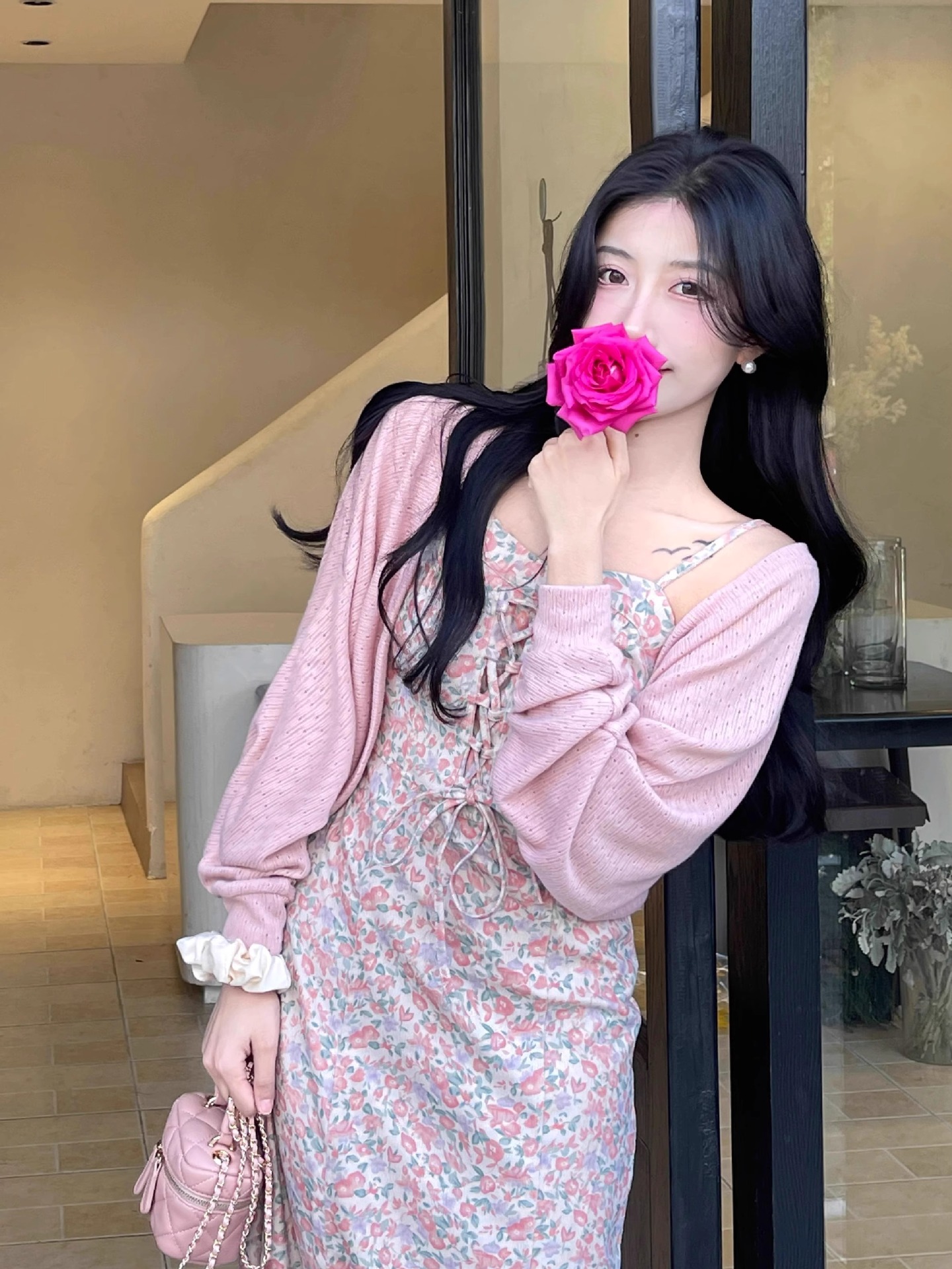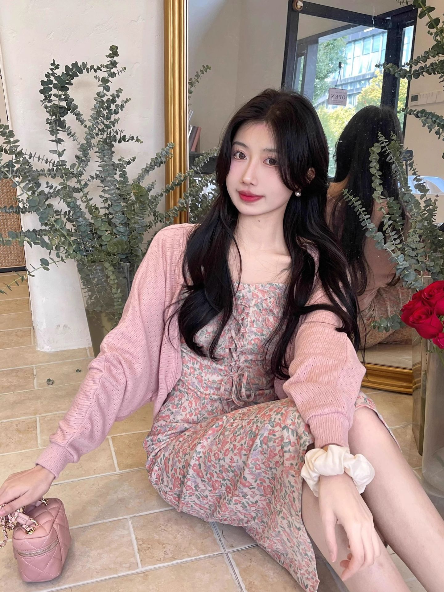 프랑스 우유 살구색 니트 카디건 코트 여성의 봄과 가을 서스펜더 스커트 외부 목도리 배트 윙 슬리브 아이스 실크 태양 보호 셔츠 여름스토어 가기