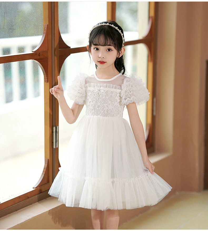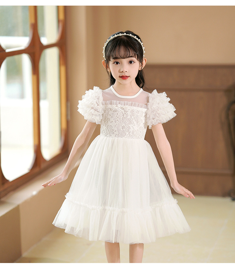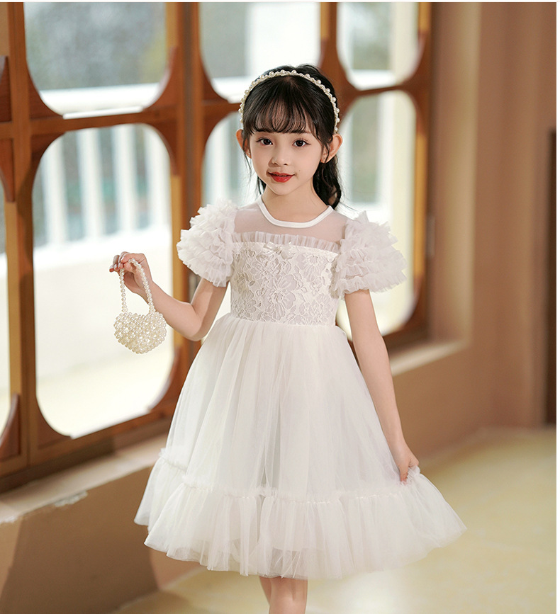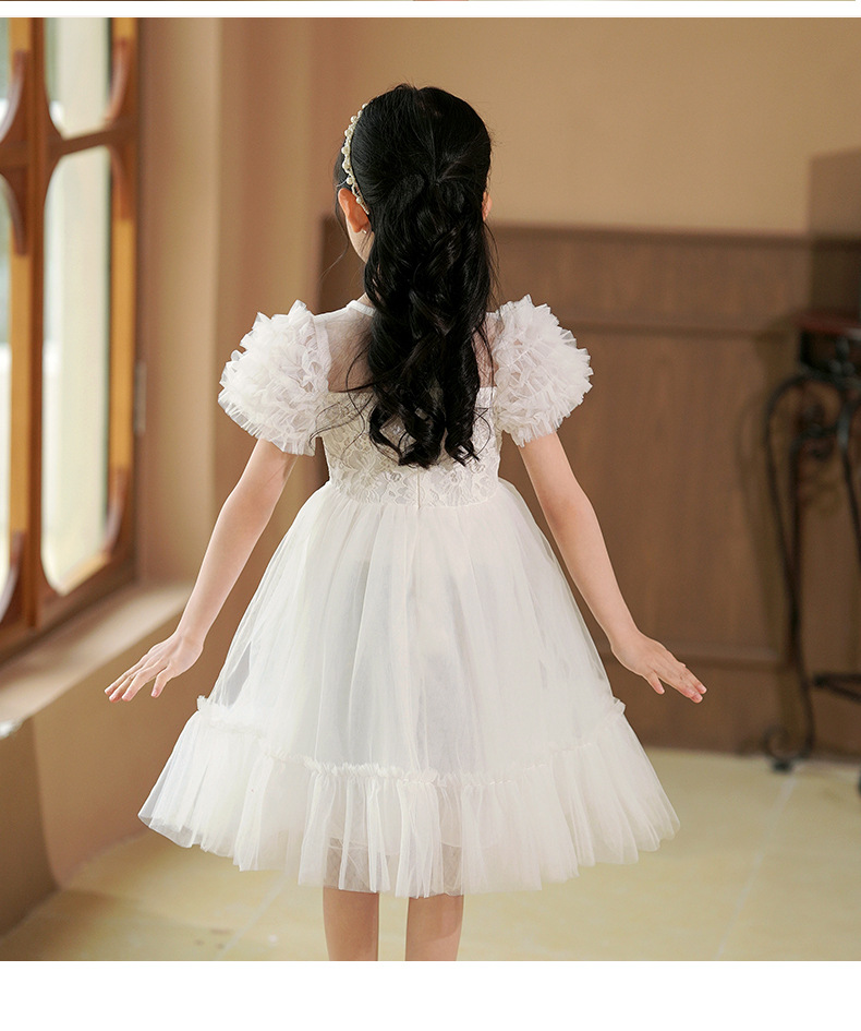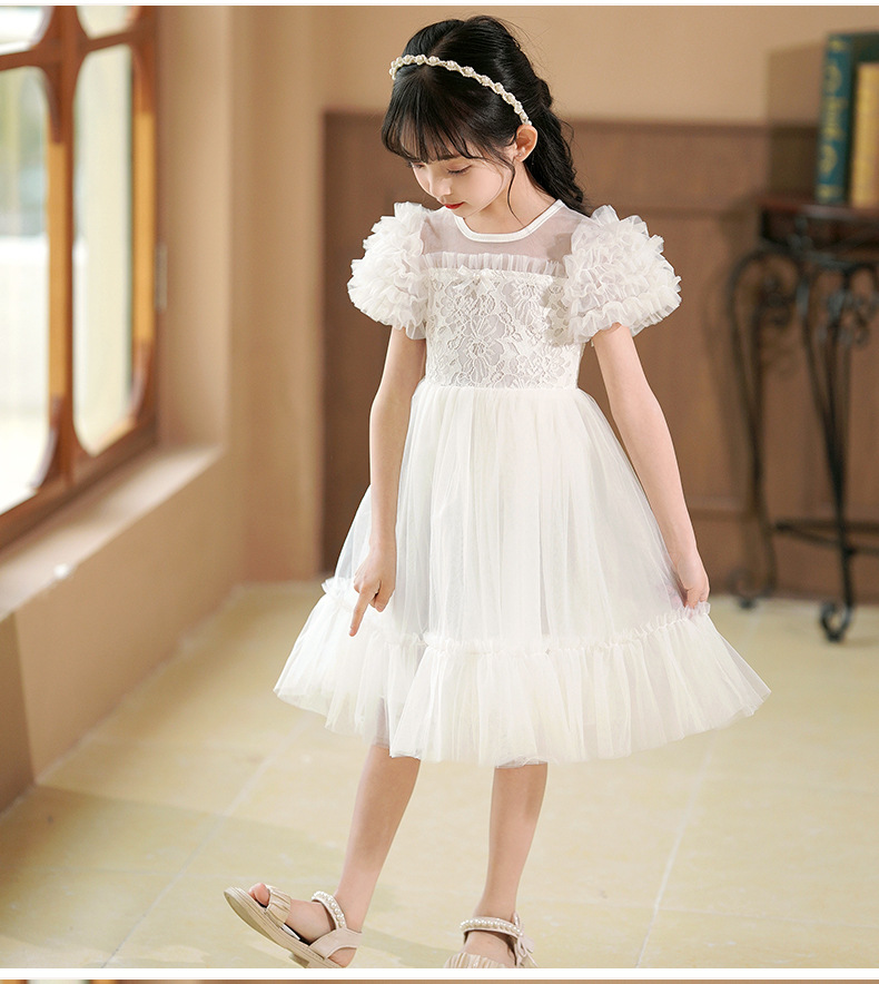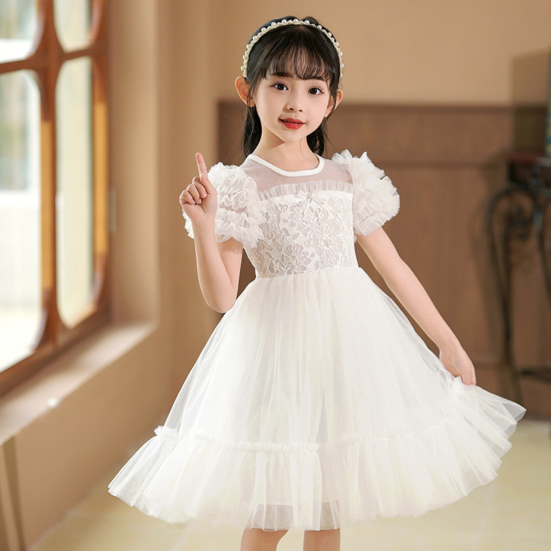 여름 소녀 드레스 2025 서양식 어린이 레이스 공주 드레스 퍼프 슬리브 패션 의식 푹신한 댄스 드레스스토어 가기