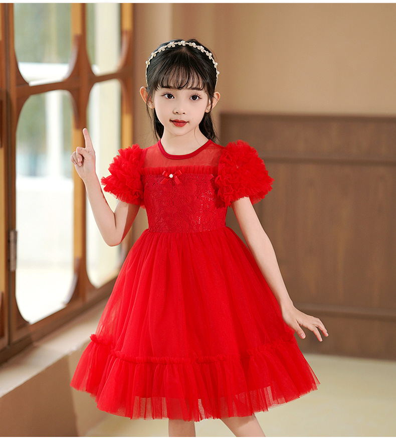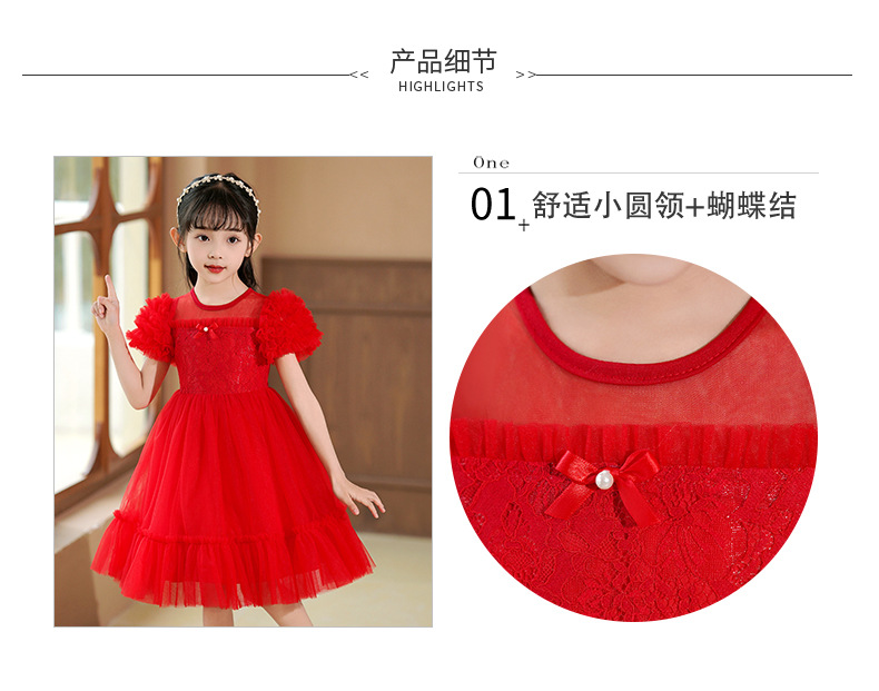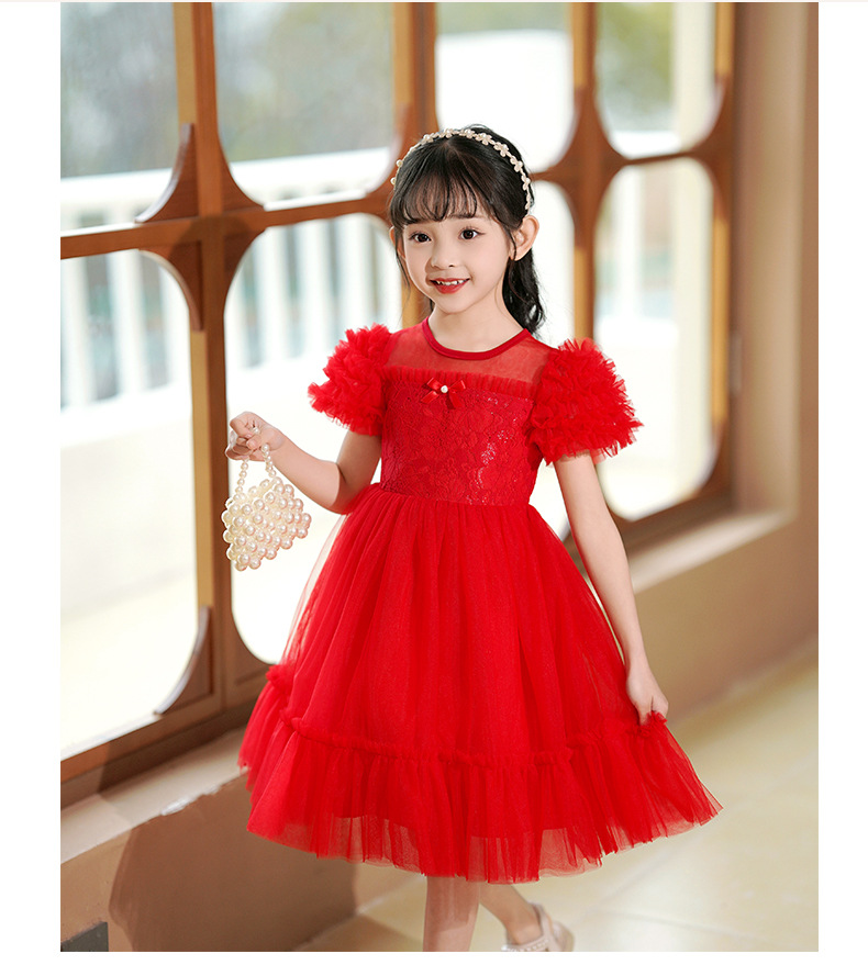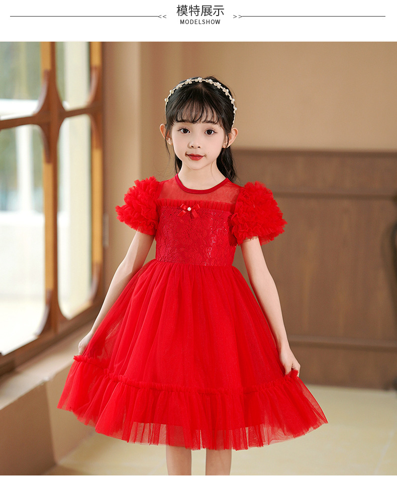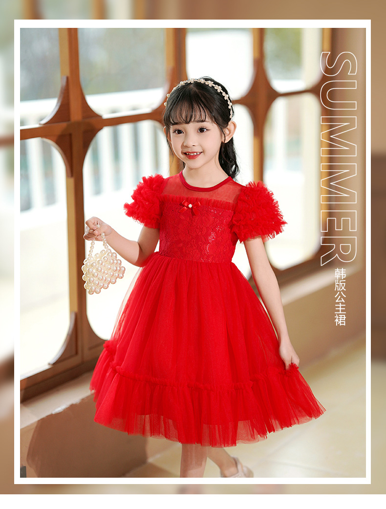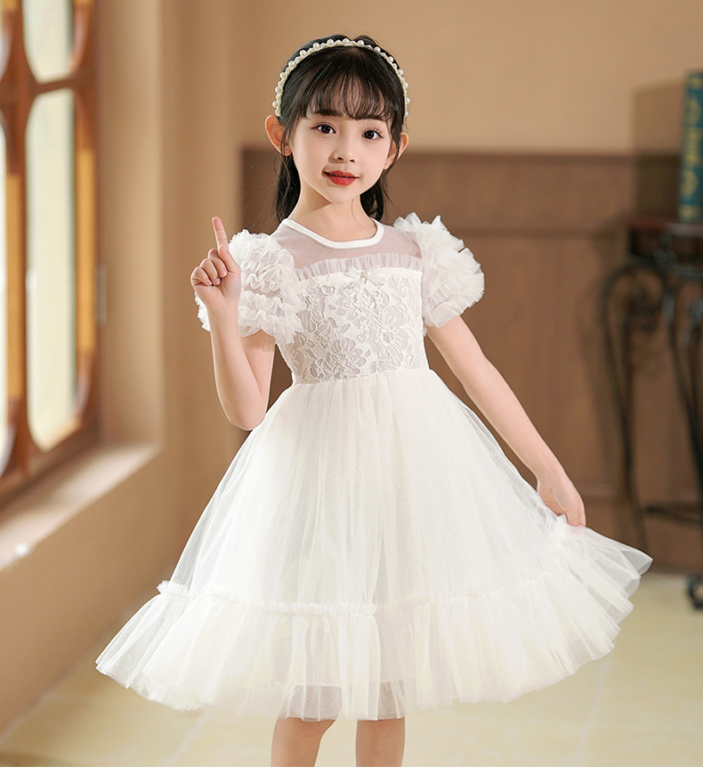 여름 소녀 드레스 2025 서양식 어린이 레이스 공주 드레스 퍼프 슬리브 패션 의식 푹신한 댄스 드레스스토어 가기