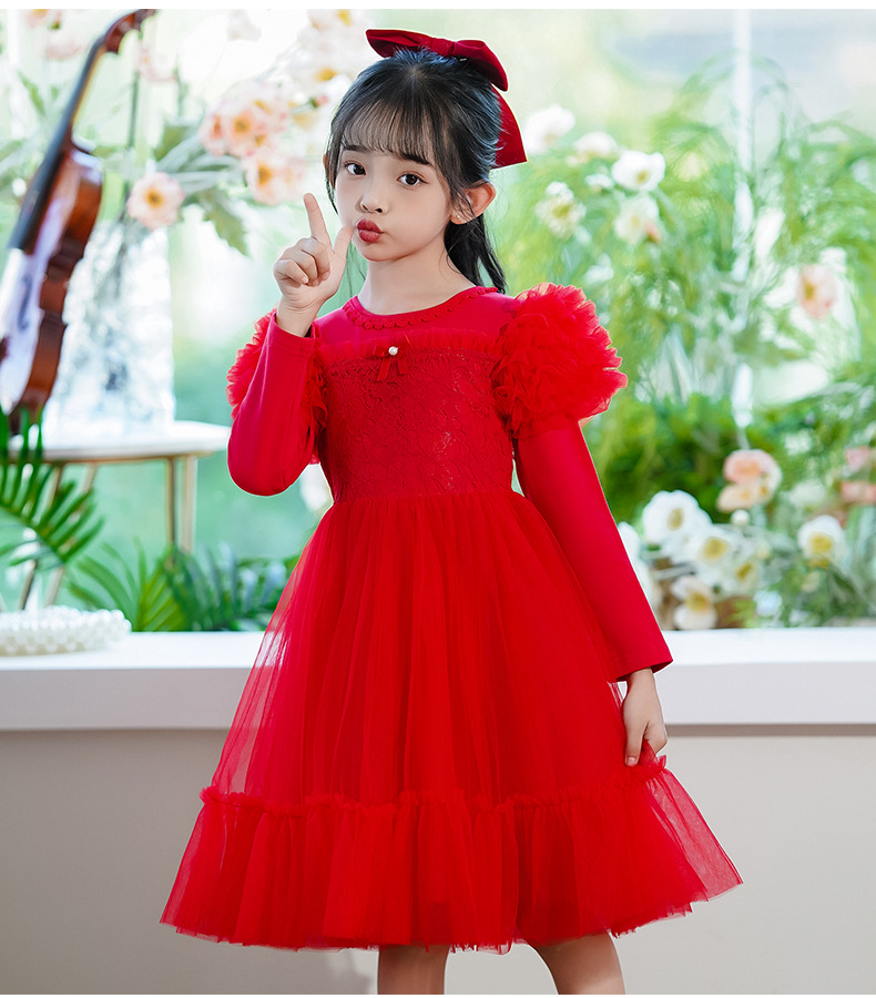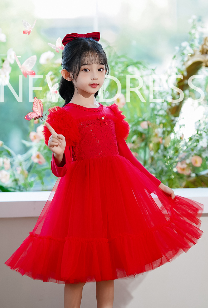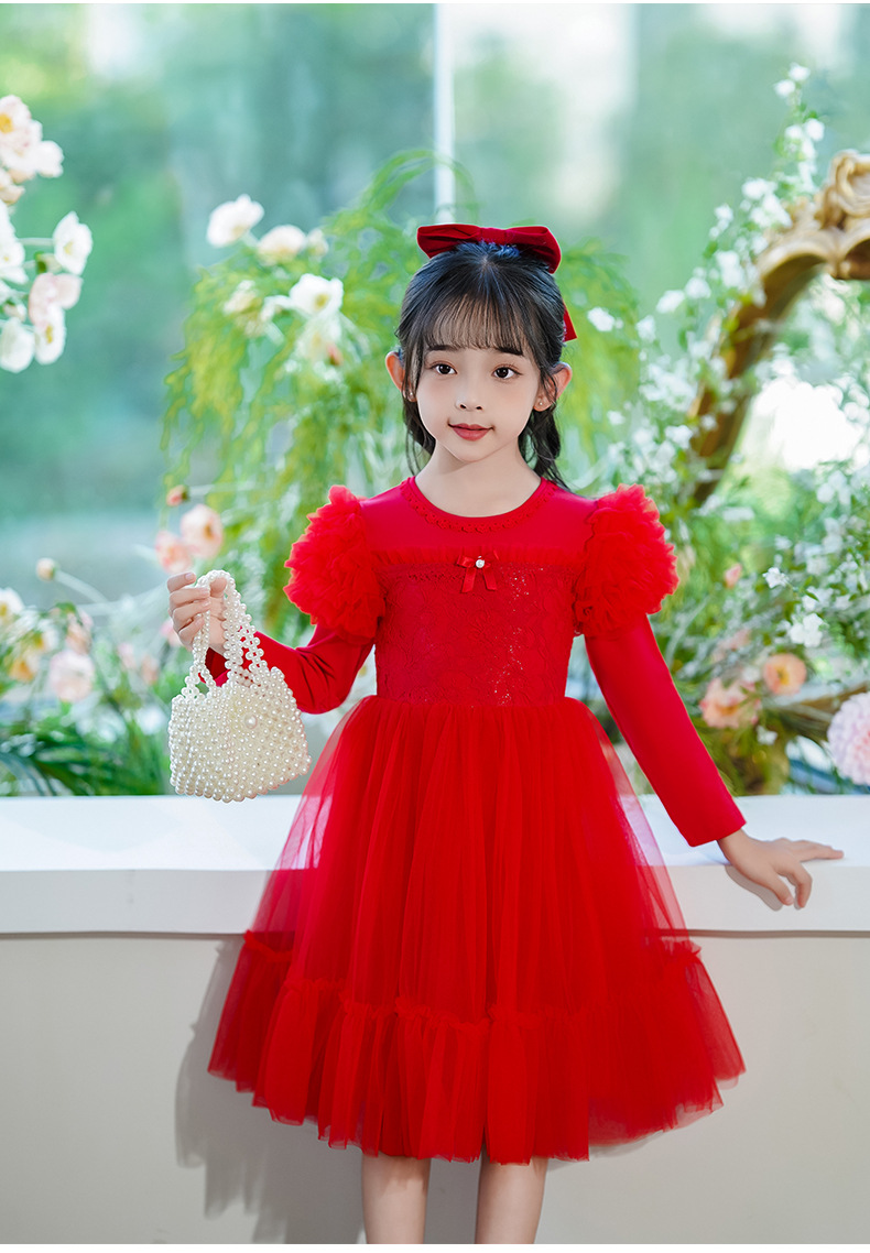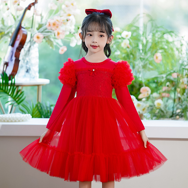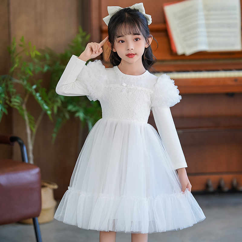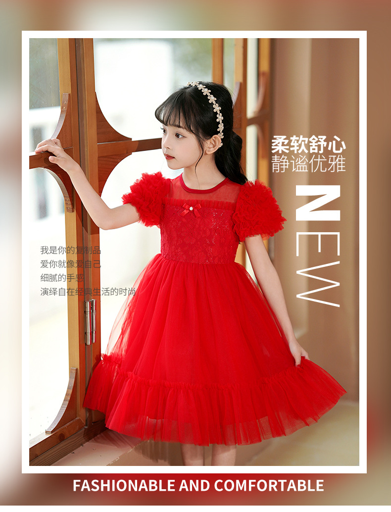 여름 소녀 드레스 2025 서양식 어린이 레이스 공주 드레스 퍼프 슬리브 패션 의식 푹신한 댄스 드레스스토어 가기