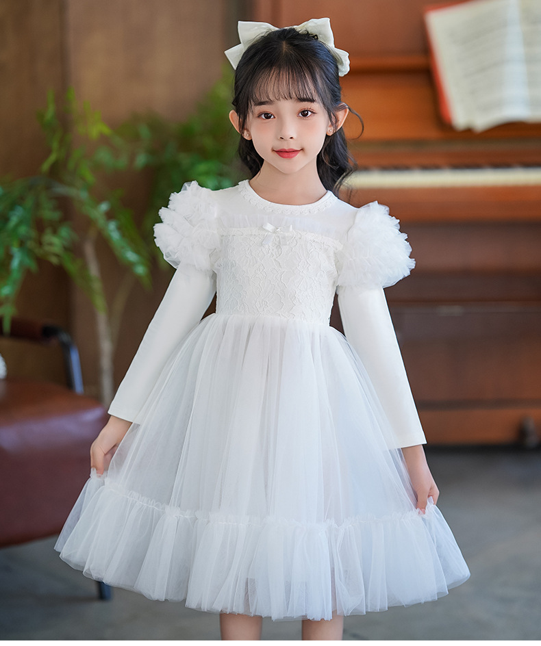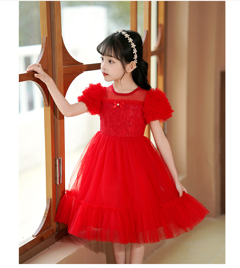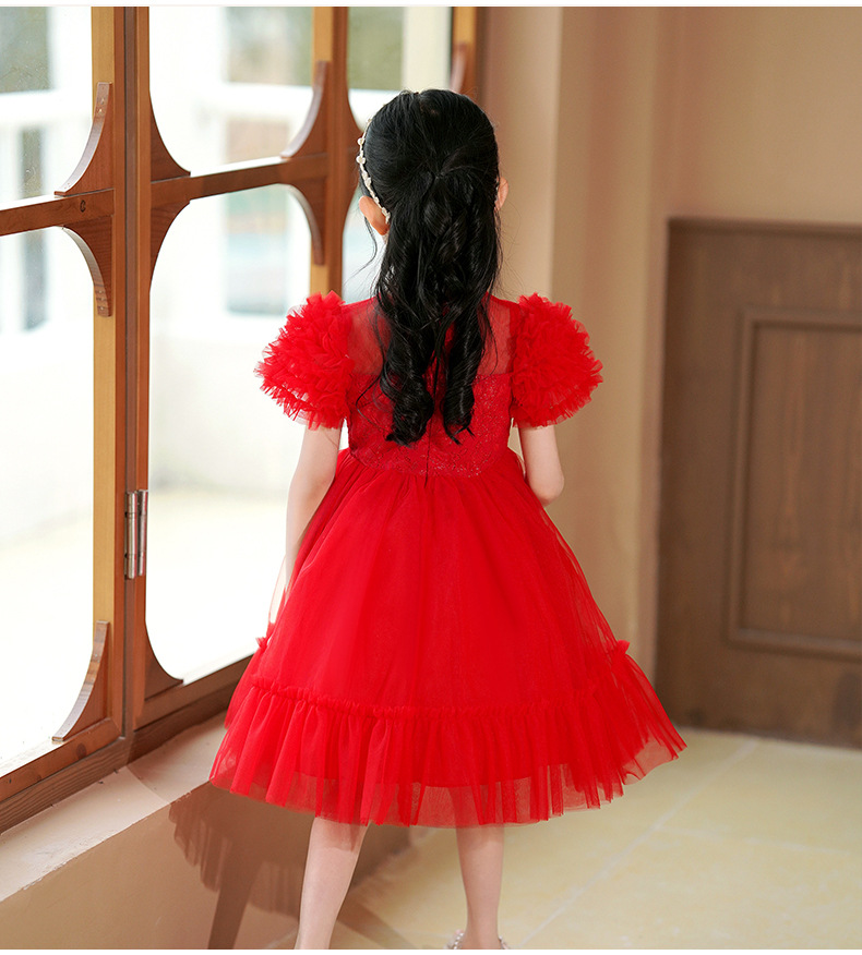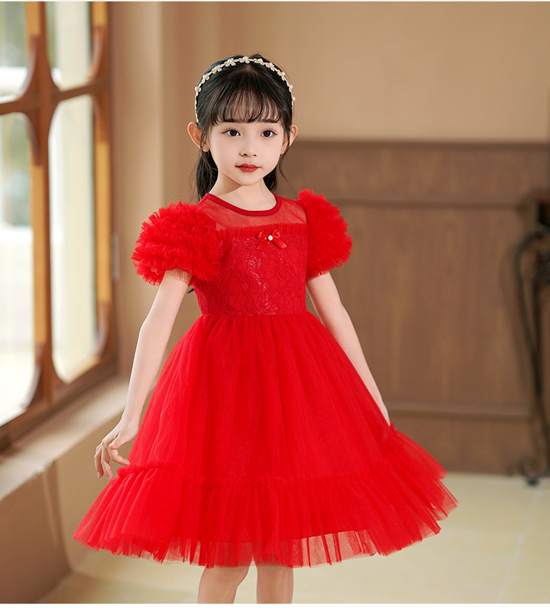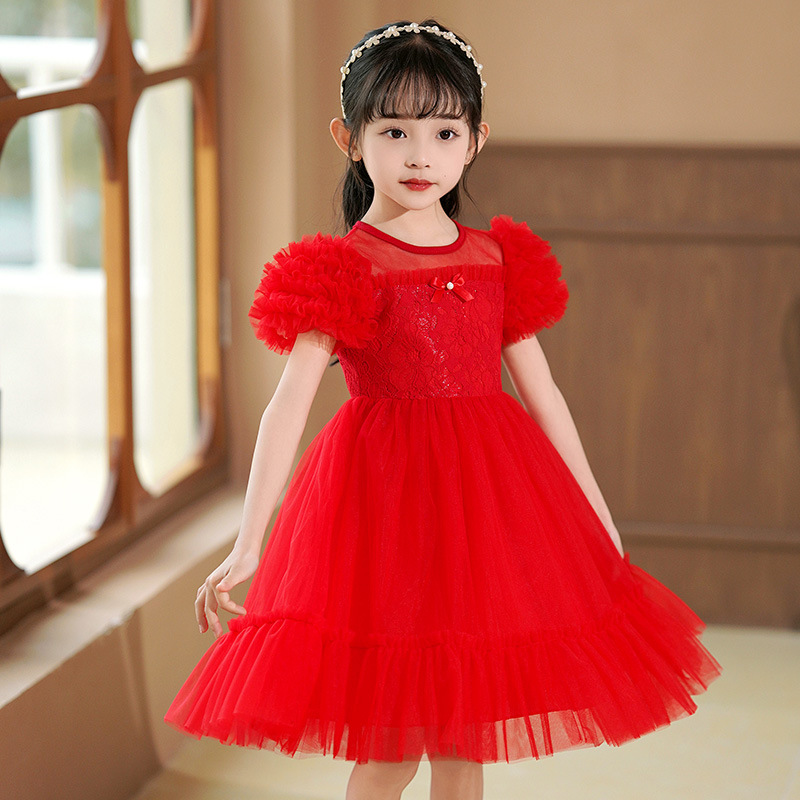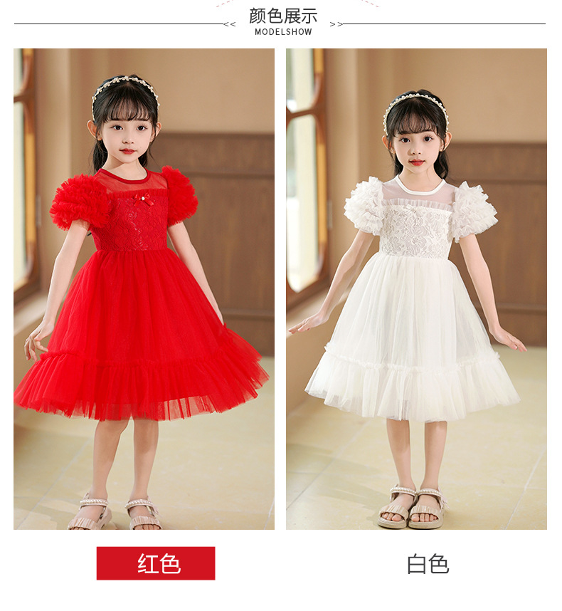 여름 소녀 드레스 2025 서양식 어린이 레이스 공주 드레스 퍼프 슬리브 패션 의식 푹신한 댄스 드레스