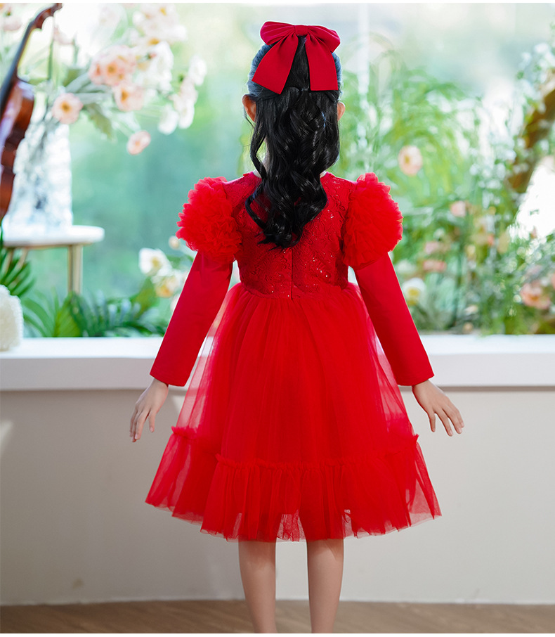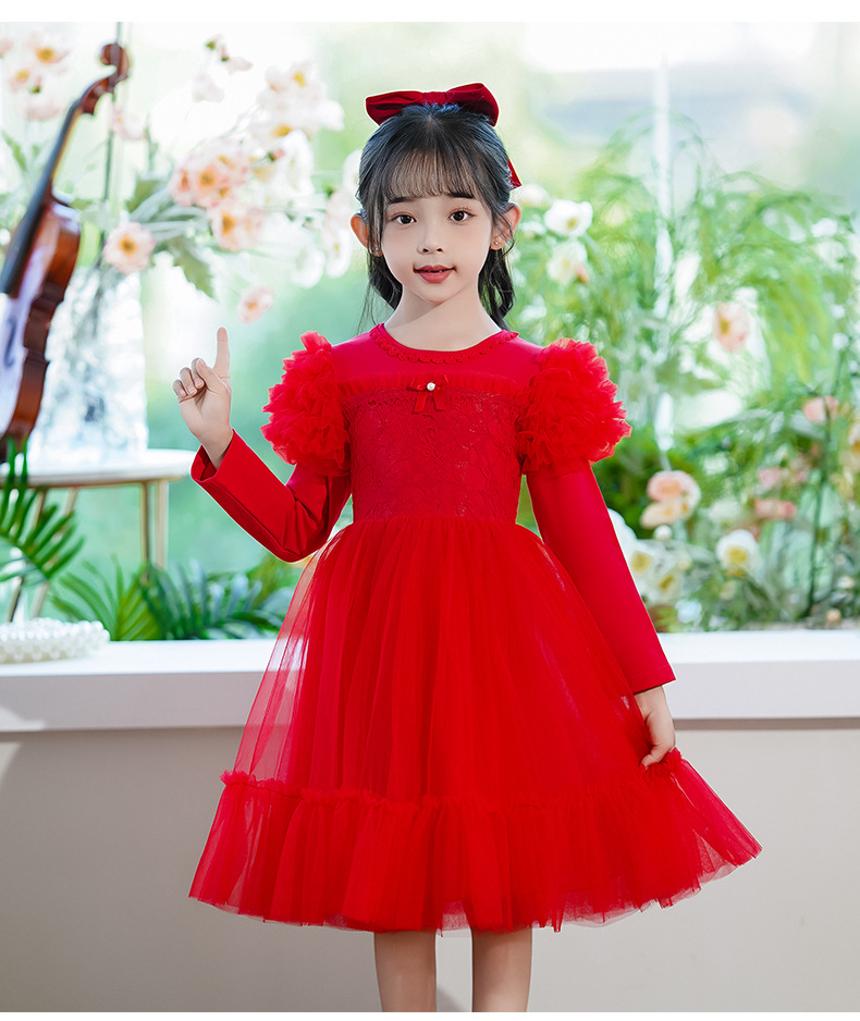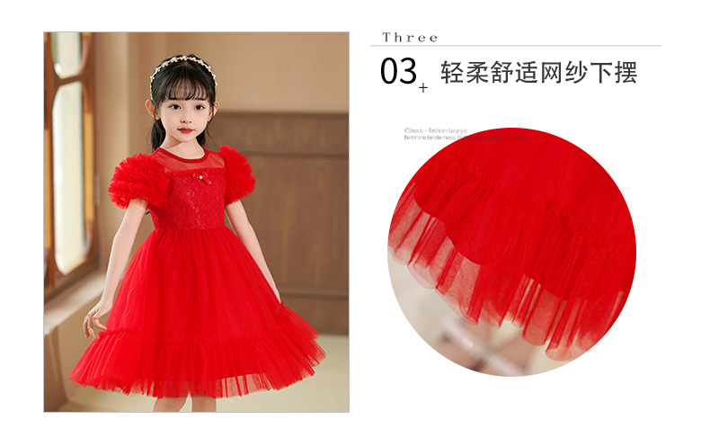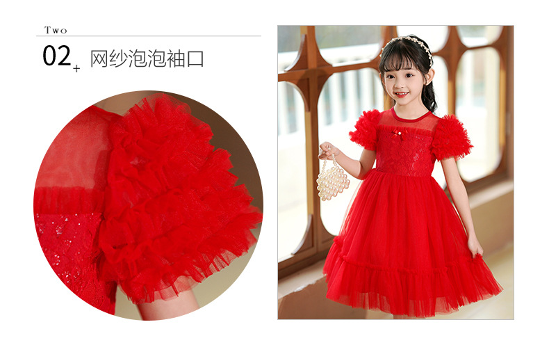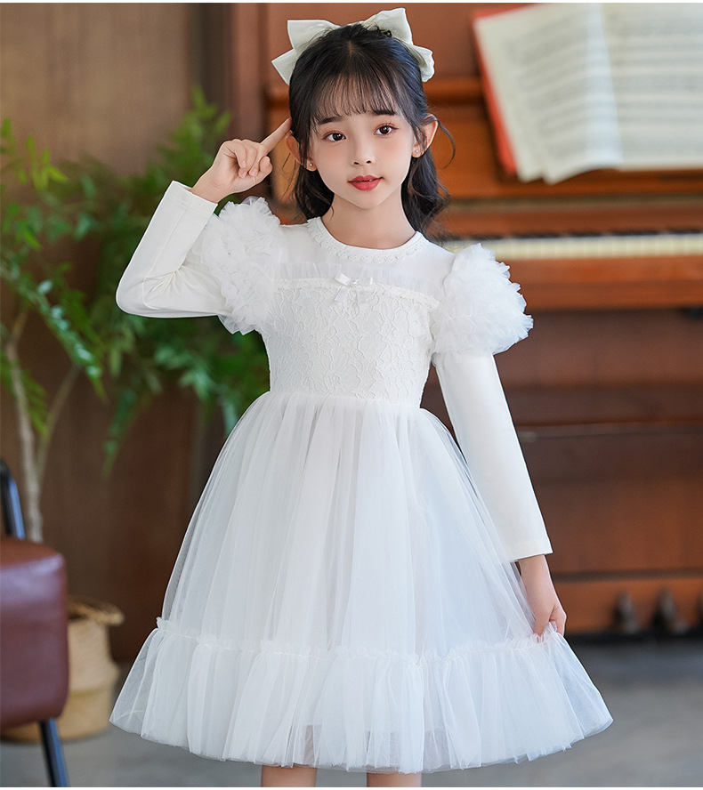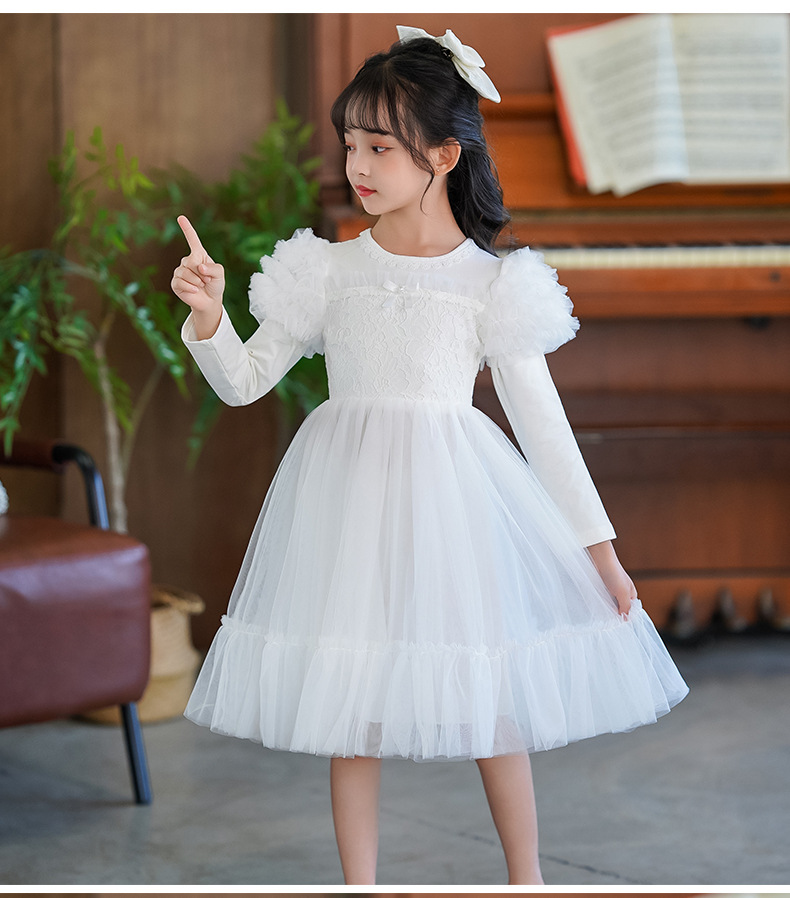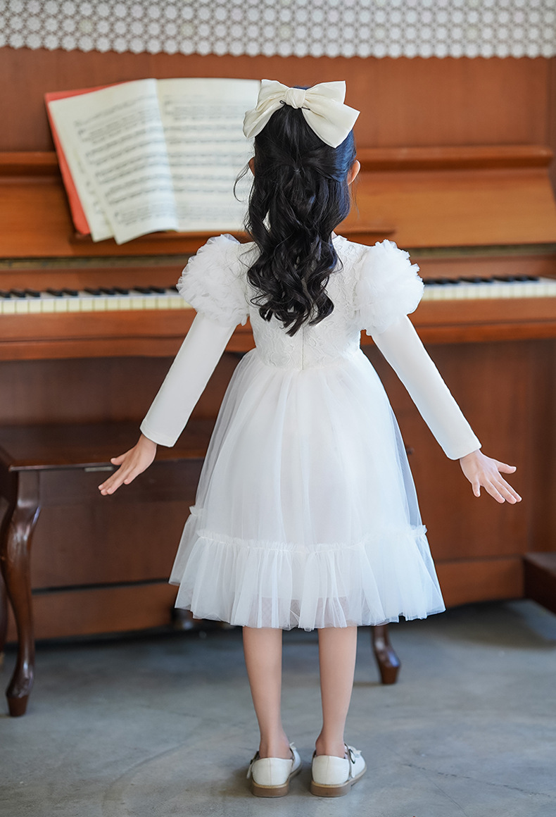 여름 소녀 드레스 2025 서양식 어린이 레이스 공주 드레스 퍼프 슬리브 패션 의식 푹신한 댄스 드레스