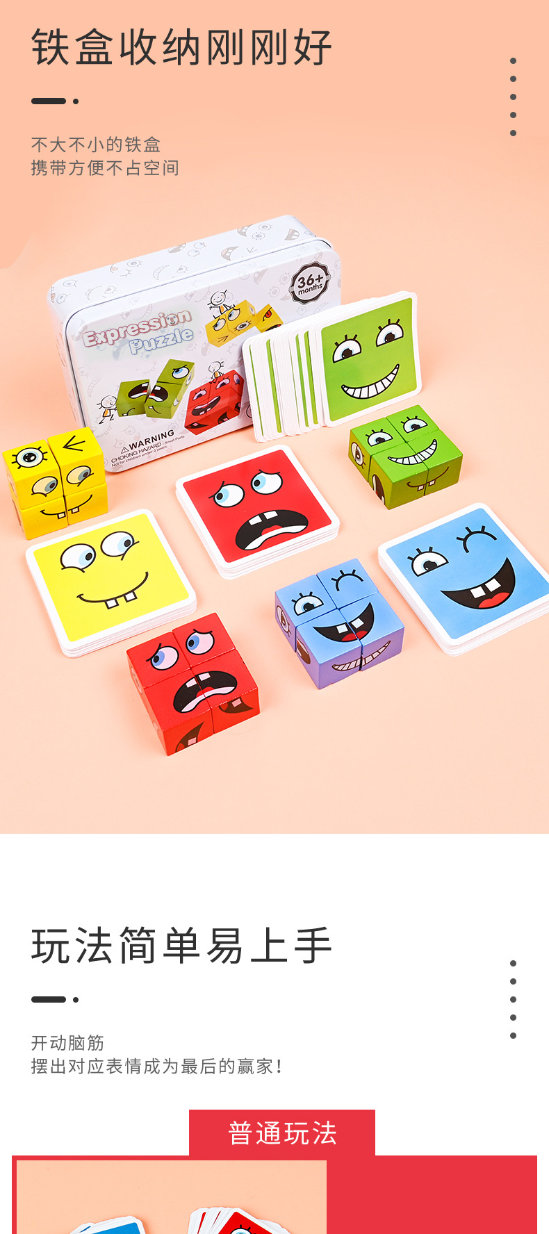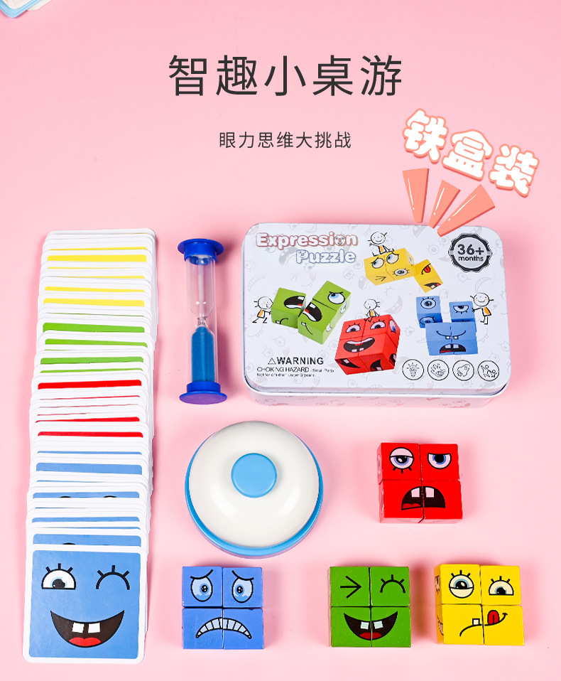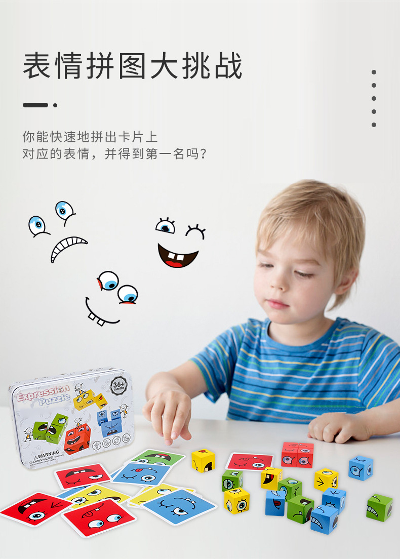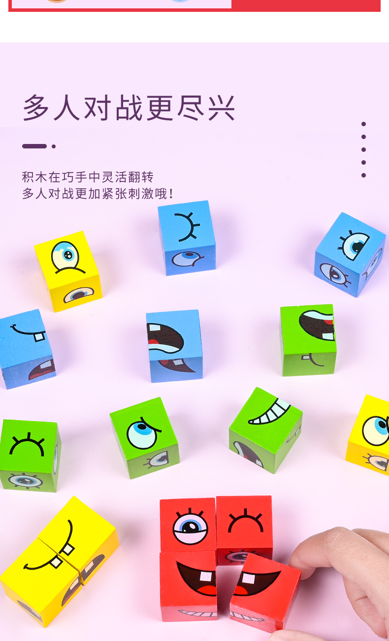 얼굴 표정이 변하는 큐브 블록 퍼즐 매칭 테이블 게임 나무로 만든 어린이 교육용 장난감스토어 가기