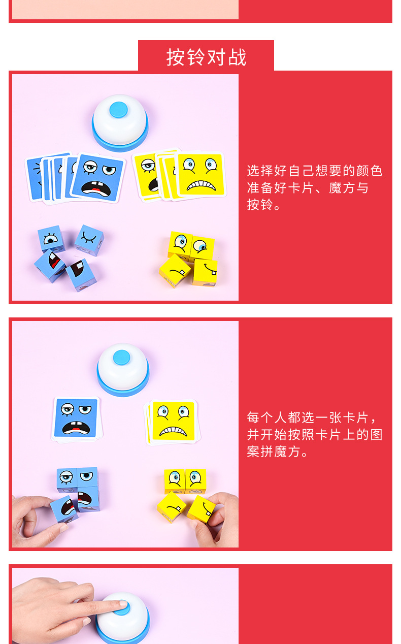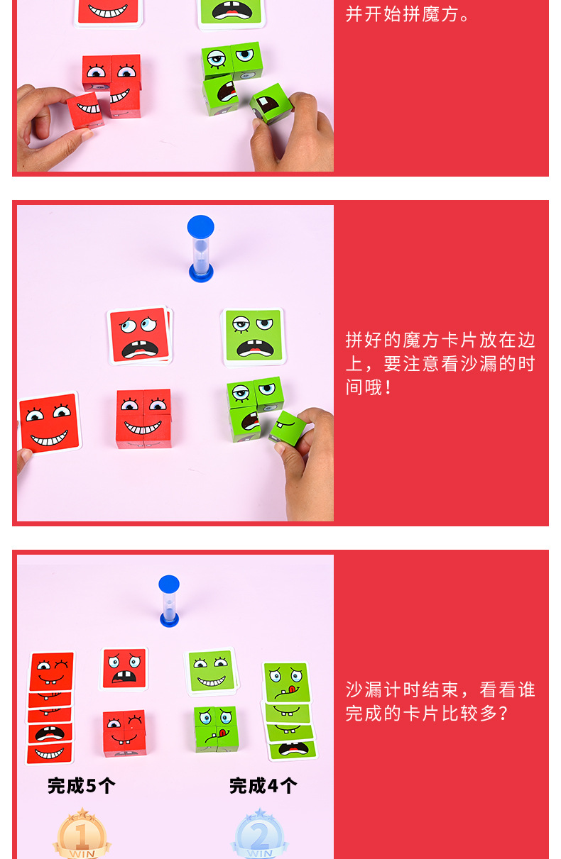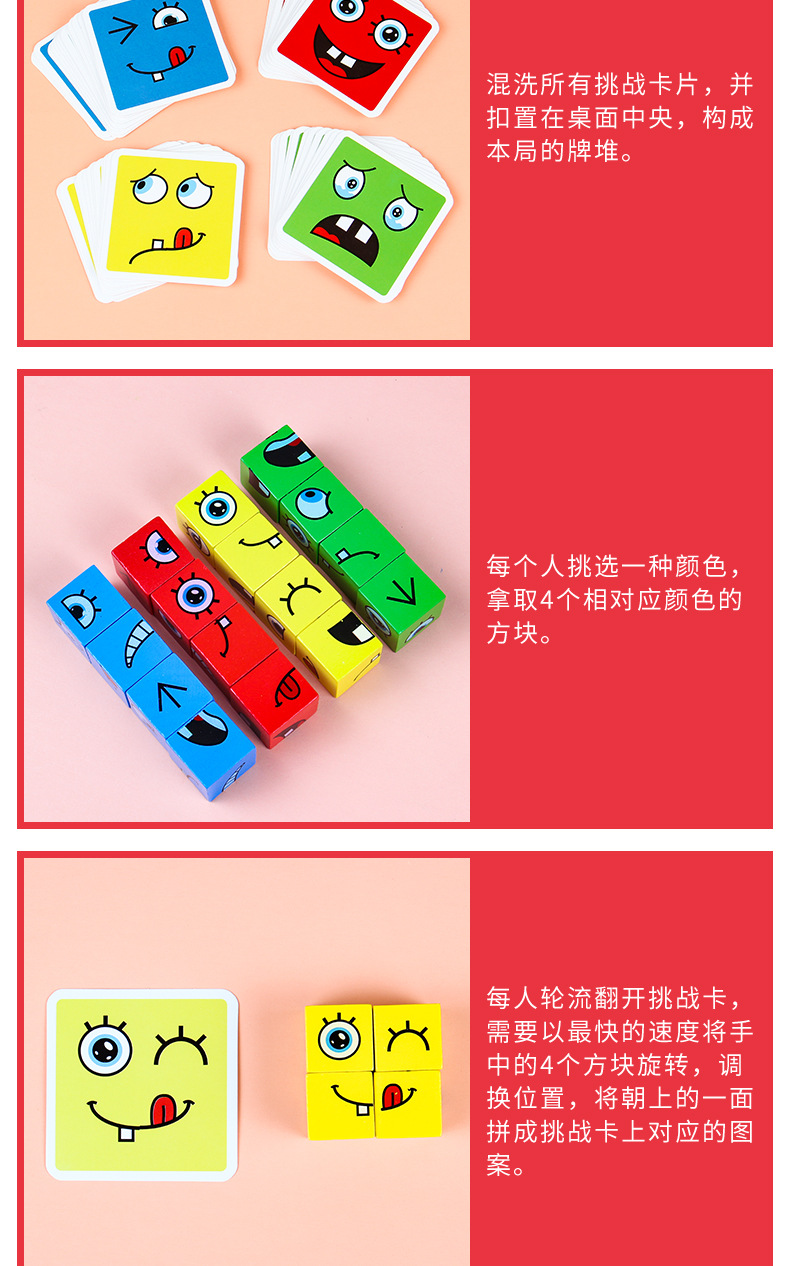 얼굴 표정이 변하는 큐브 블록 퍼즐 매칭 테이블 게임 나무로 만든 어린이 교육용 장난감스토어 가기