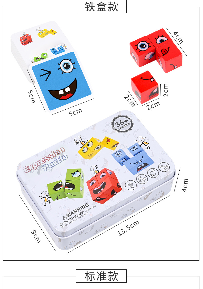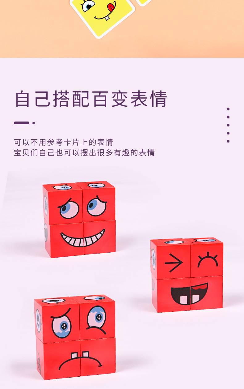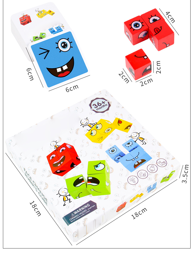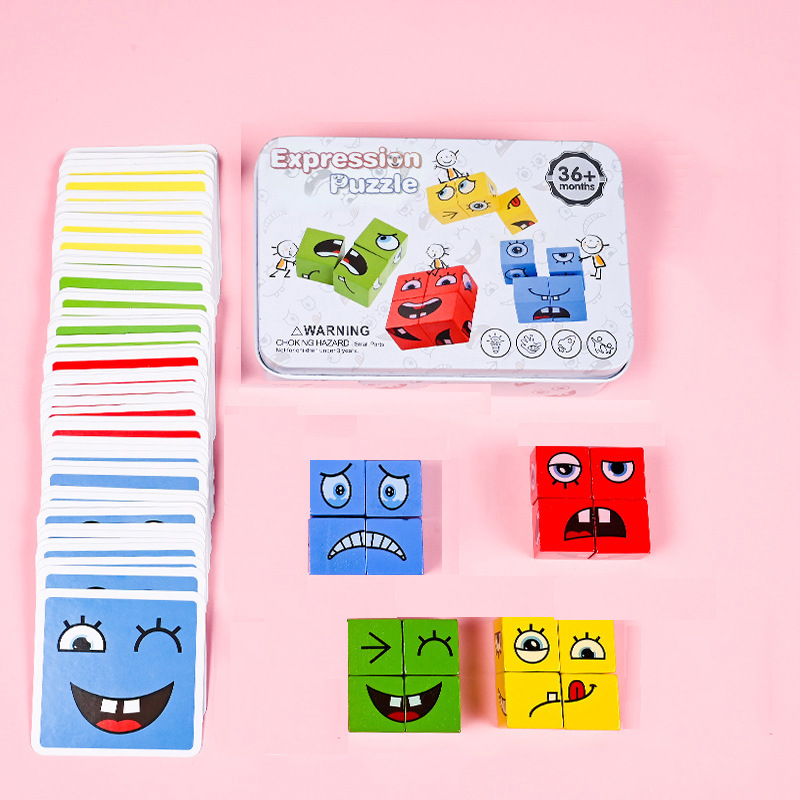 얼굴 표정이 변하는 큐브 블록 퍼즐 매칭 테이블 게임 나무로 만든 어린이 교육용 장난감