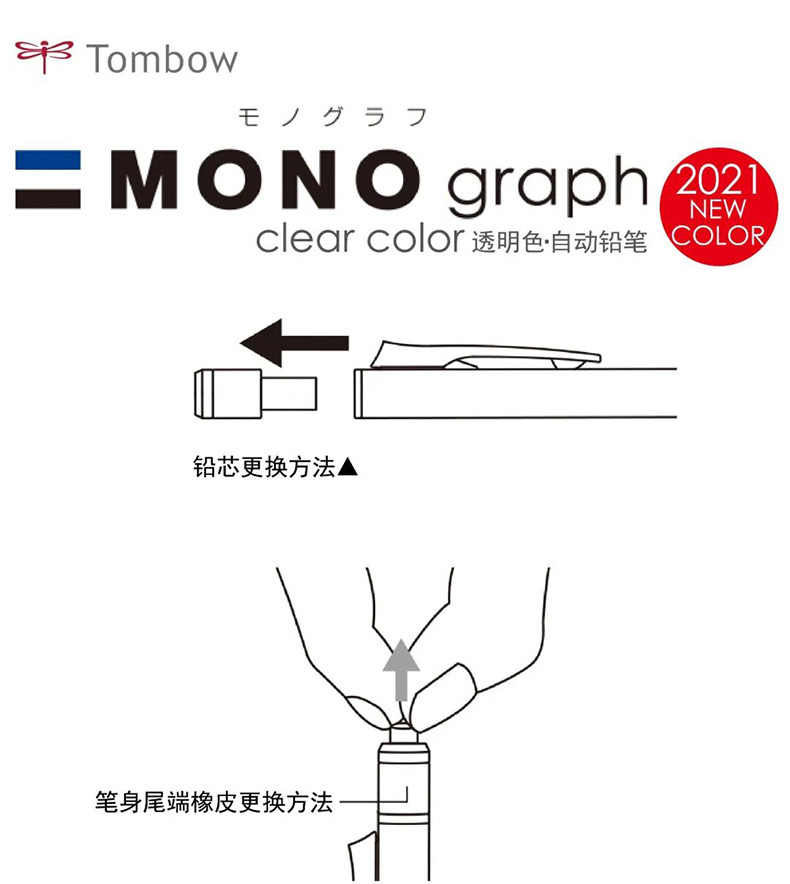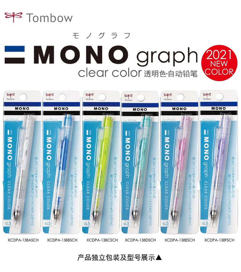 새로운 투명 일본 Tombow Dragonfly MONO 그래프 밝은 색 투명 자동 연필 0.5mm 활동스토어 가기