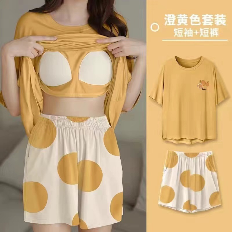 • 레몬 오렌지 더블 짧은 가슴 패드