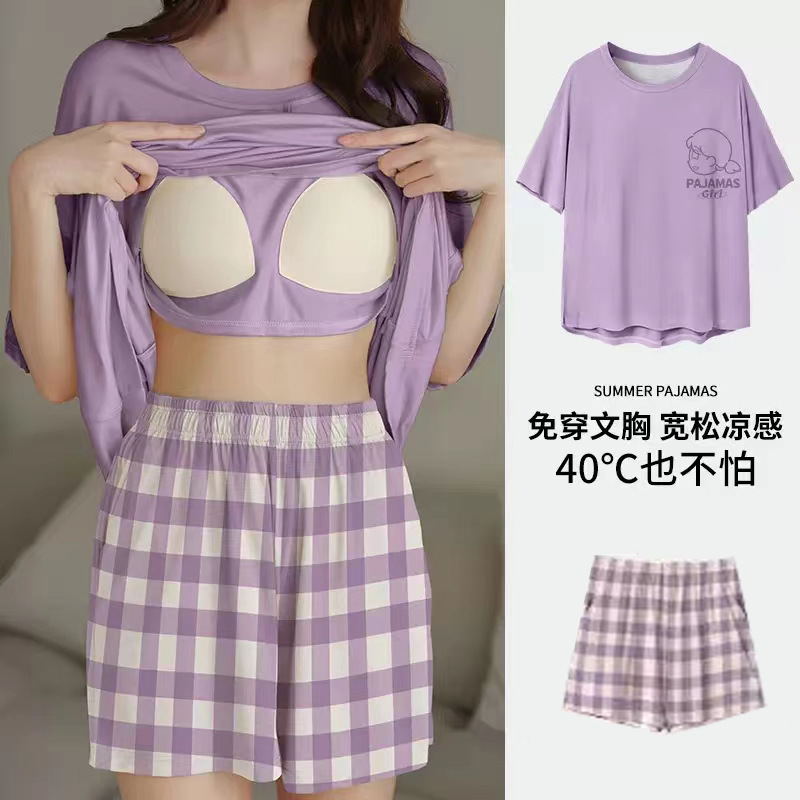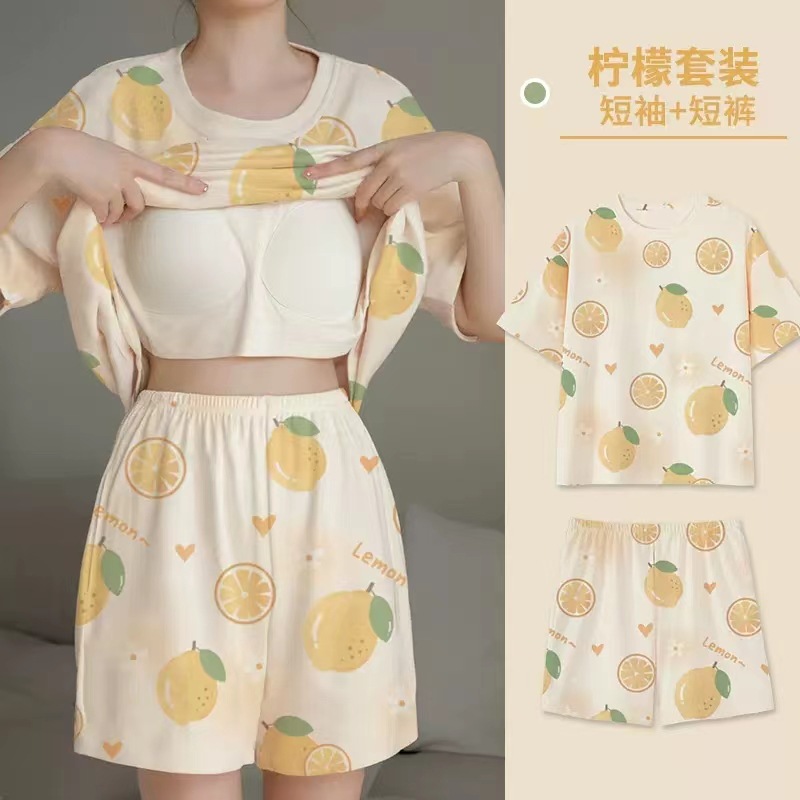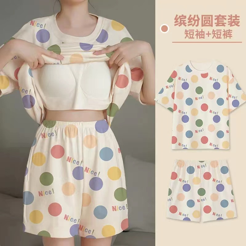 잠옷 여성의 여름 달콤한 반팔 얇은 만화 플러스 사이즈 느슨한 인 스타일 정장 홈 패드스토어 가기