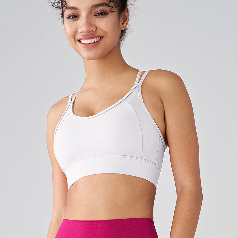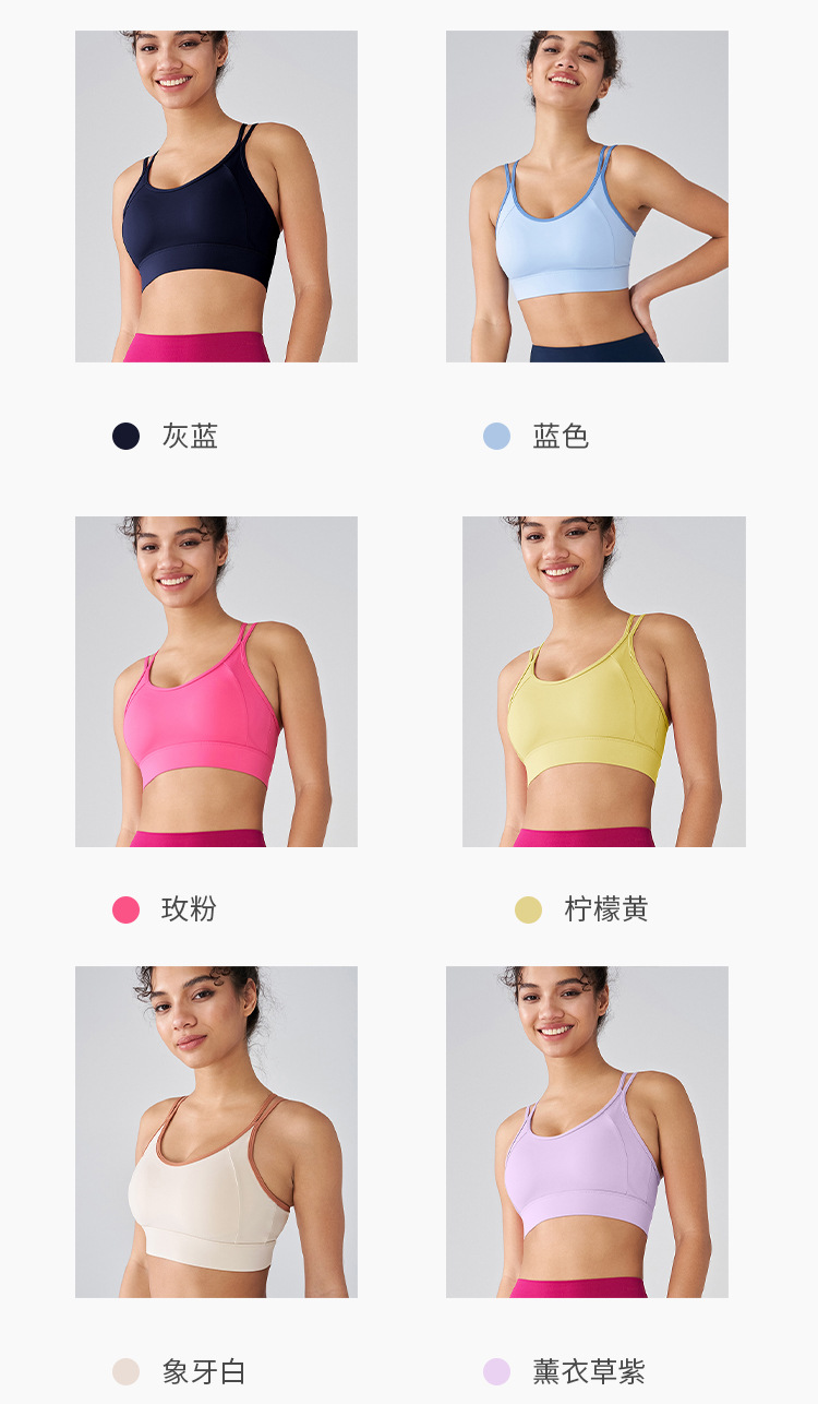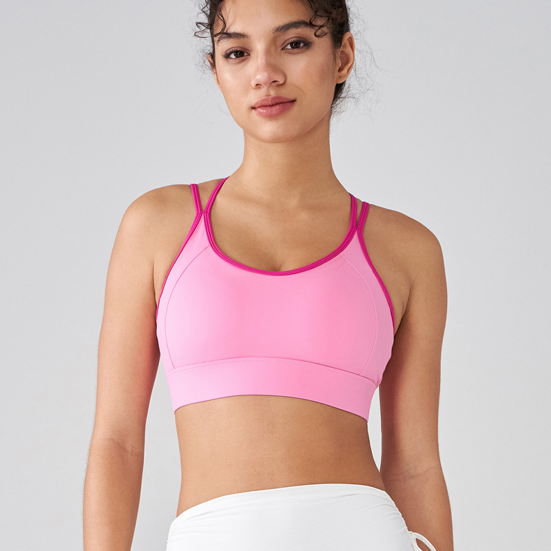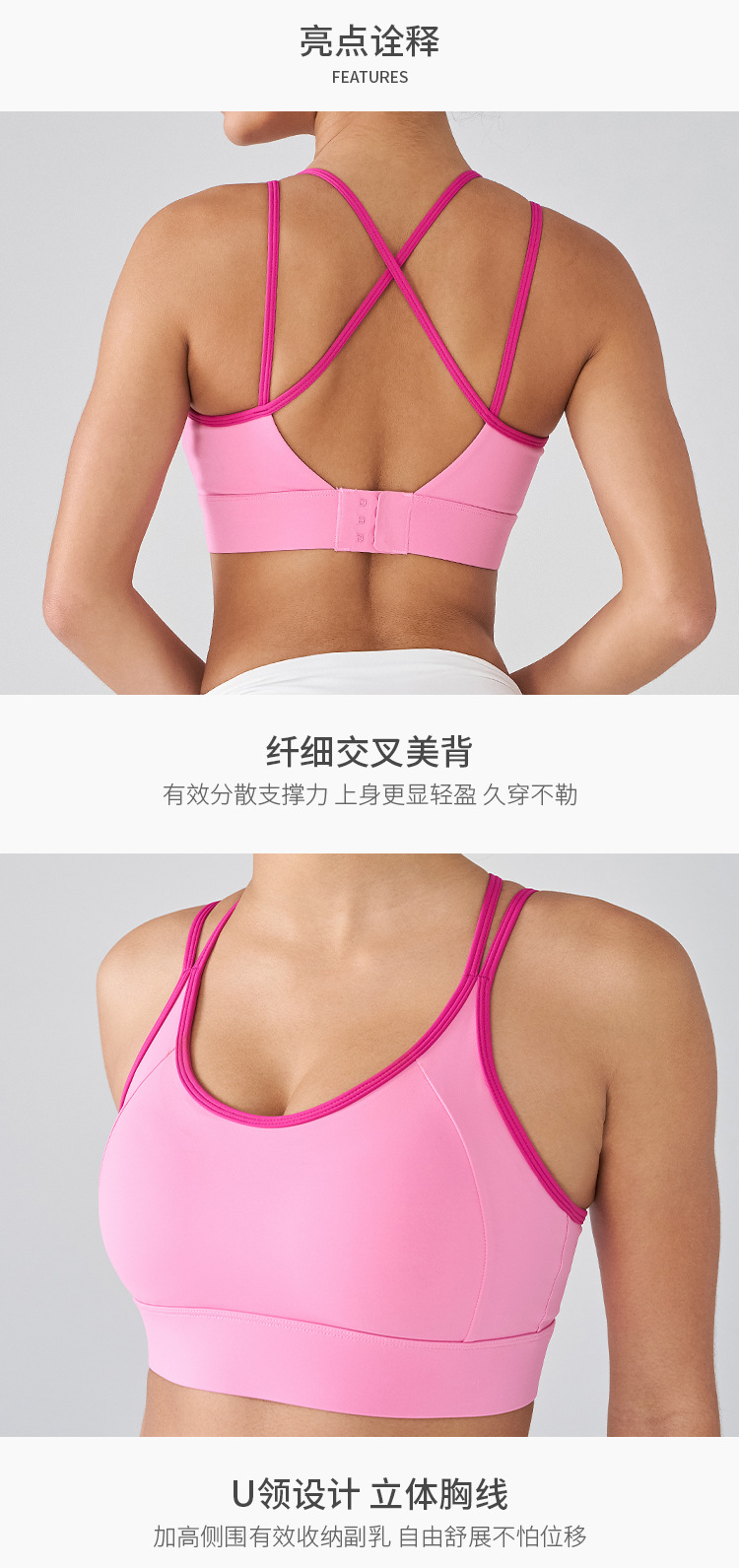 스포츠 속옷 여성의 얇은 어깨 끈 대비 색상 조끼 고정 통합 컵 빠른 건조 피트니스 의류 실행 요가 뷰티 백 브래지어