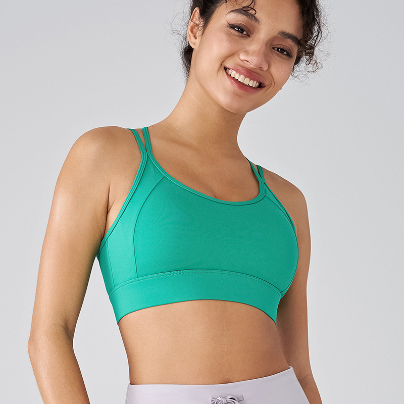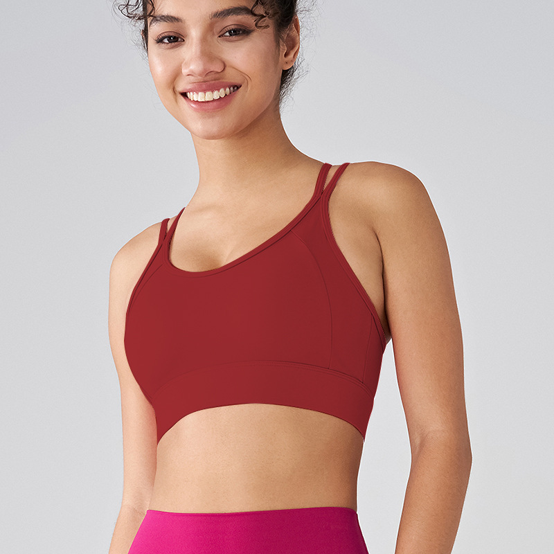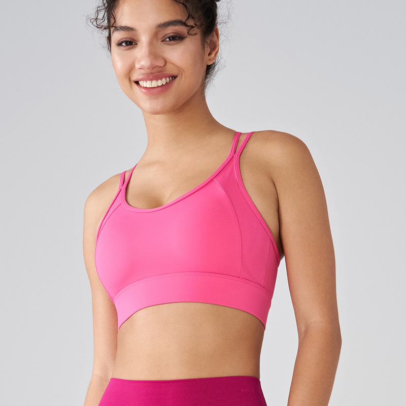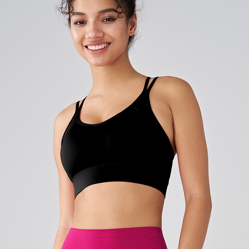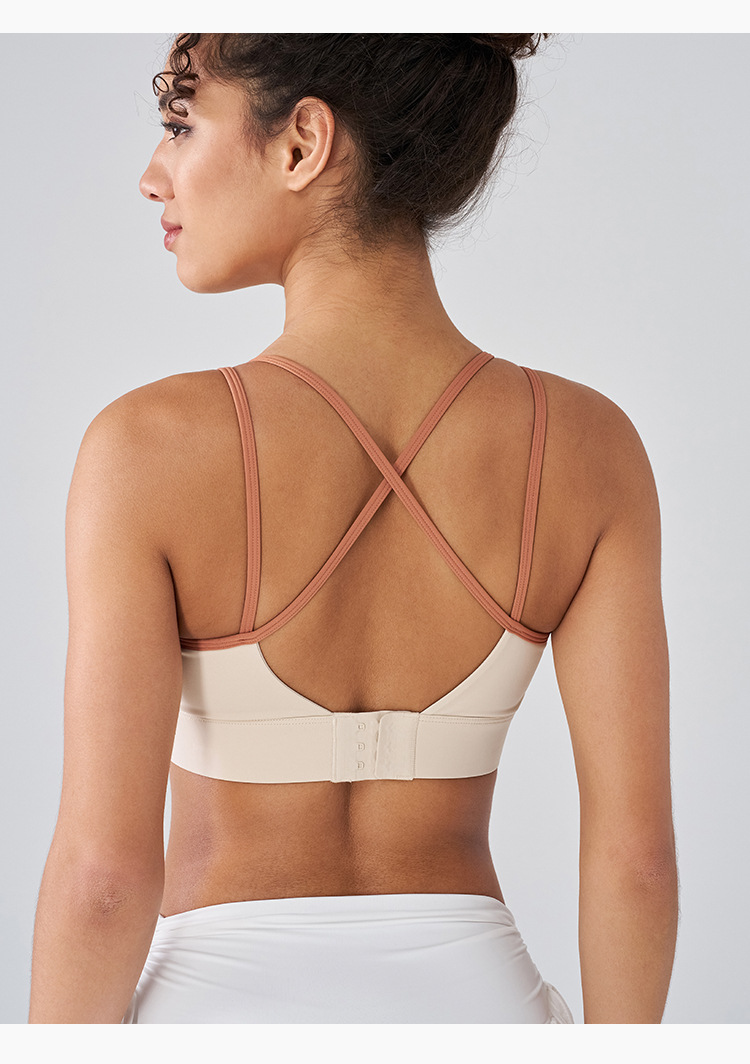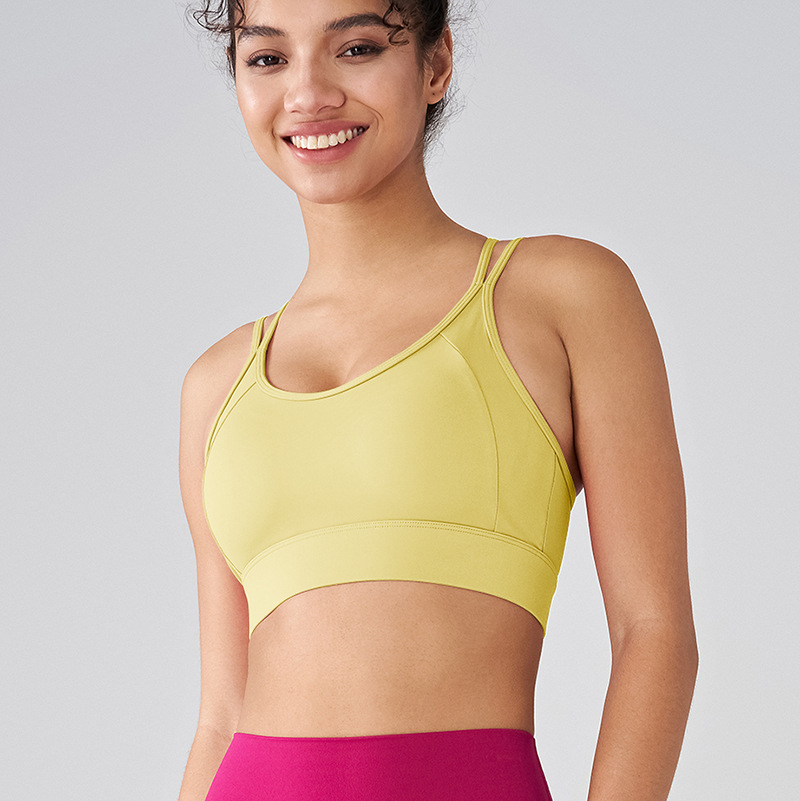 스포츠 속옷 여성의 얇은 어깨 끈 대비 색상 조끼 고정 통합 컵 빠른 건조 피트니스 의류 실행 요가 뷰티 백 브래지어