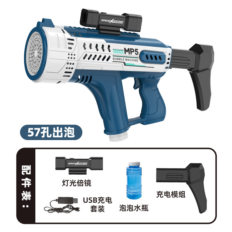 뜨거운 판매 자동 57 홀 MP5 거품 기계 새로운 에너지 전기 거품 총 소년 다채로운 빛 거품 장난감스토어 가기