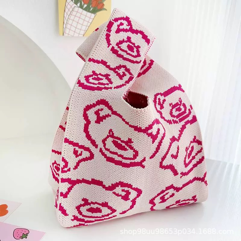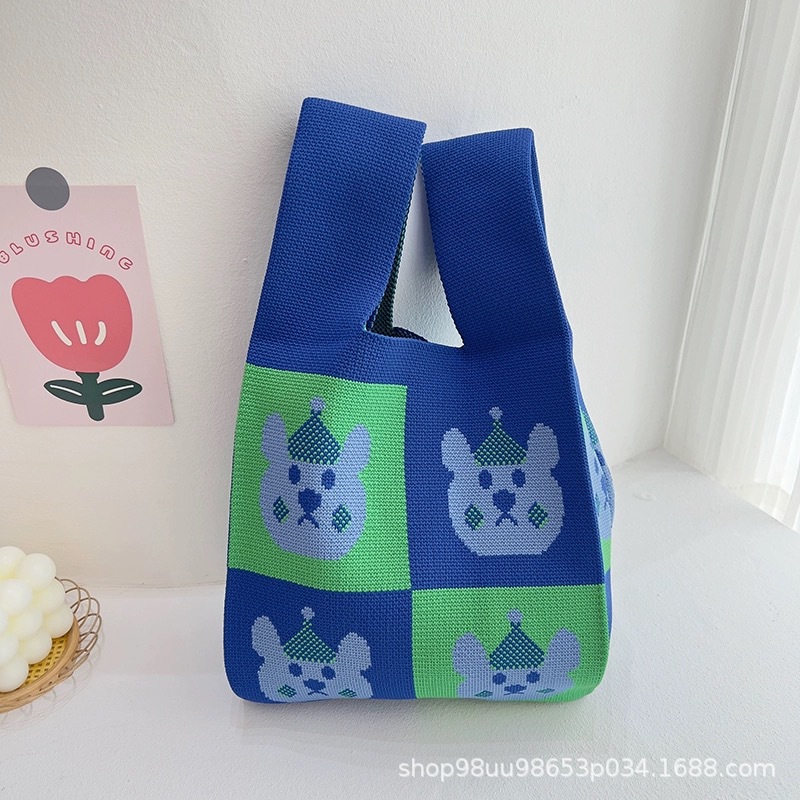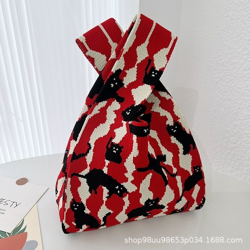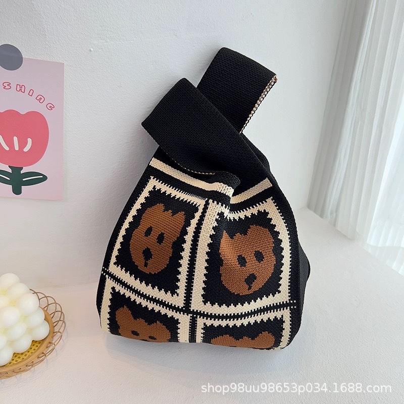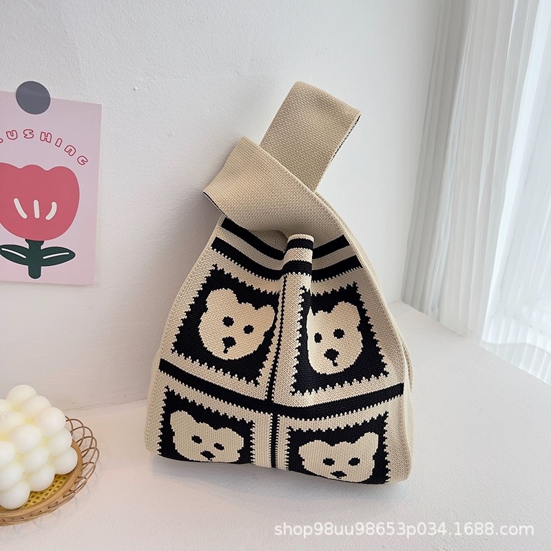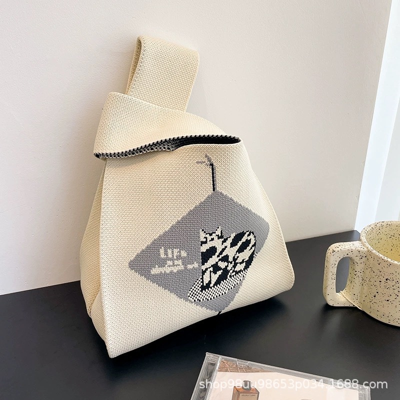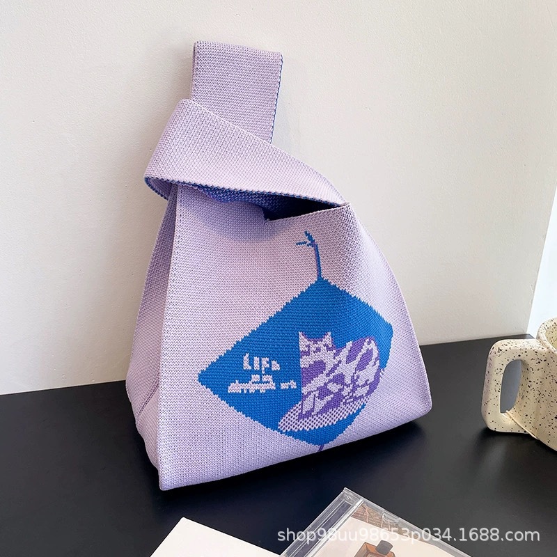 Tote Bag 트렌디 한 Ins 인터넷 유행 유행 핸드백 여성 니트 버킷 가방 일본과 한국 스타일 올매치 핸드 운반 캐주얼 올 매치