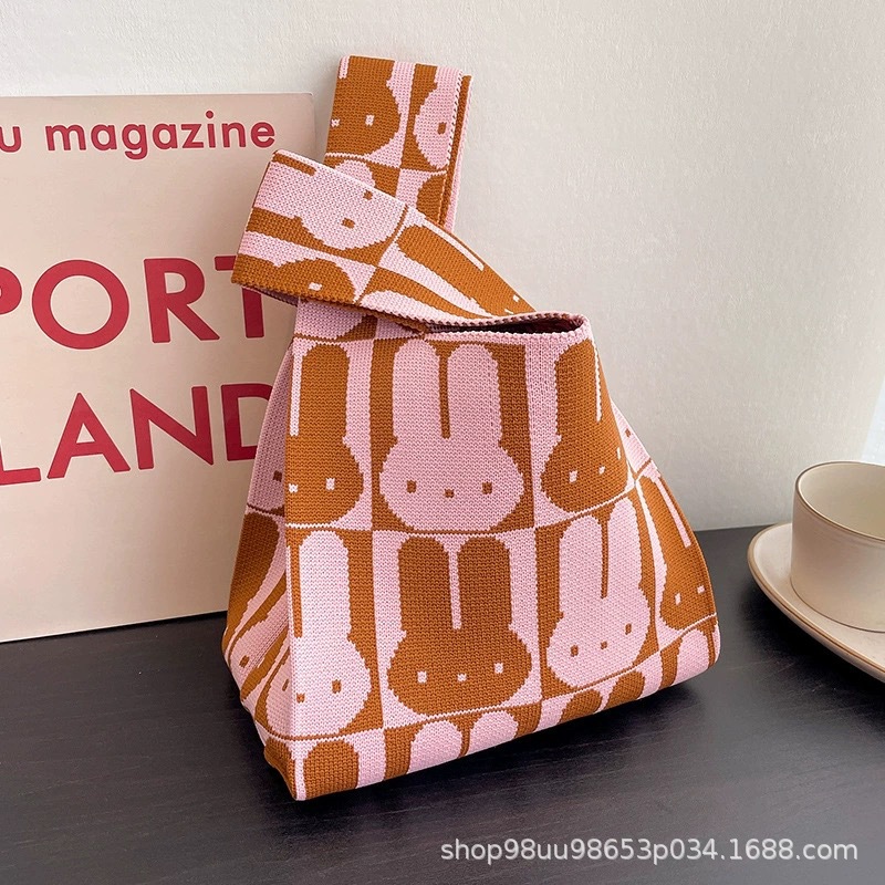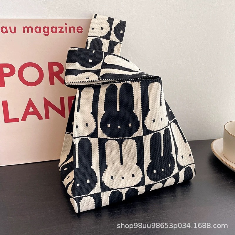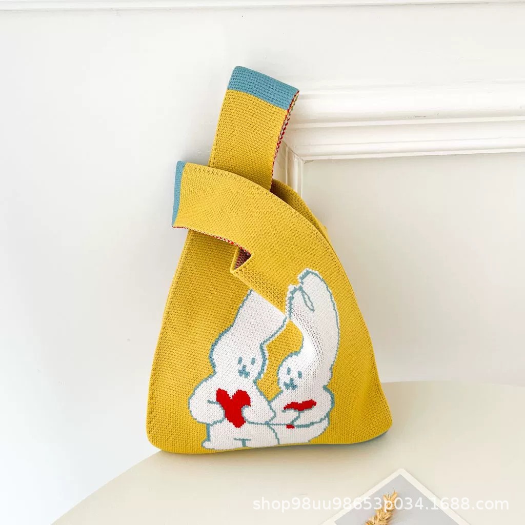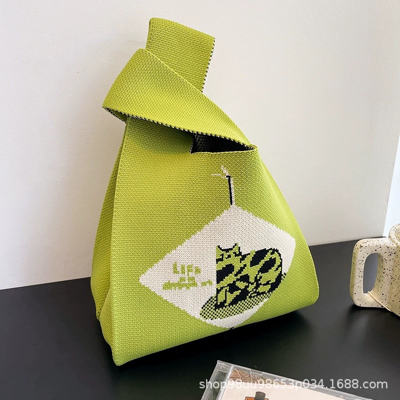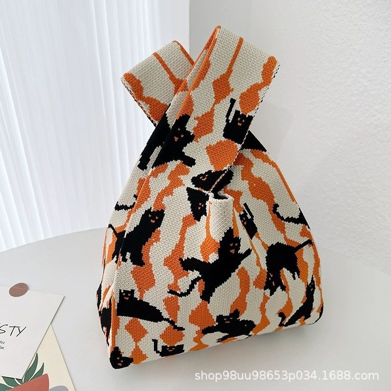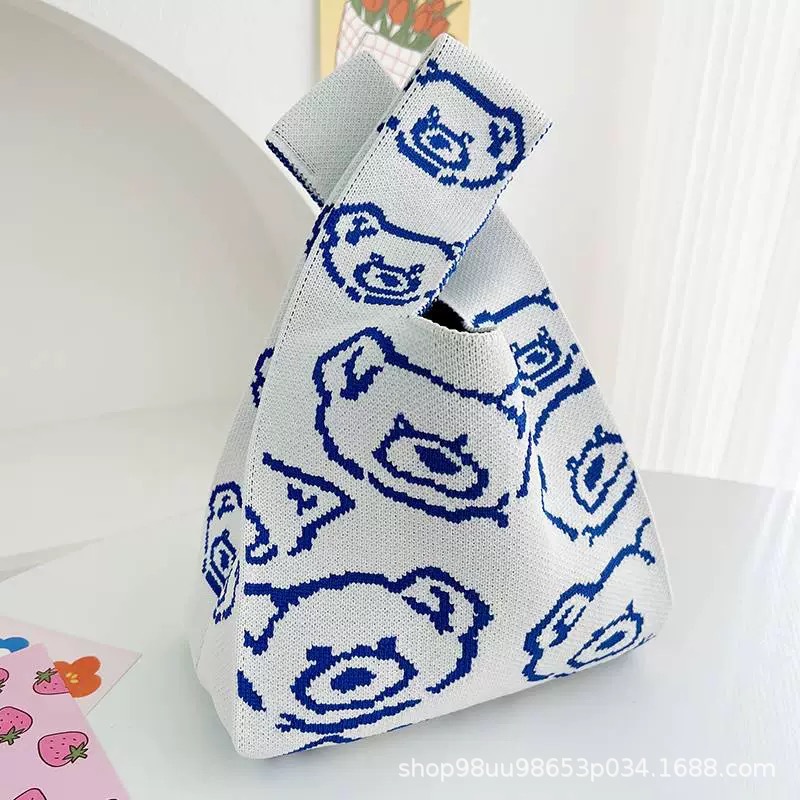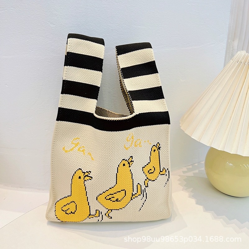 Tote Bag 트렌디 한 Ins 인터넷 유행 유행 핸드백 여성 니트 버킷 가방 일본과 한국 스타일 올매치 핸드 운반 캐주얼 올 매치