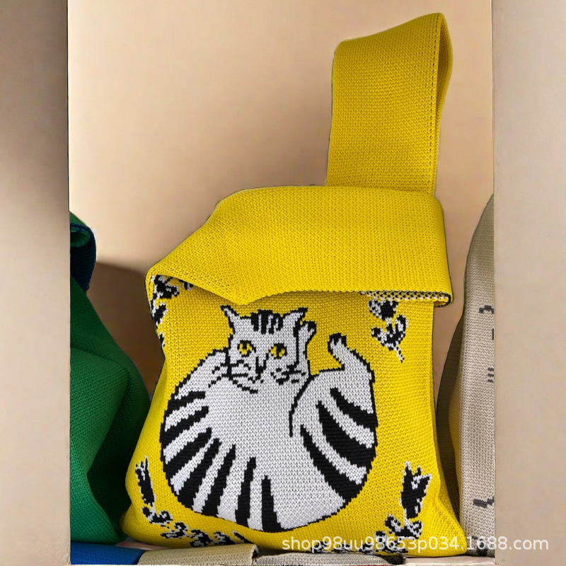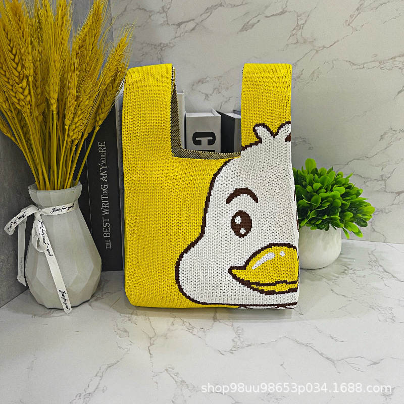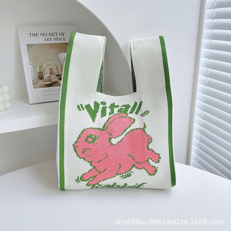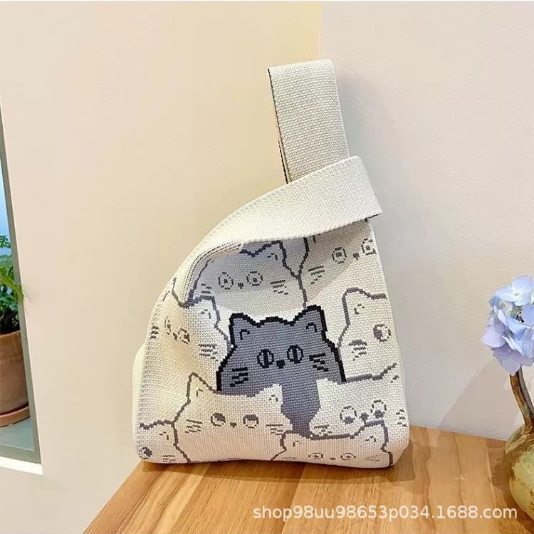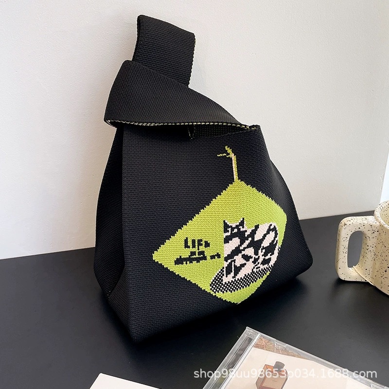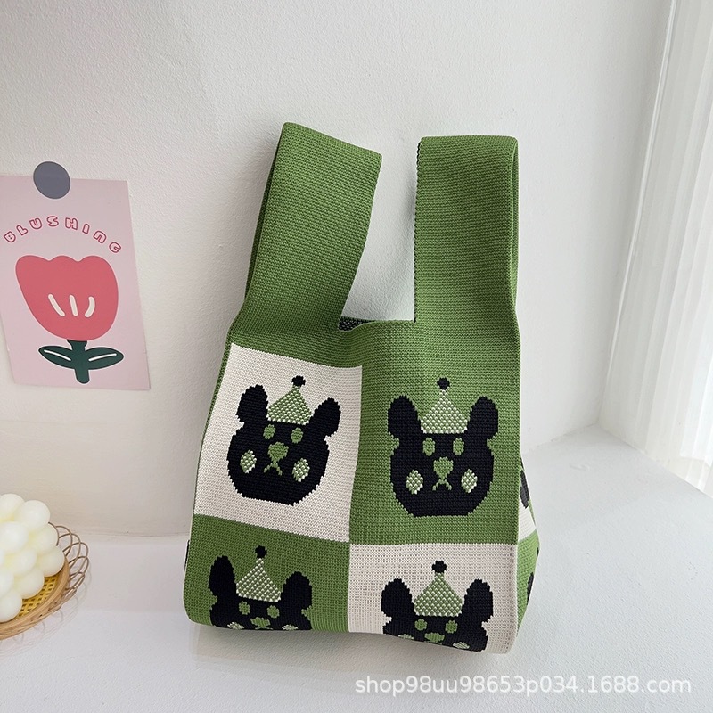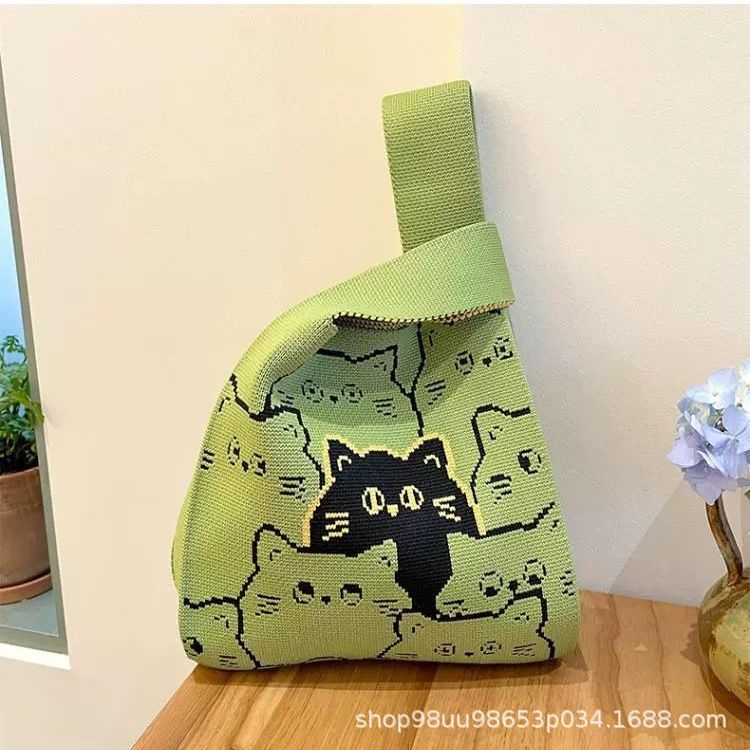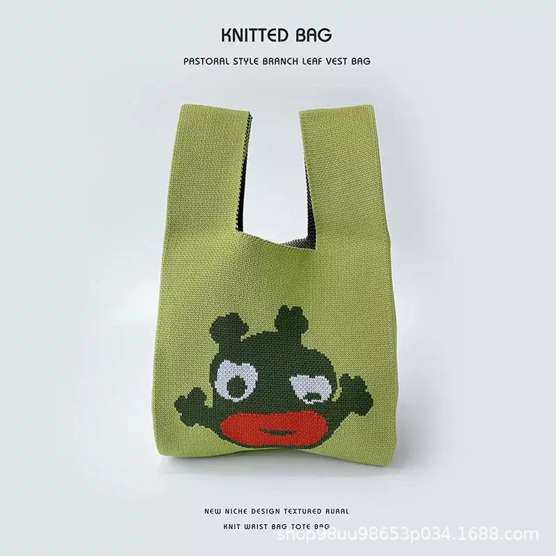 Tote Bag 트렌디 한 Ins 인터넷 유행 유행 핸드백 여성 니트 버킷 가방 일본과 한국 스타일 올매치 핸드 운반 캐주얼 올 매치