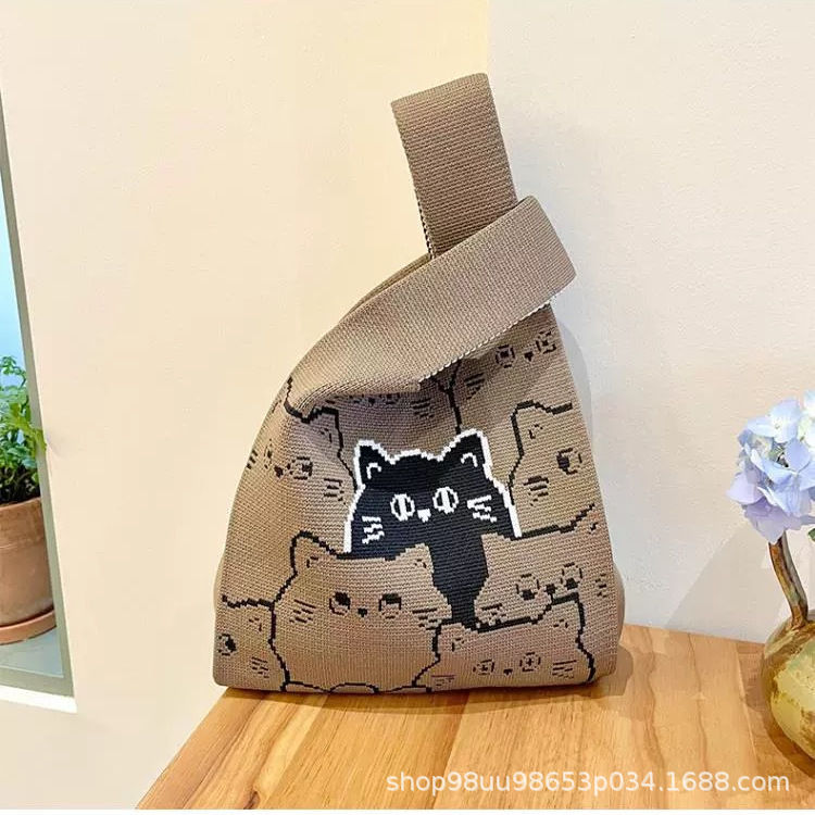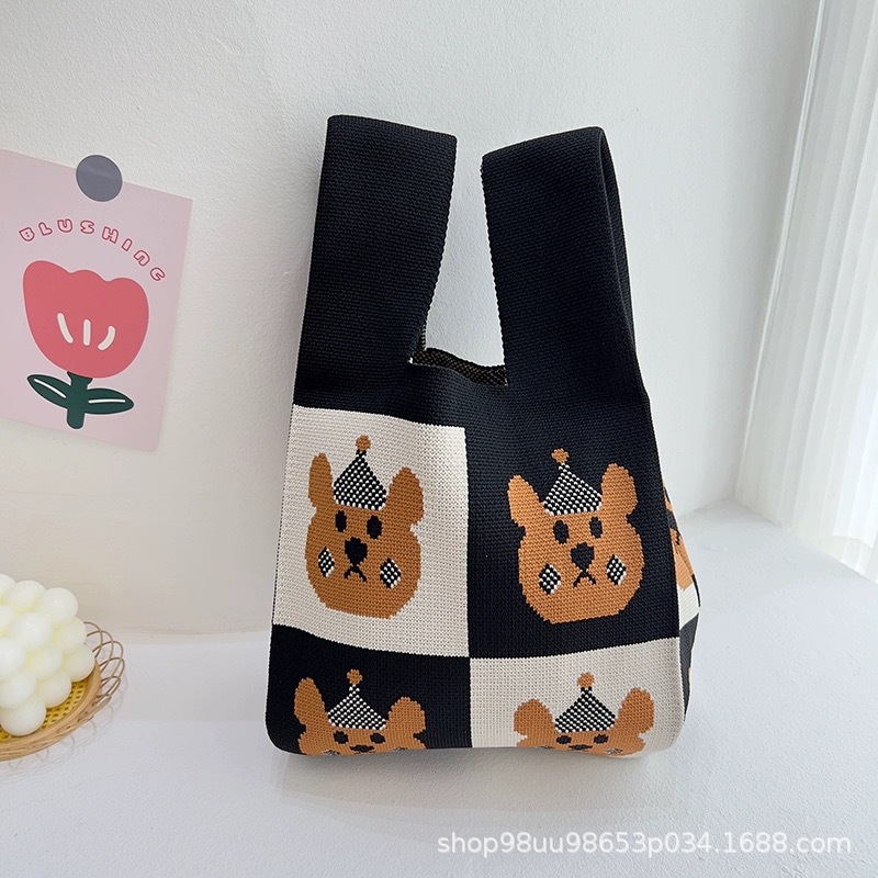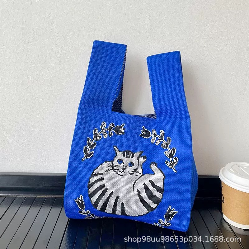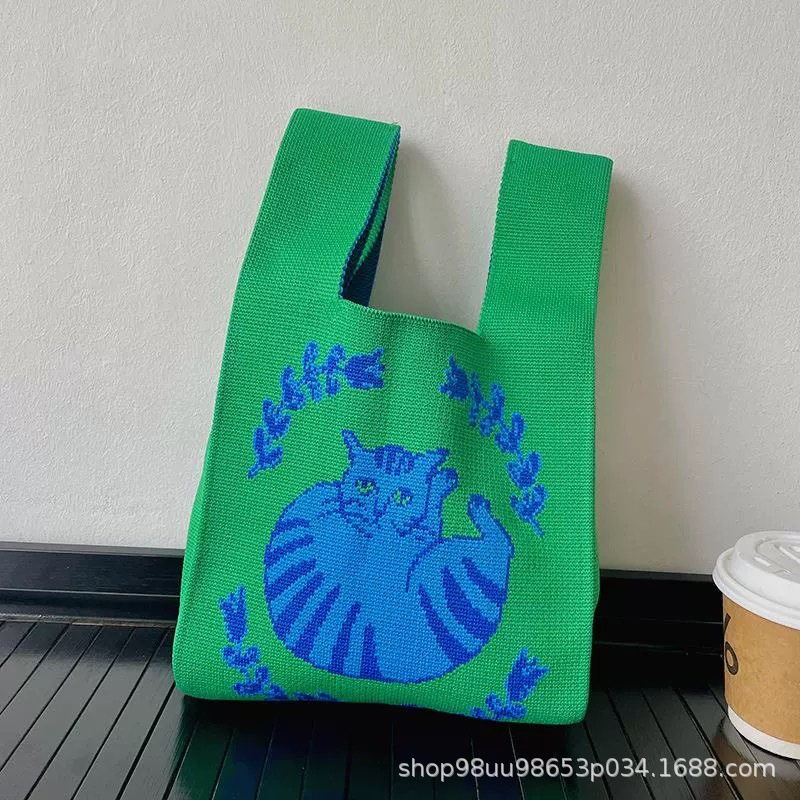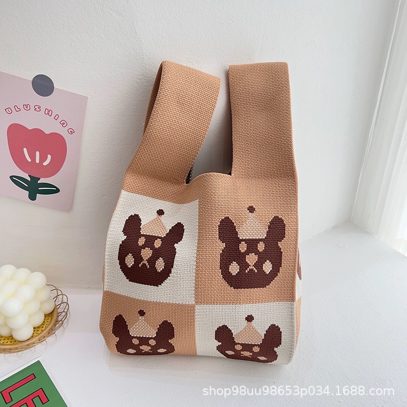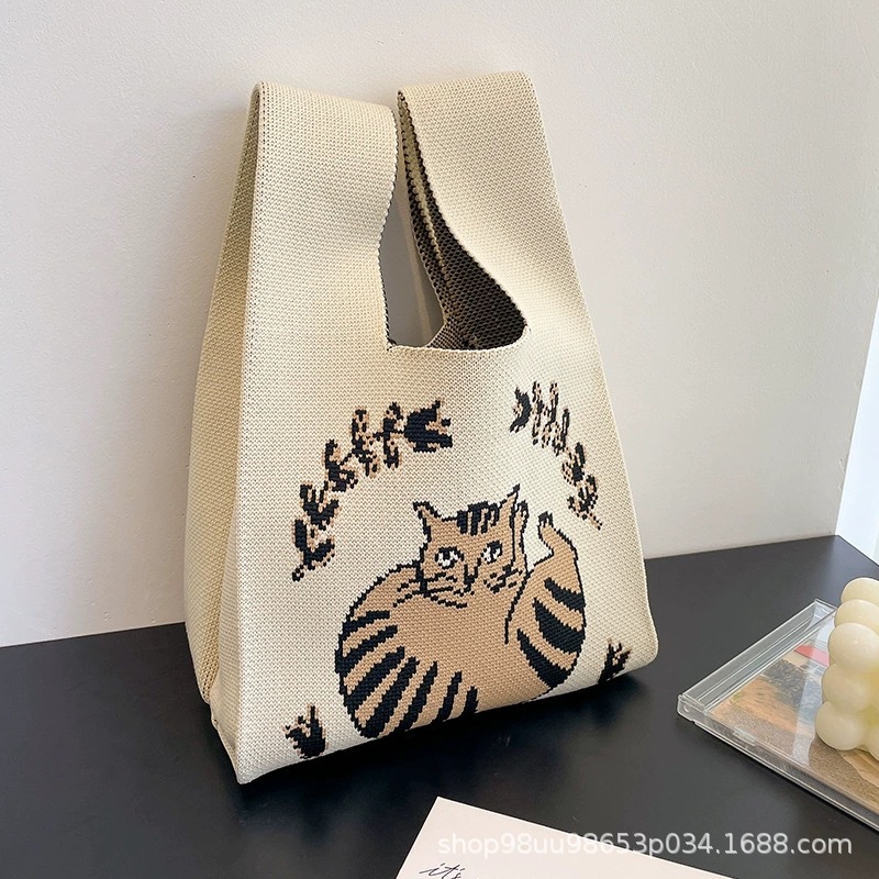 Tote Bag 트렌디 한 Ins 인터넷 유행 유행 핸드백 여성 니트 버킷 가방 일본과 한국 스타일 올매치 핸드 운반 캐주얼 올 매치스토어 가기