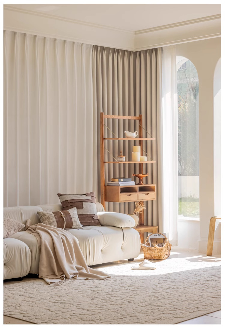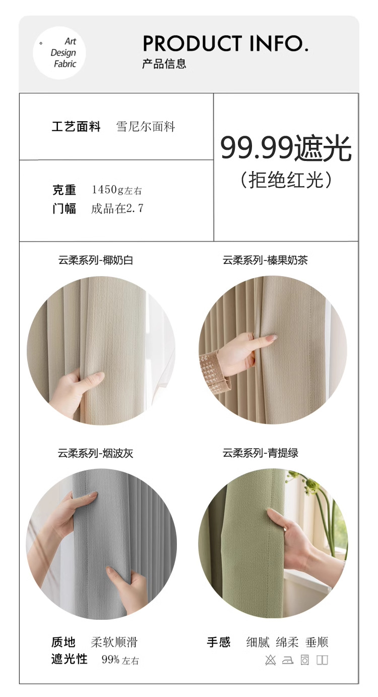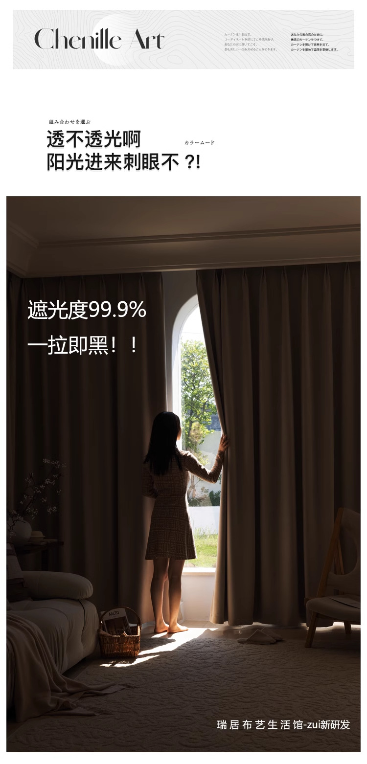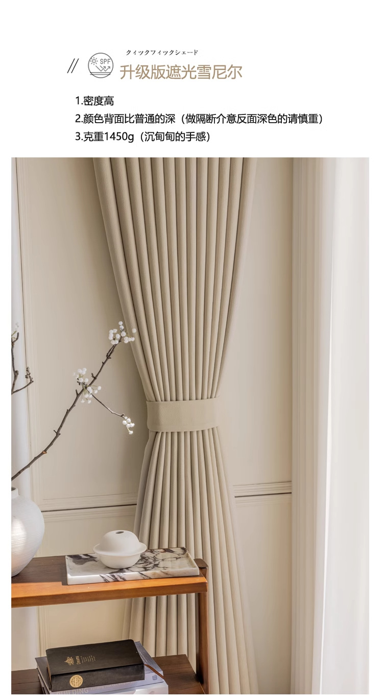 2025 새로운 불투명 및 비홍백색 셔닐 라이트 럭셔리 크림 스타일 침실 하이 엔드 완전 암막 커튼 완제품스토어 가기