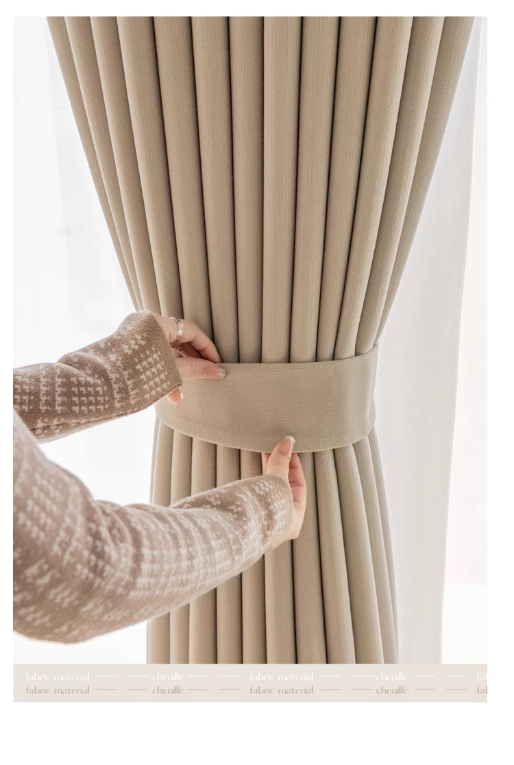 2025 새로운 불투명 및 비홍백색 셔닐 라이트 럭셔리 크림 스타일 침실 하이 엔드 완전 암막 커튼 완제품