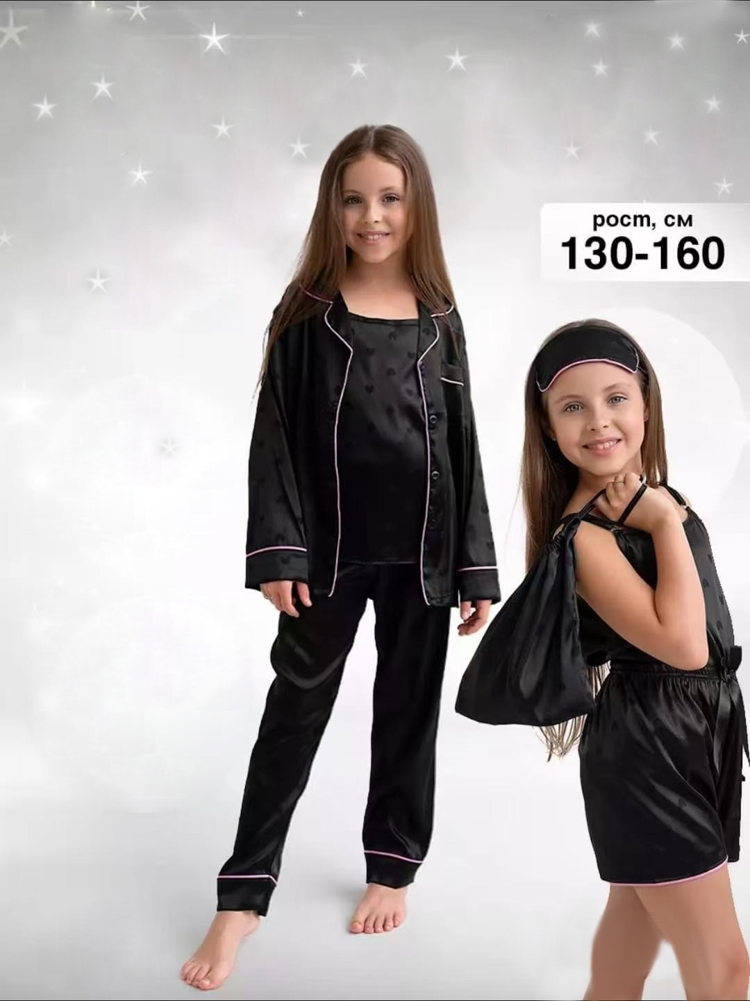 여아용 아동 잠옷 7종 세트 검정색 단색 어린이용 아이스 실크 홈웨어 러시아 얇은 잠옷