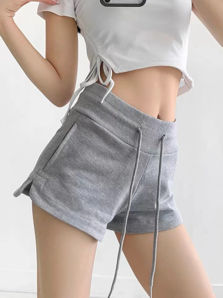 [Hua Mian] 미국 스트리트 스파이스 걸스 슬림 드로우 스트링 스포츠 반바지 여성 여름 디자인 센스 틈새 슬림 핏 핫 팬츠