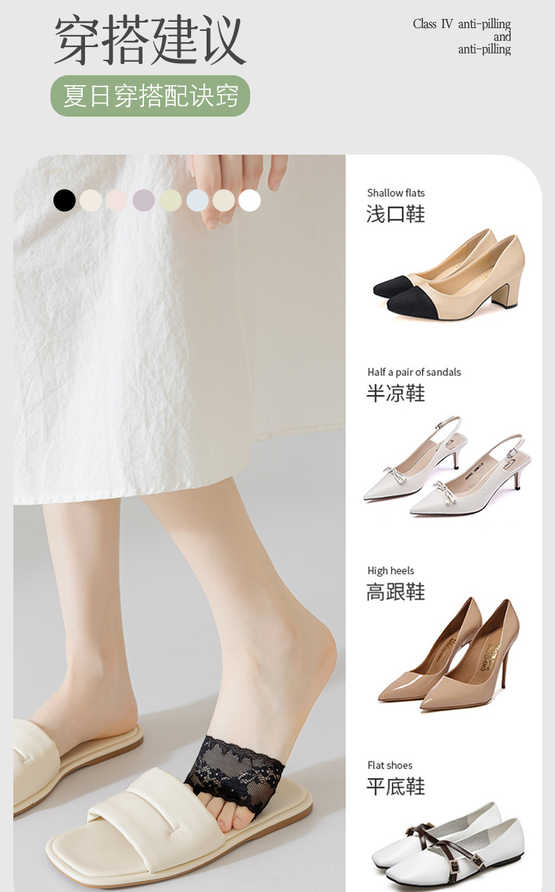 재고 직접 판매 에어 쿠션 절반 팜 여성 양말 봄과 여름 레이스 샌들 특수 조수 양말 통기성 미끄럼 방지 보이지 않는 양말 SL070