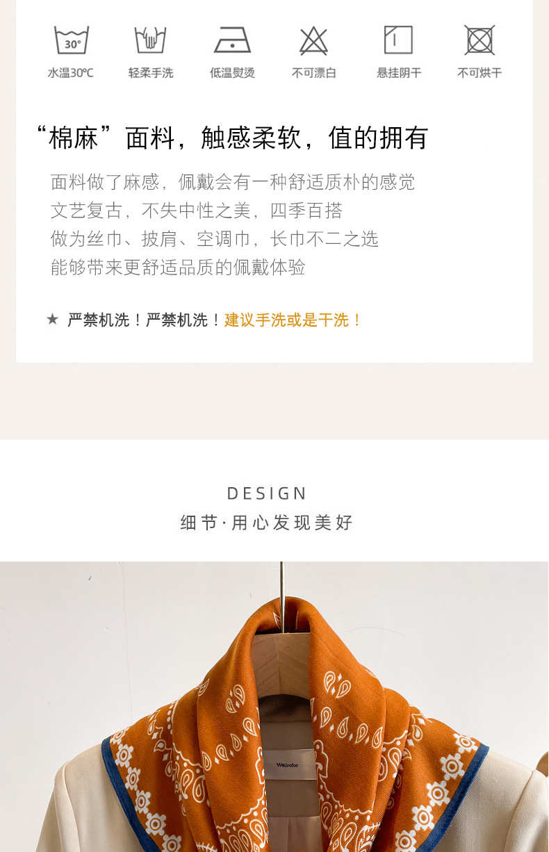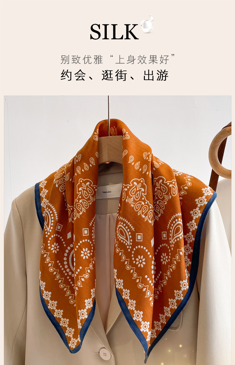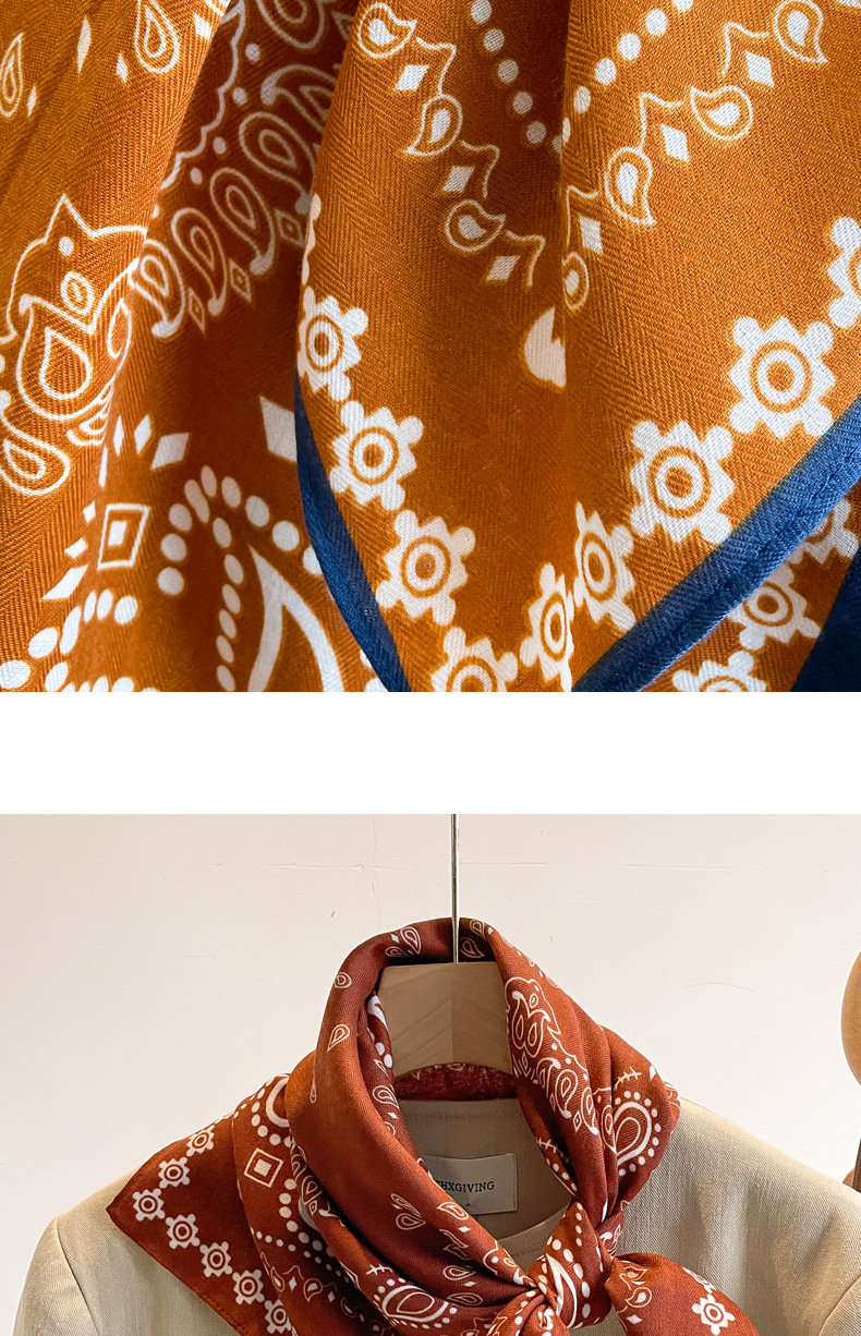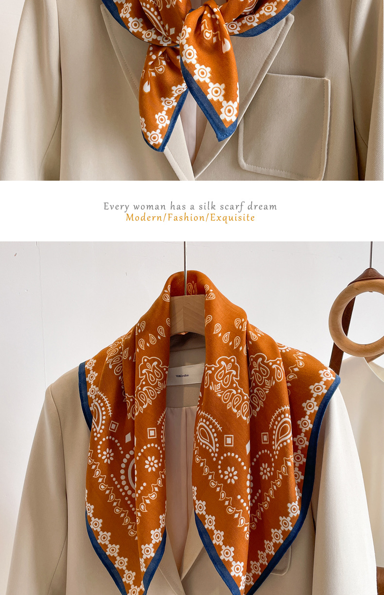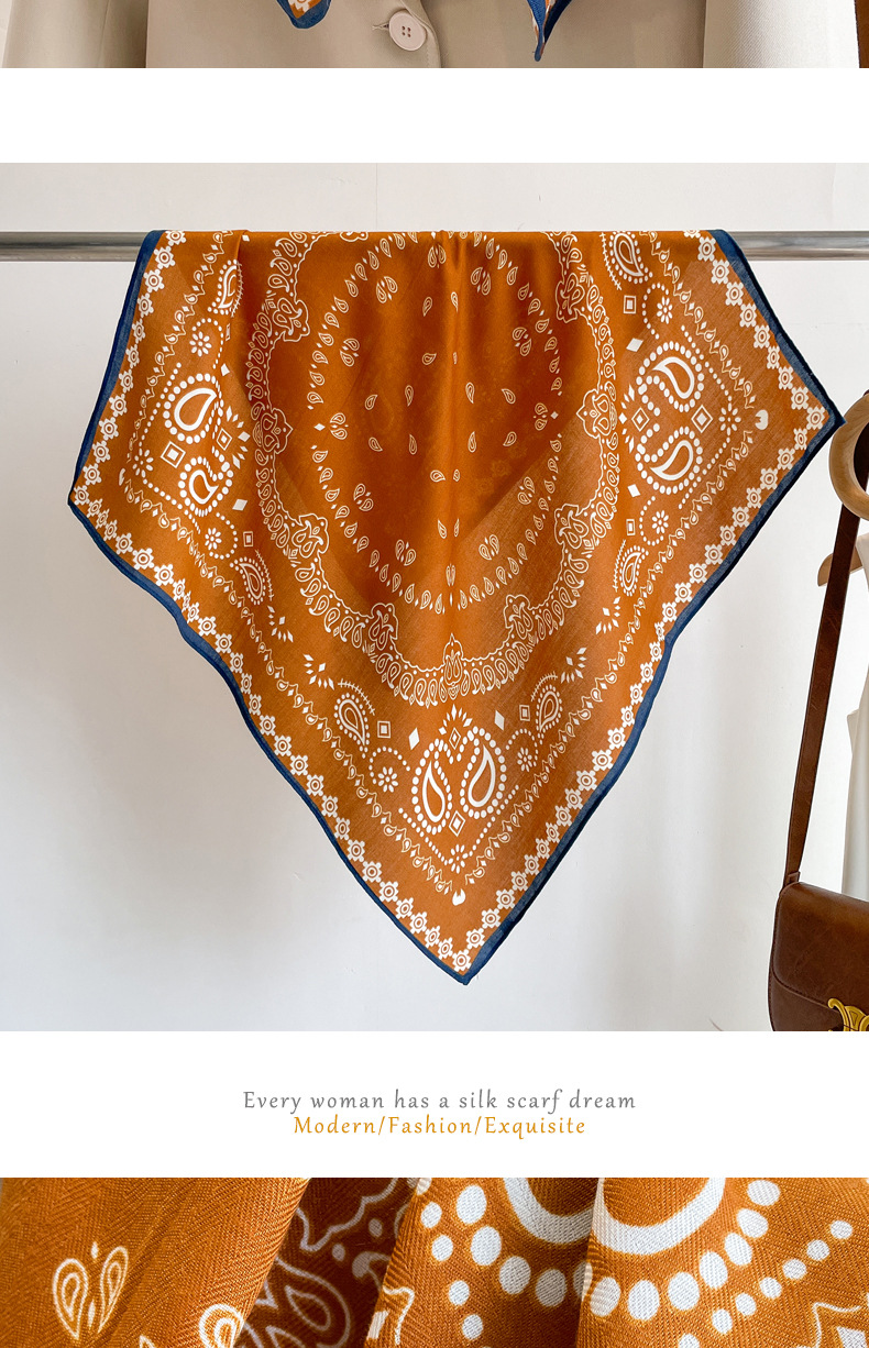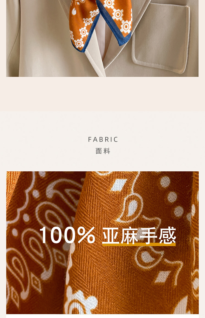 오렌지 캐슈 꽃면 및 린넨 헤어 밴드 실크 스카프 70 작은 사각형 스카프 여성의 얇은 스카프 린넨 스카프 올 매치 셔츠스토어 가기