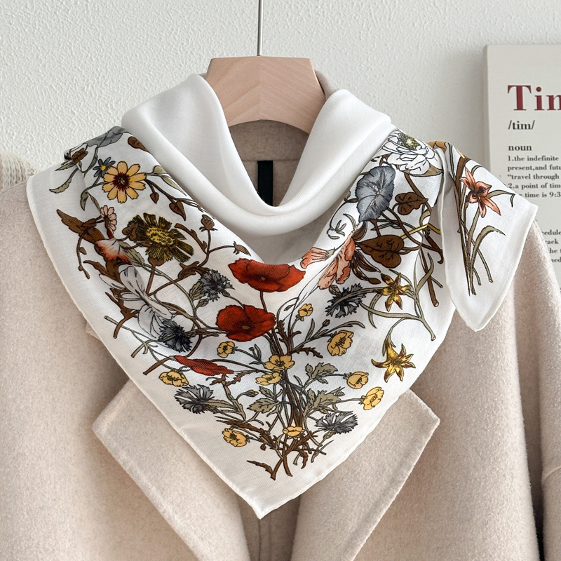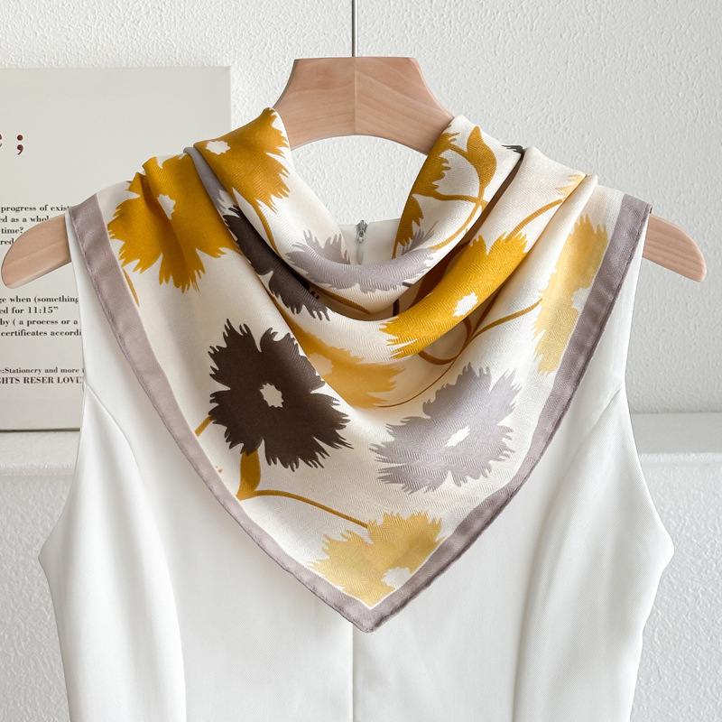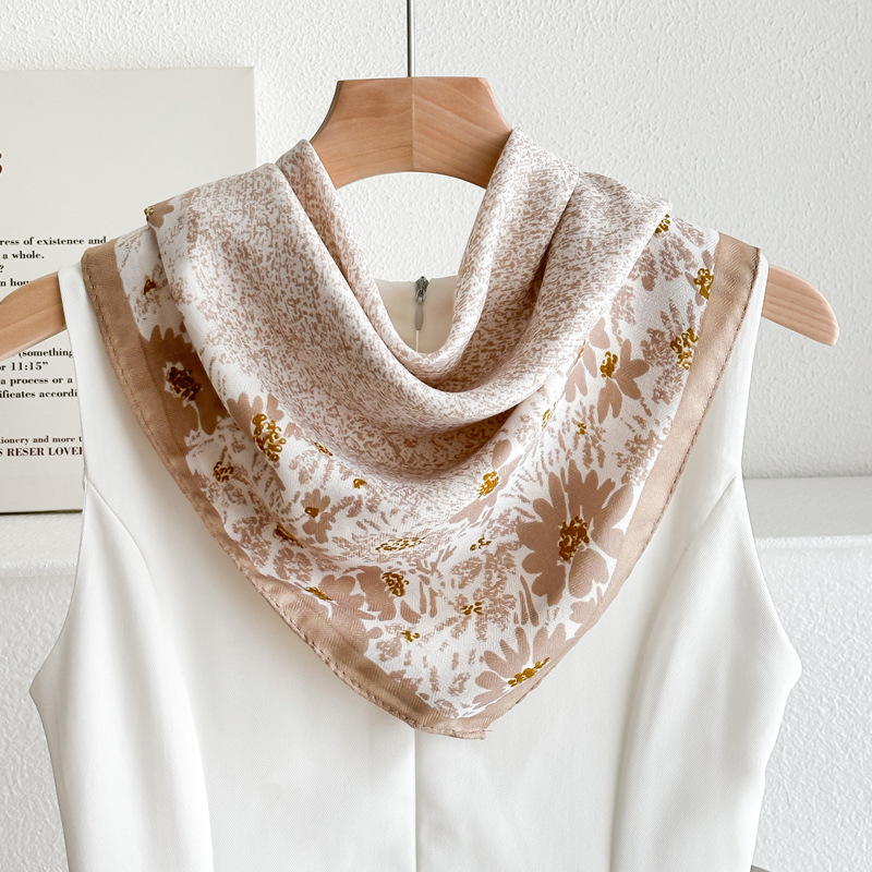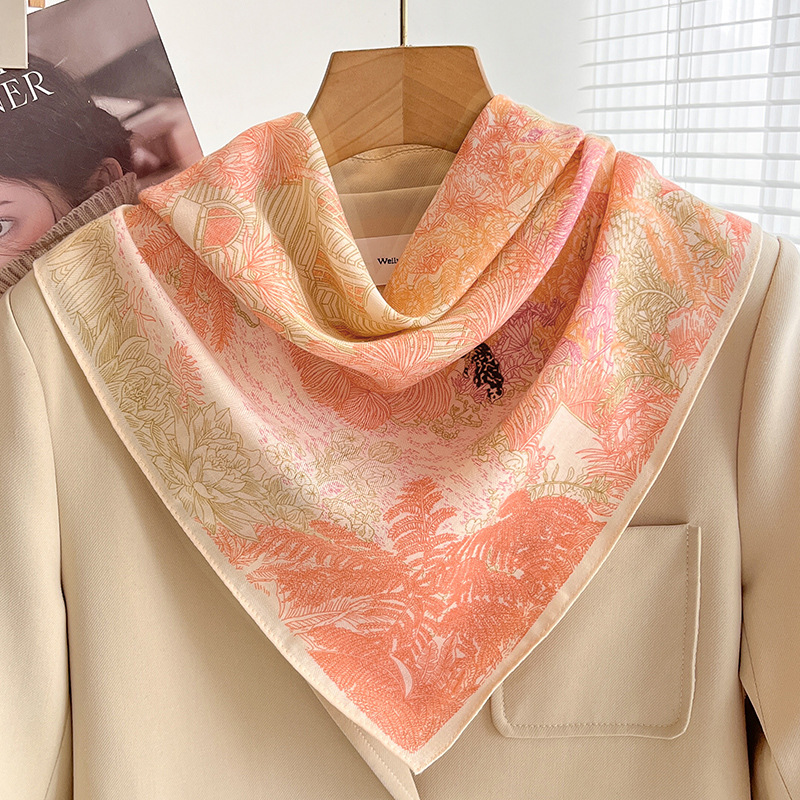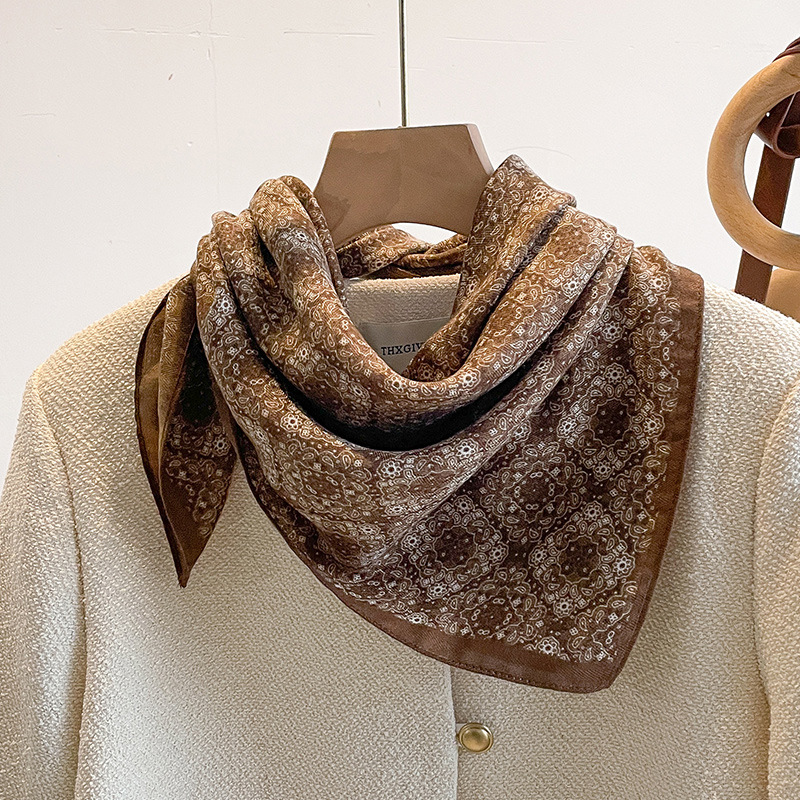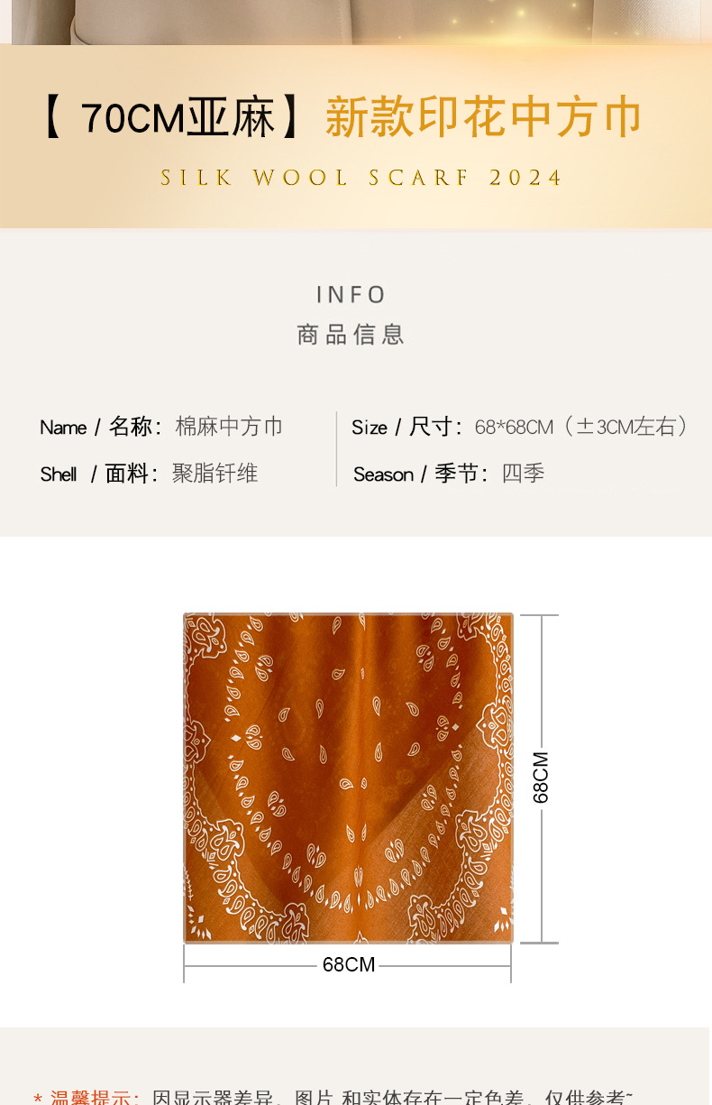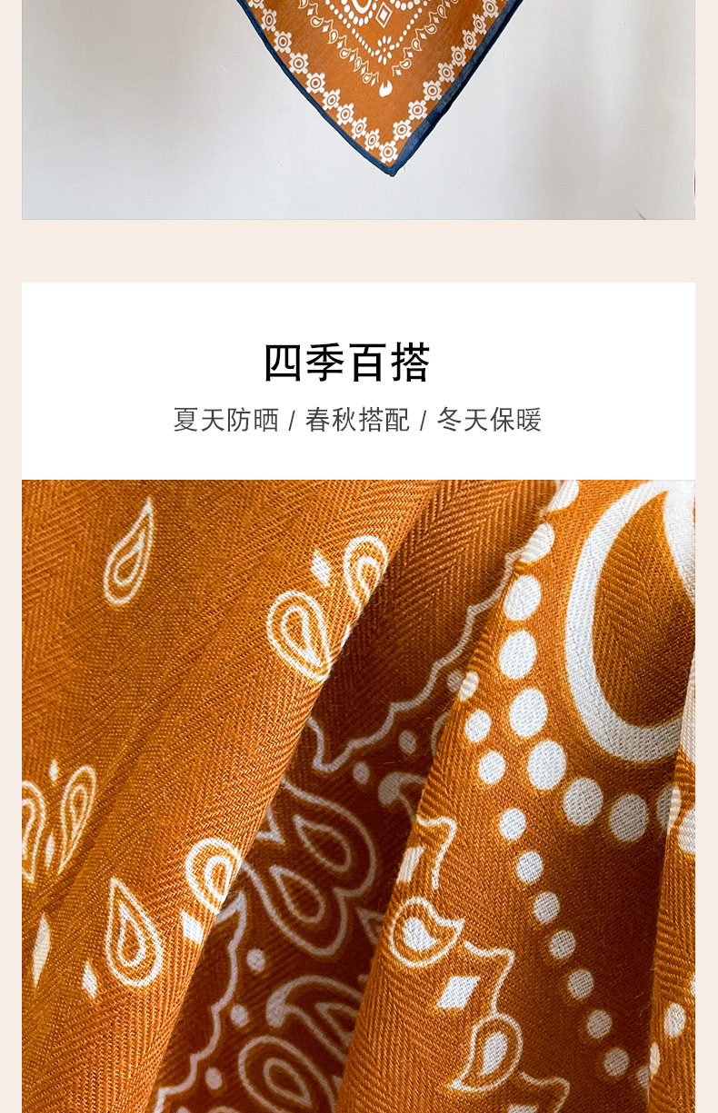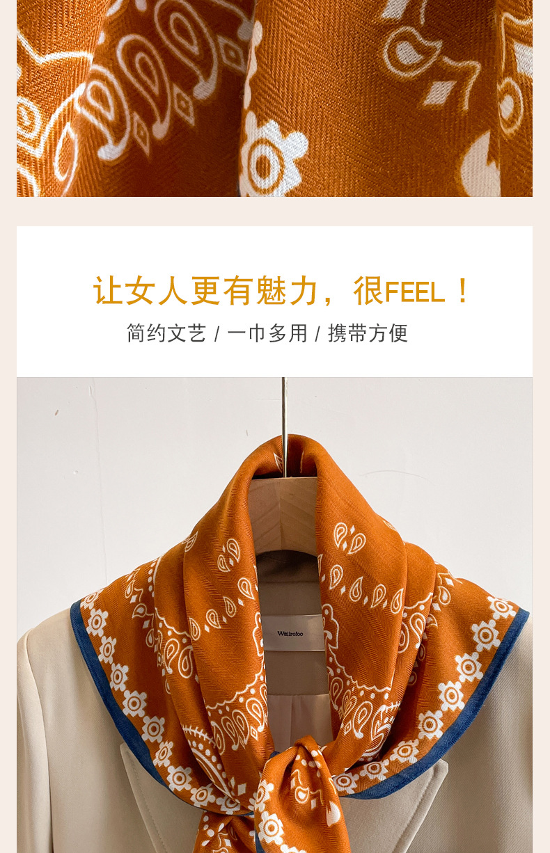 오렌지 캐슈 꽃면 및 린넨 헤어 밴드 실크 스카프 70 작은 사각형 스카프 여성의 얇은 스카프 린넨 스카프 올 매치 셔츠스토어 가기