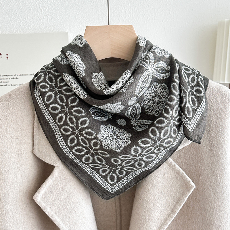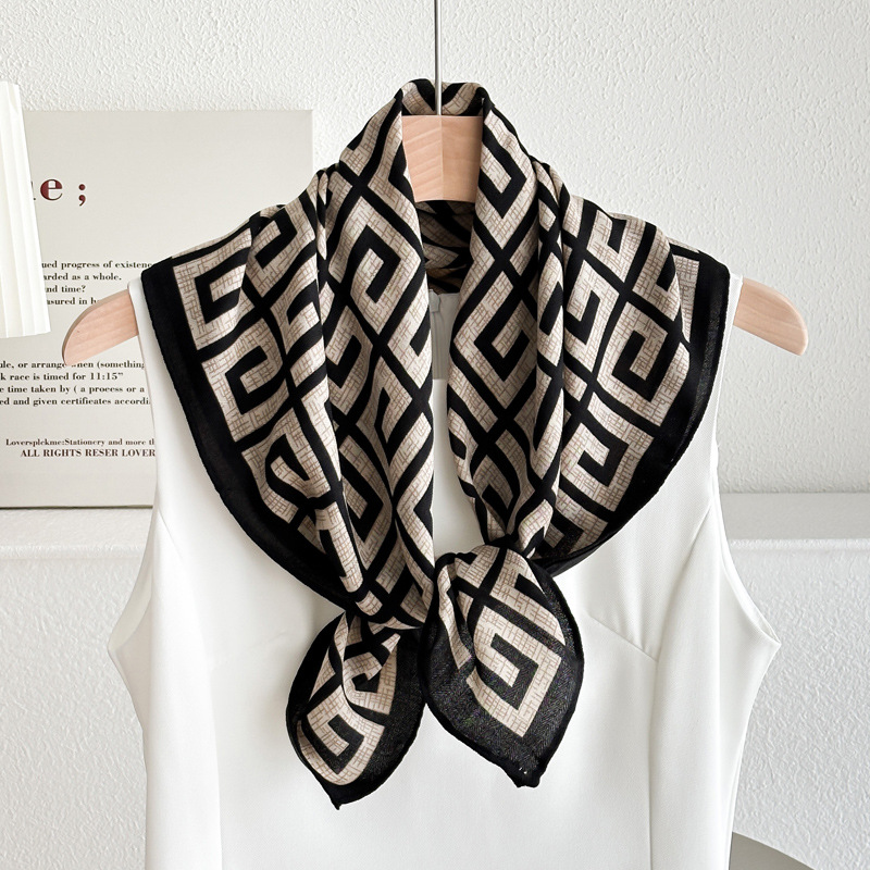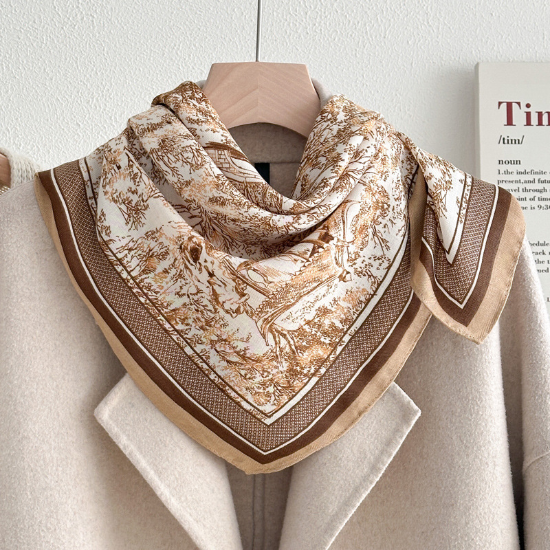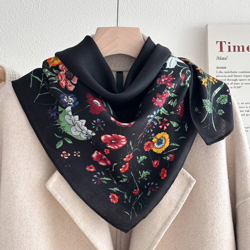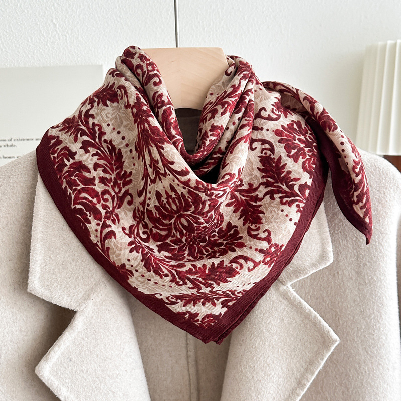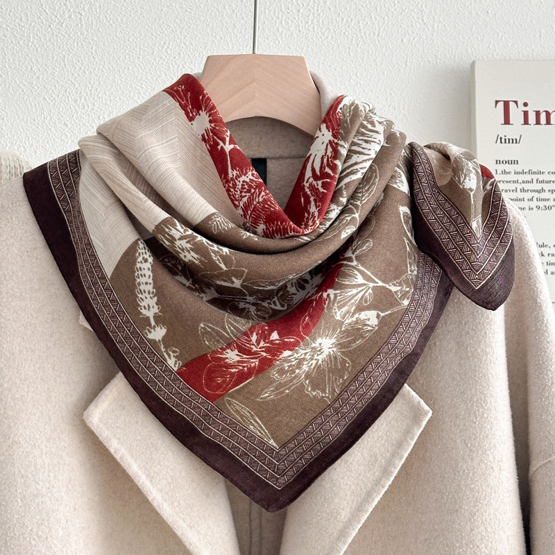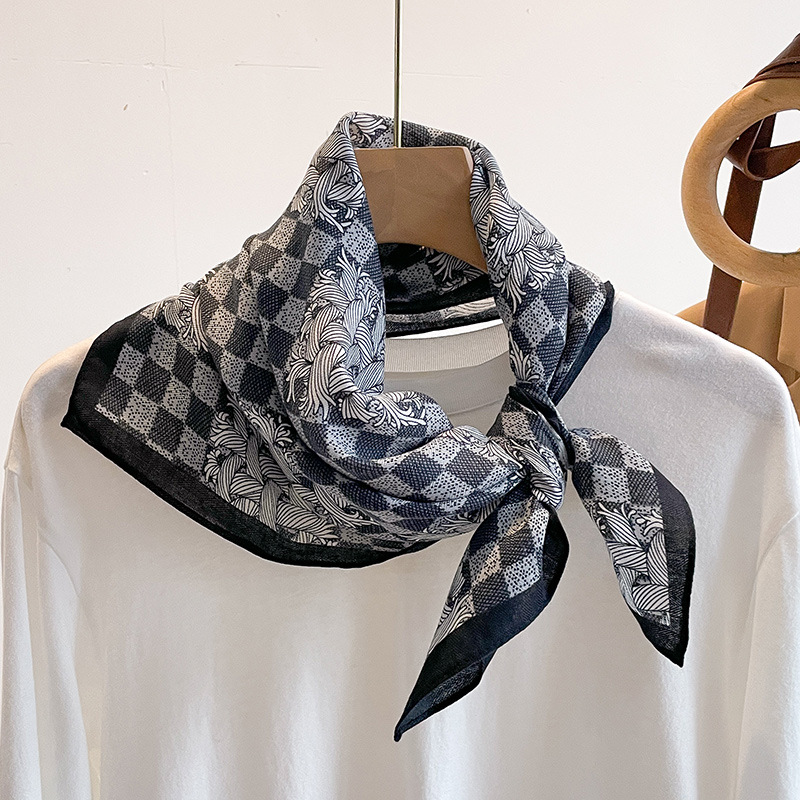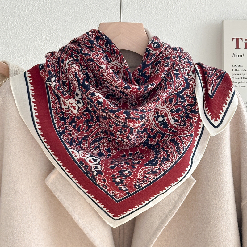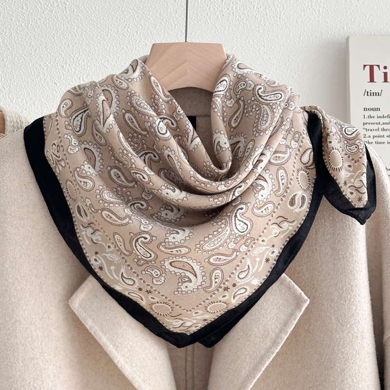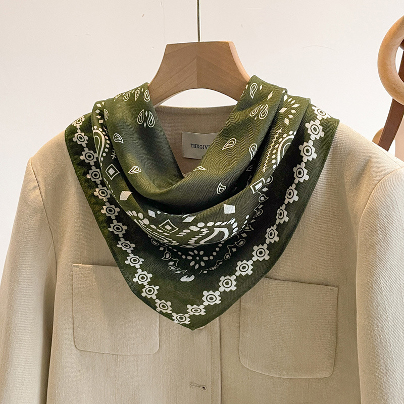 오렌지 캐슈 꽃면 및 린넨 헤어 밴드 실크 스카프 70 작은 사각형 스카프 여성의 얇은 스카프 린넨 스카프 올 매치 셔츠스토어 가기