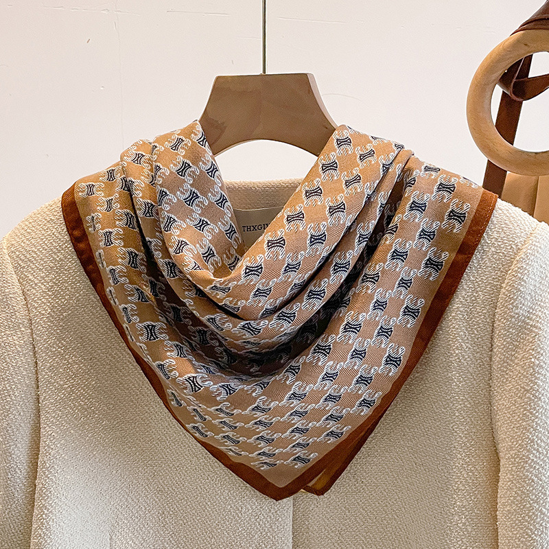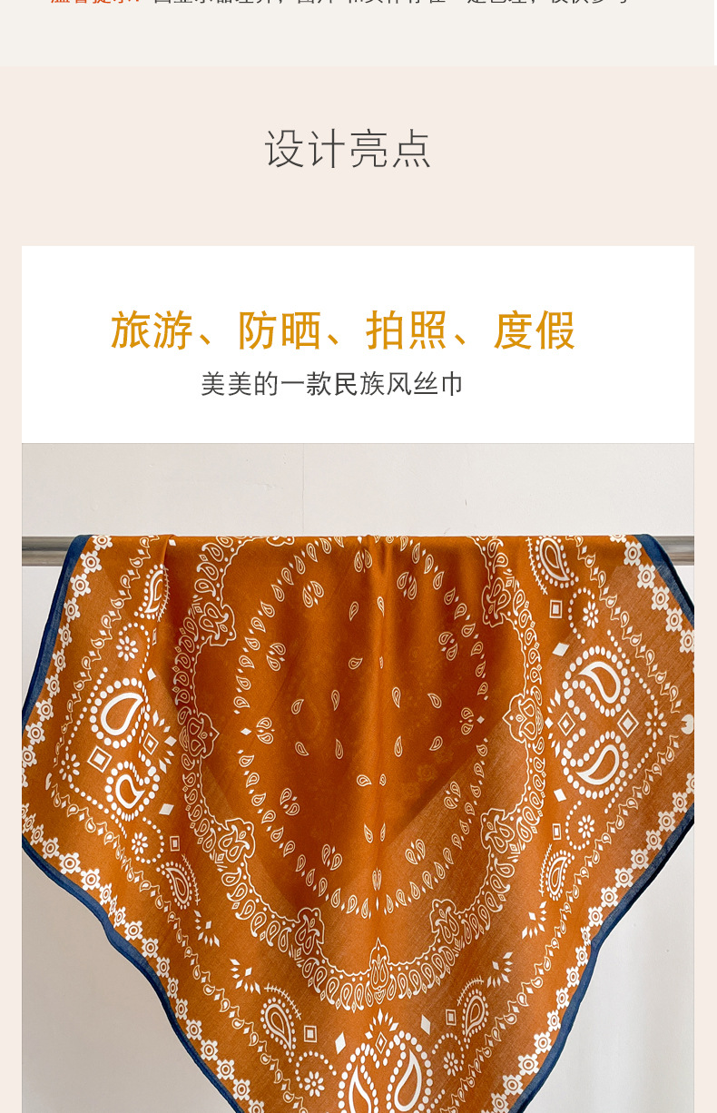 오렌지 캐슈 꽃면 및 린넨 헤어 밴드 실크 스카프 70 작은 사각형 스카프 여성의 얇은 스카프 린넨 스카프 올 매치 셔츠