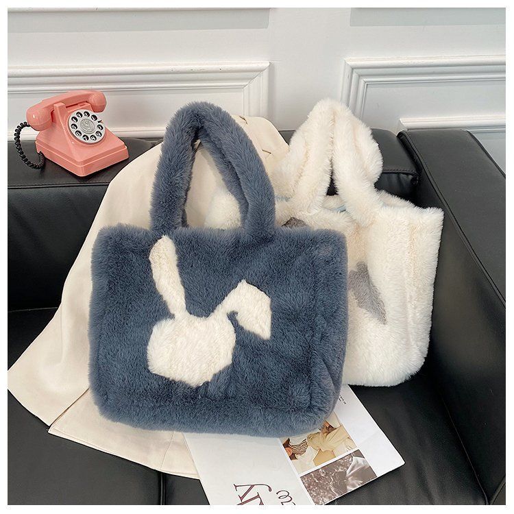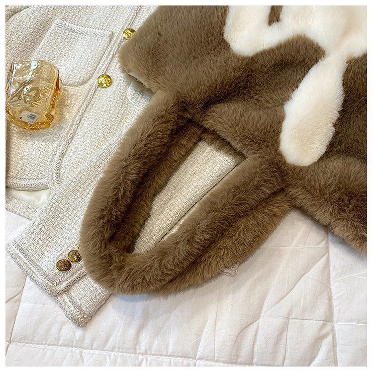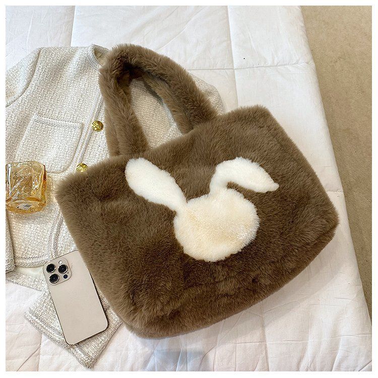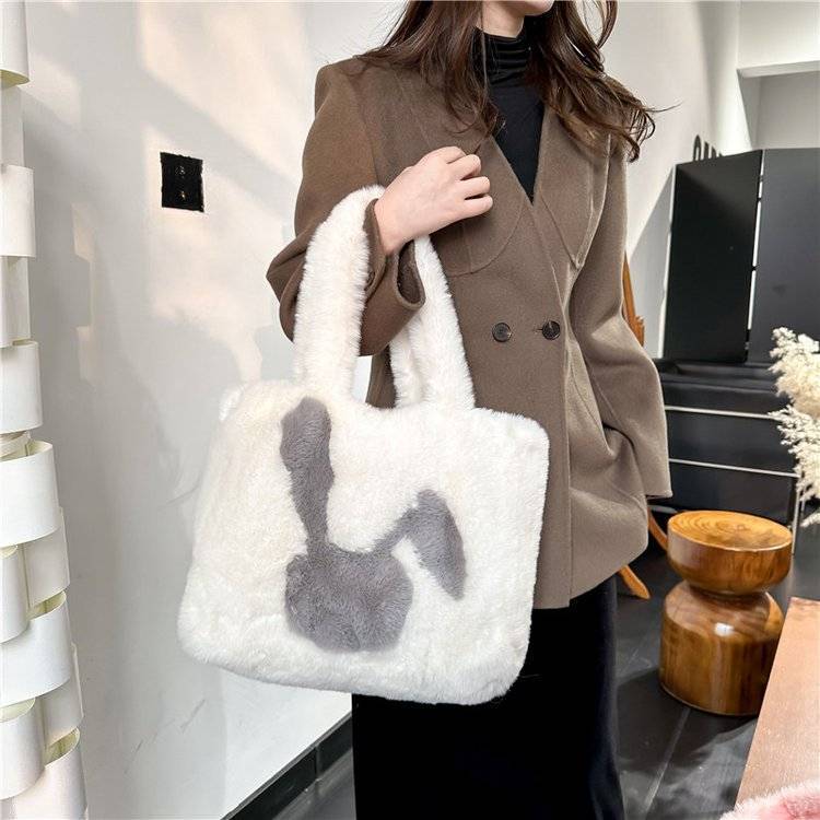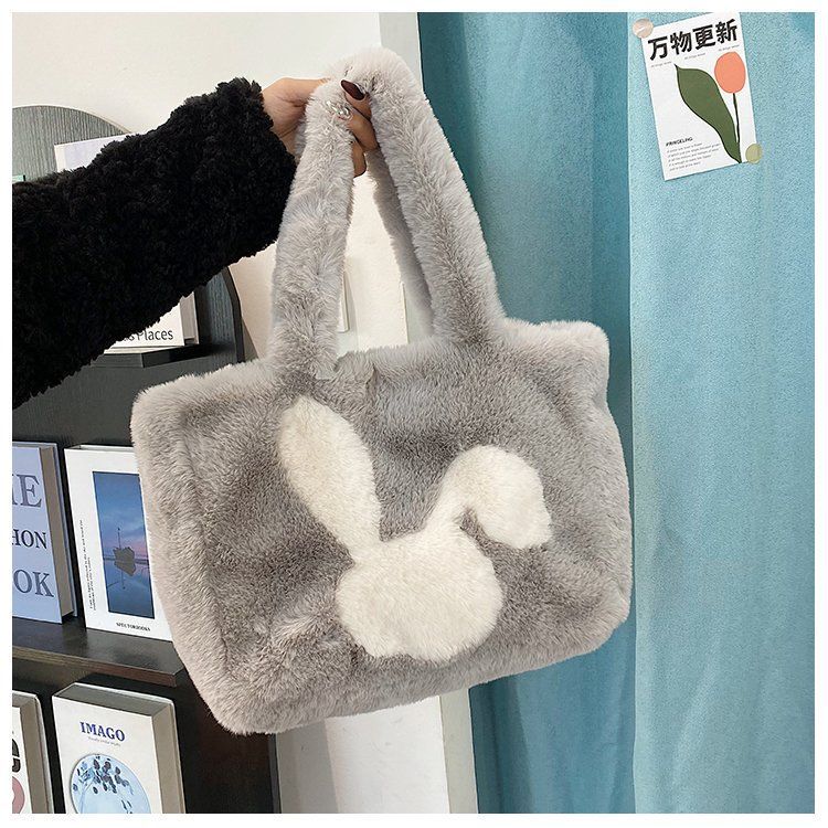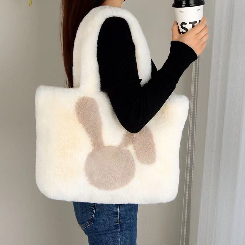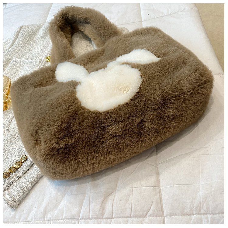 국경 간 새로운 가을, 겨울 대용량 토트 백 여성용 모피 가방 귀여운 만화 핸드백 플러시 숄더 백