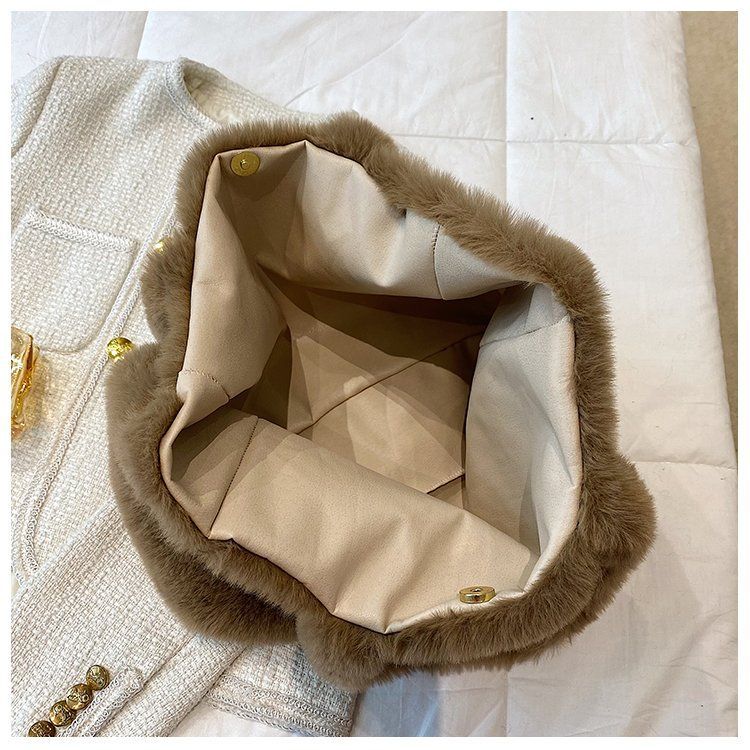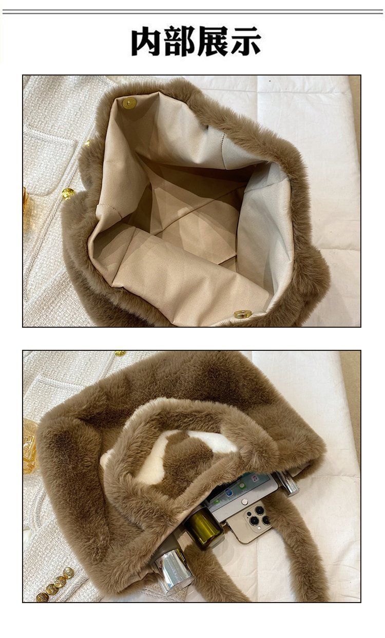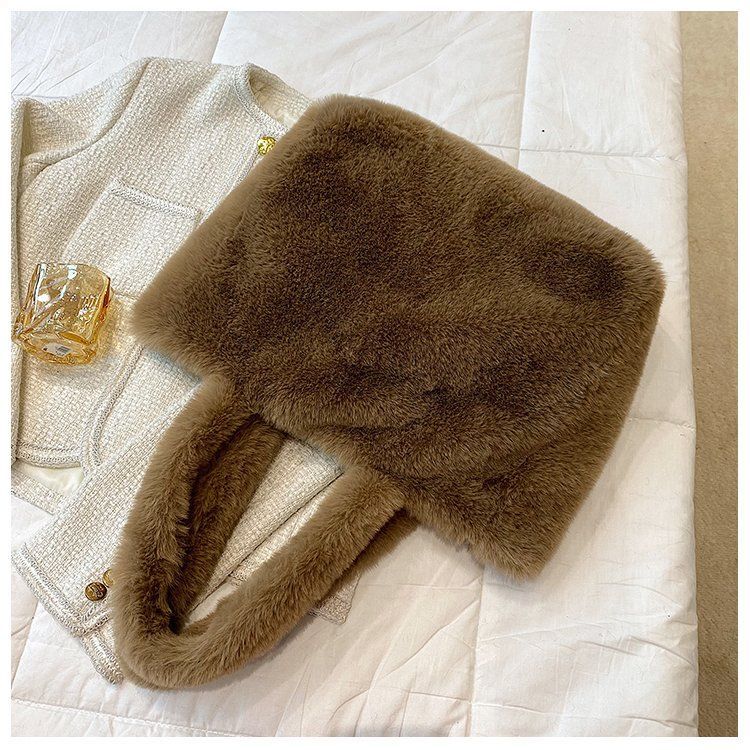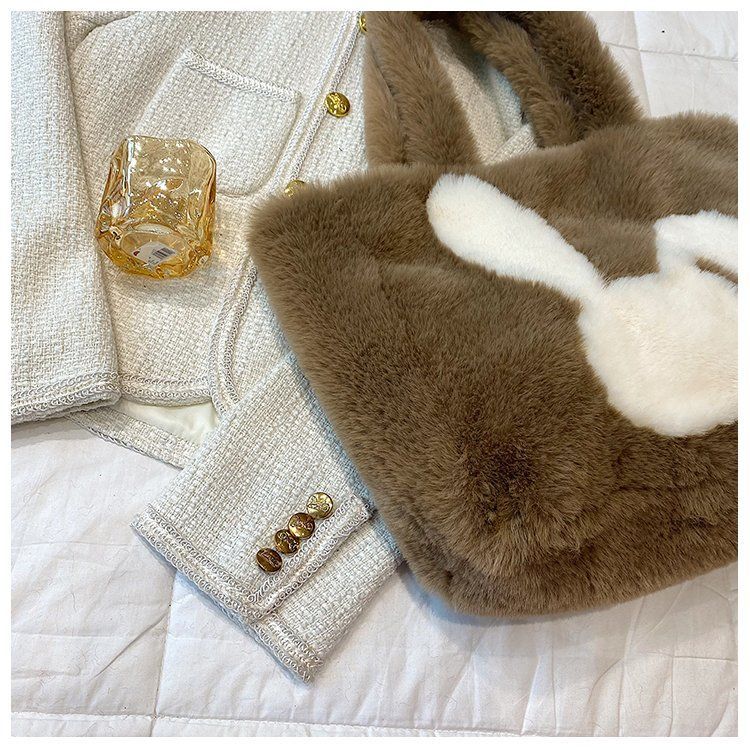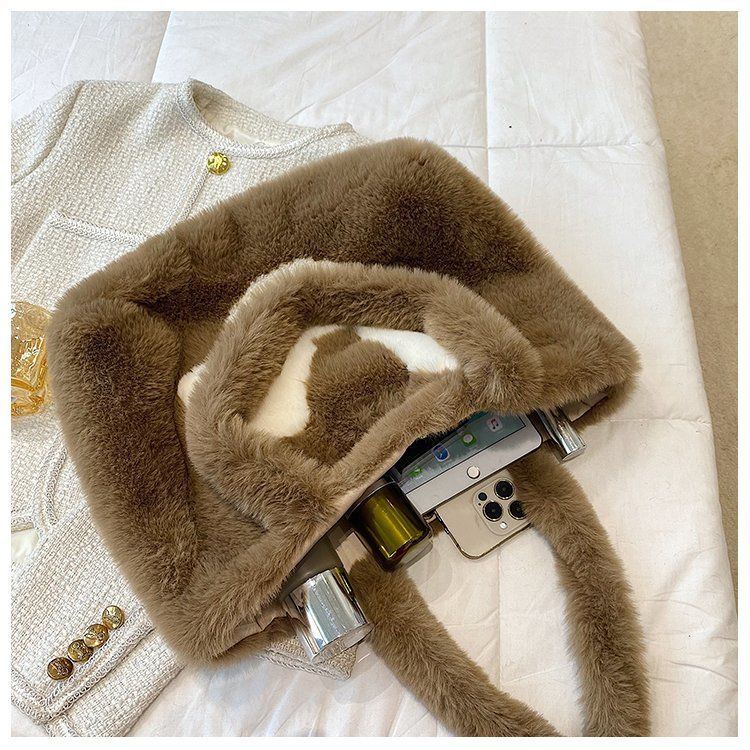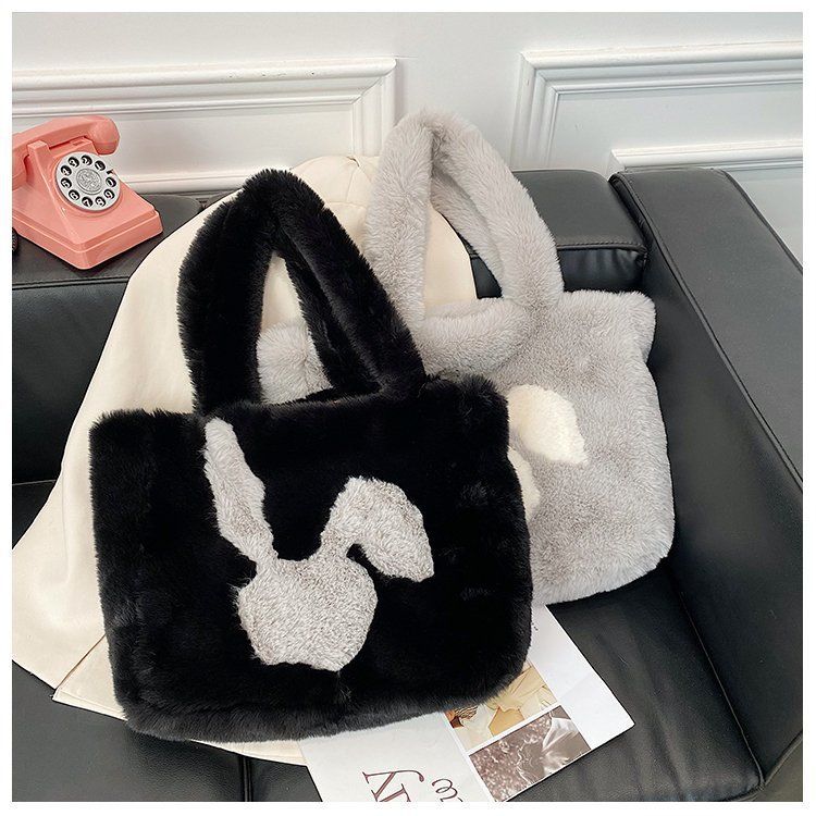 국경 간 새로운 가을, 겨울 대용량 토트 백 여성용 모피 가방 귀여운 만화 핸드백 플러시 숄더 백