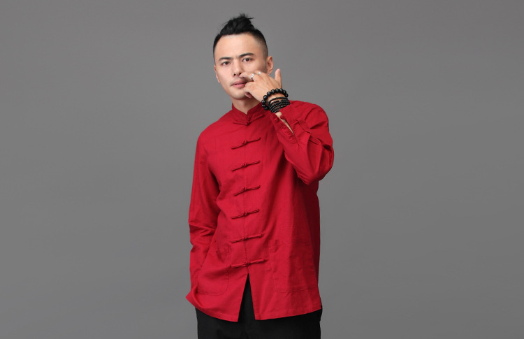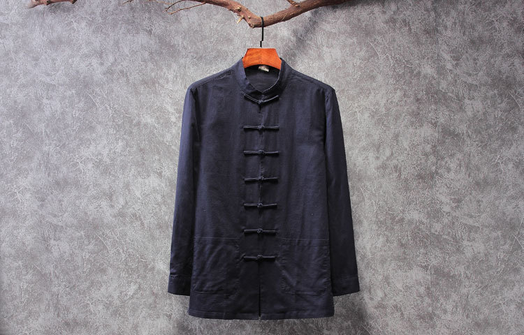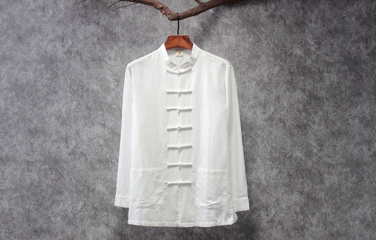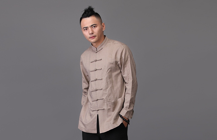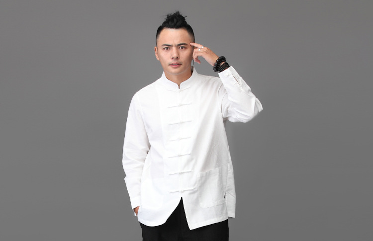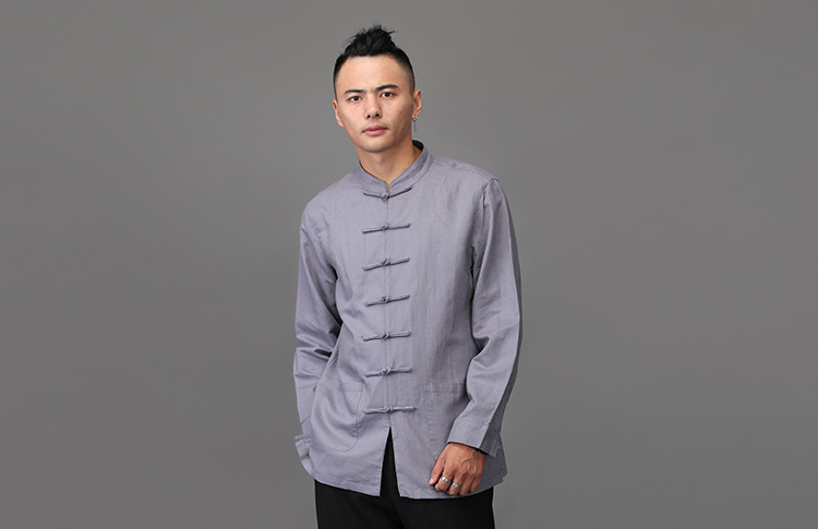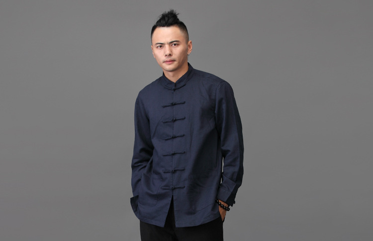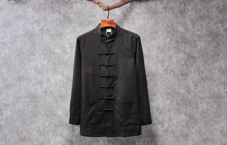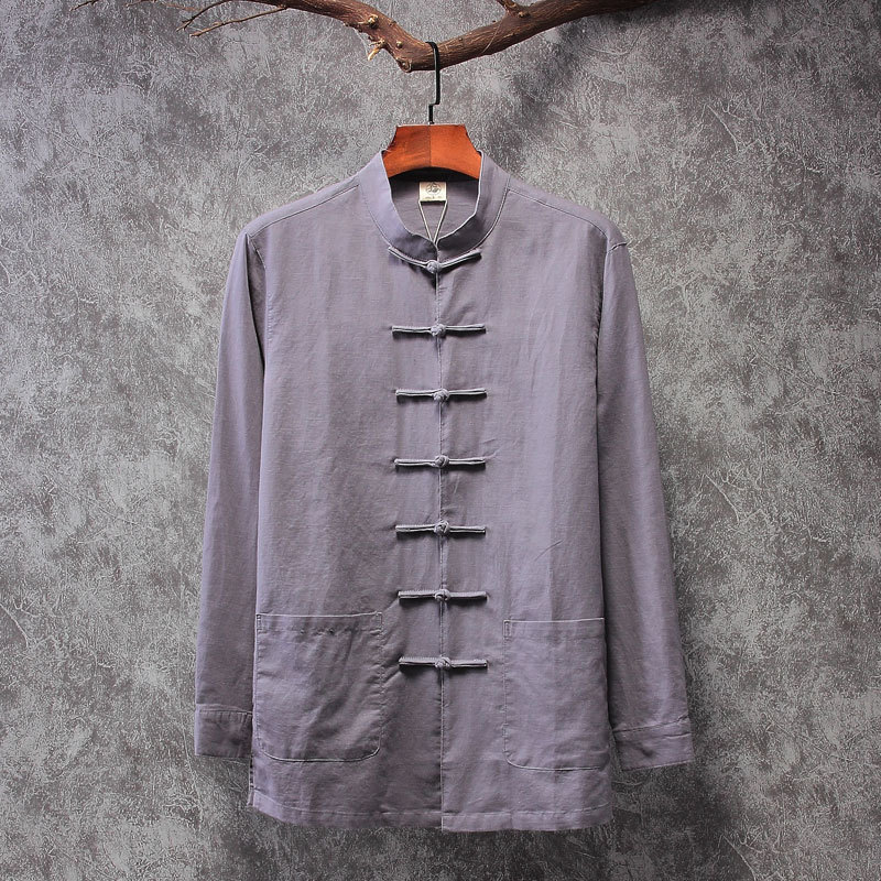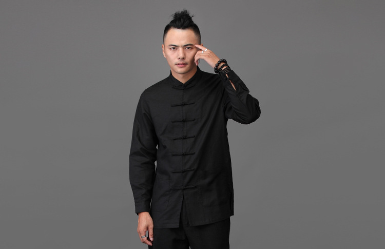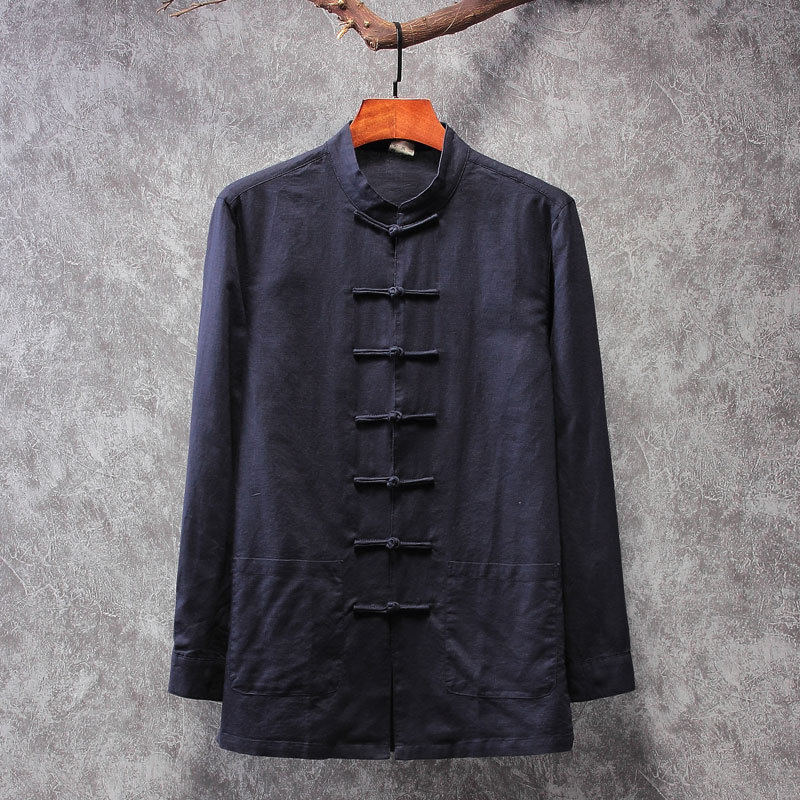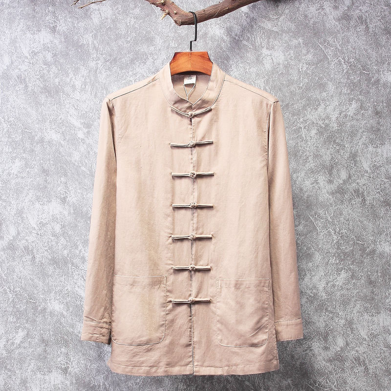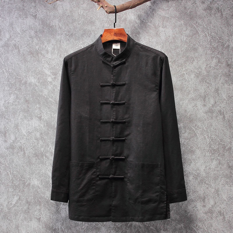 리넨 탕 세트 남성용 긴팔 중국식 한후 밑바닥 셔츠 중국식 면화와 린넨 남성용 탑 셔츠 남성용 봄과 가을 뉴스토어 가기