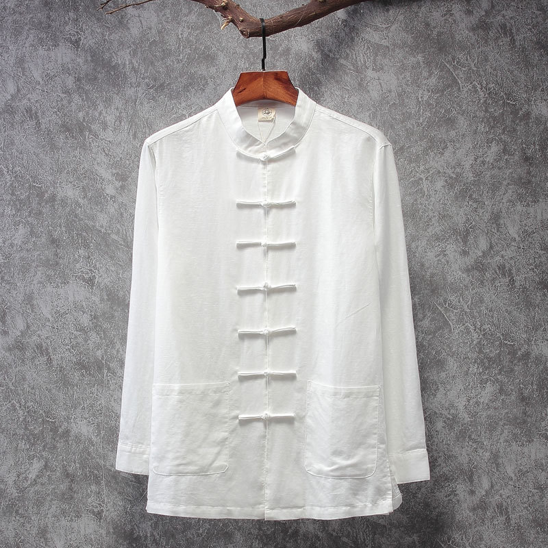 리넨 탕 세트 남성용 긴팔 중국식 한후 밑바닥 셔츠 중국식 면화와 린넨 남성용 탑 셔츠 남성용 봄과 가을 뉴