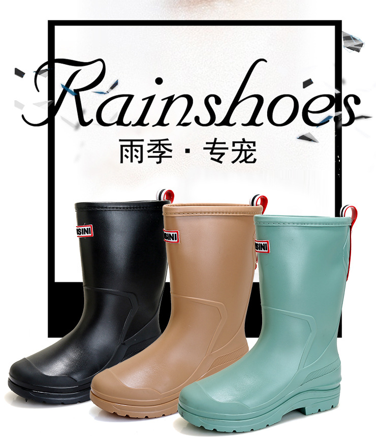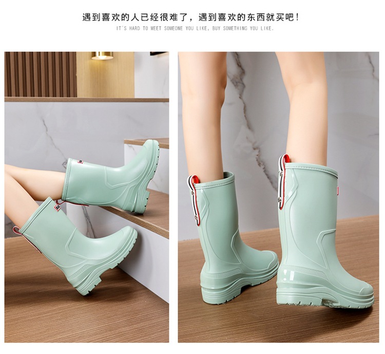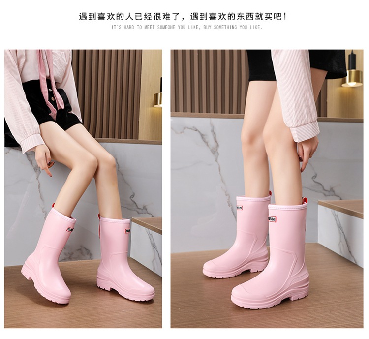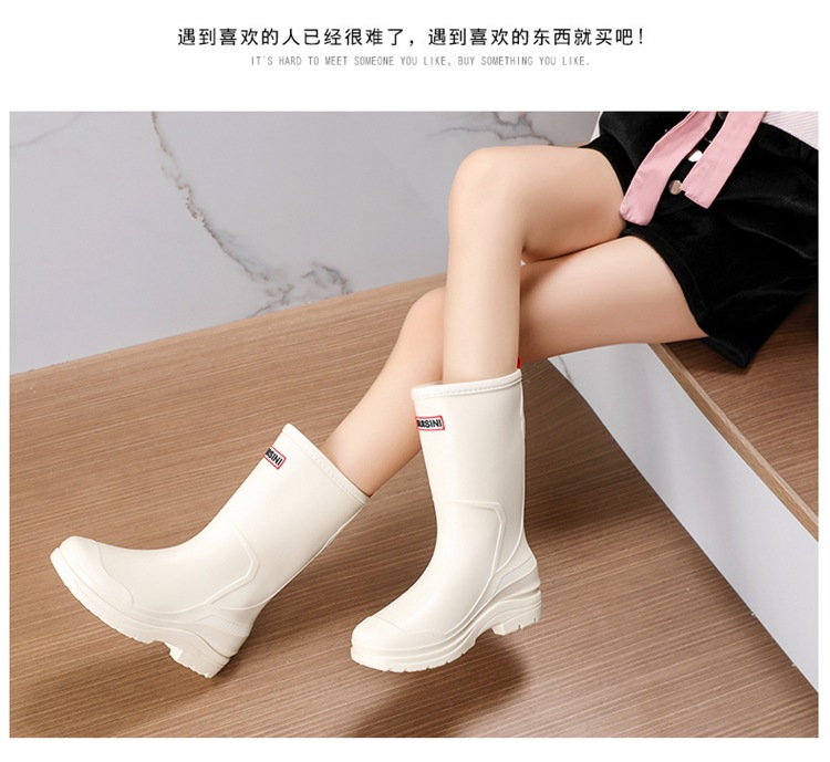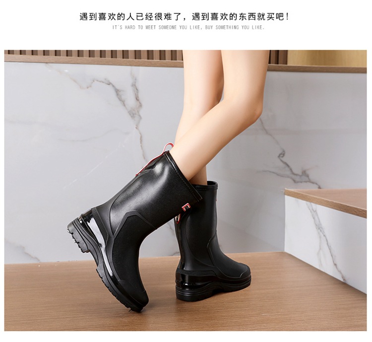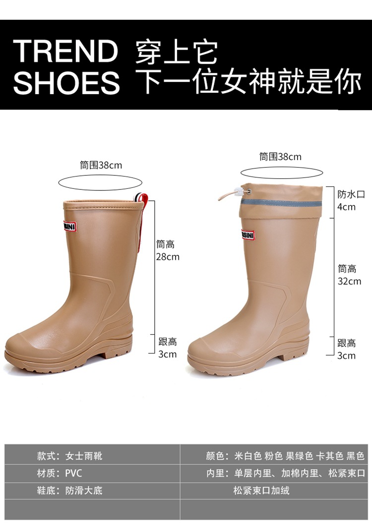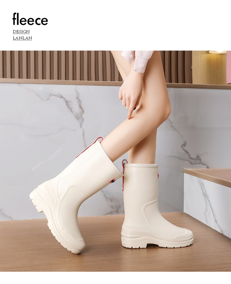 세련된 중반 송아지 드로 스트링 레인 부츠 여성면 패딩 워터 슈즈 포시즌 야외 작업 신발 세차 방수 미끄럼 방지 편안한 고무 신발스토어 가기