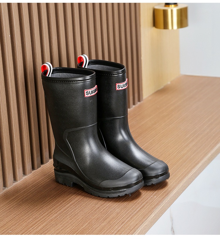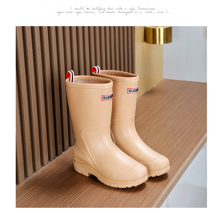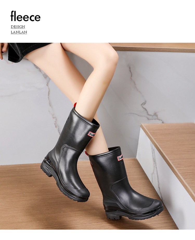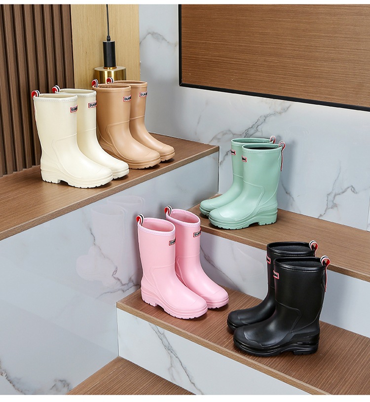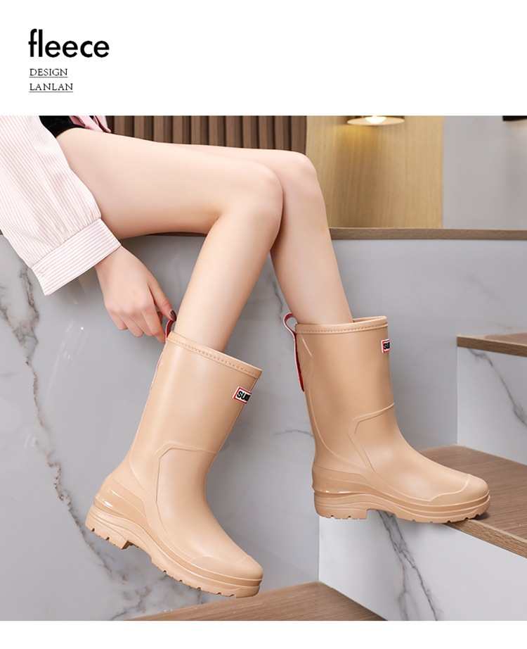 세련된 중반 송아지 드로 스트링 레인 부츠 여성면 패딩 워터 슈즈 포시즌 야외 작업 신발 세차 방수 미끄럼 방지 편안한 고무 신발