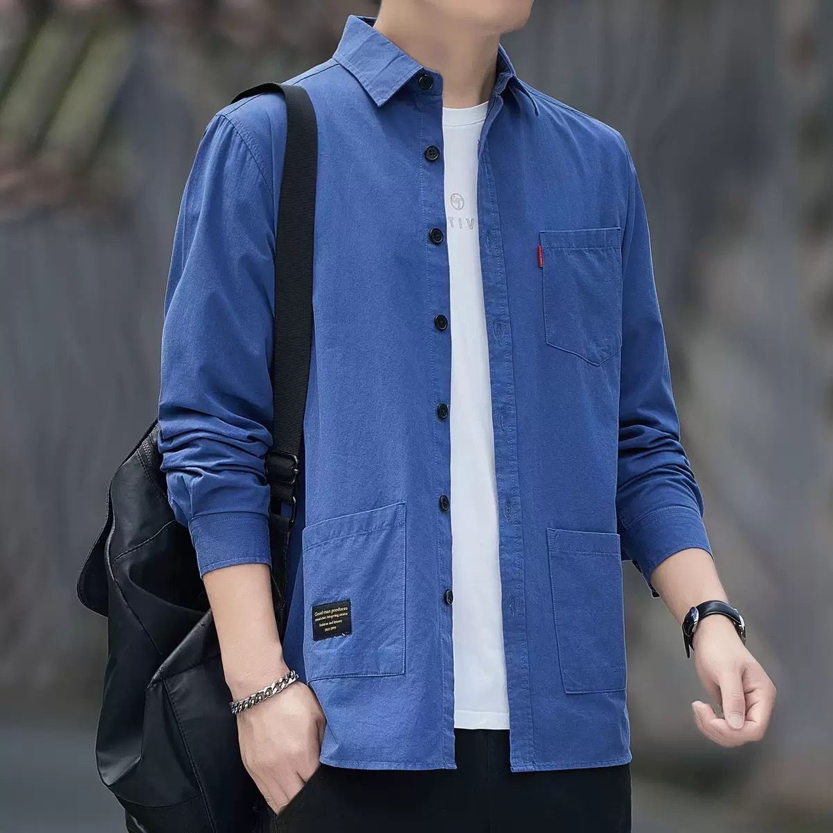 남성 봄 새로운 얇은 긴팔 셔츠 단색 다재다능한 청소년 트렌디 한 남성 옷깃 셔츠 탑 코트스토어 가기