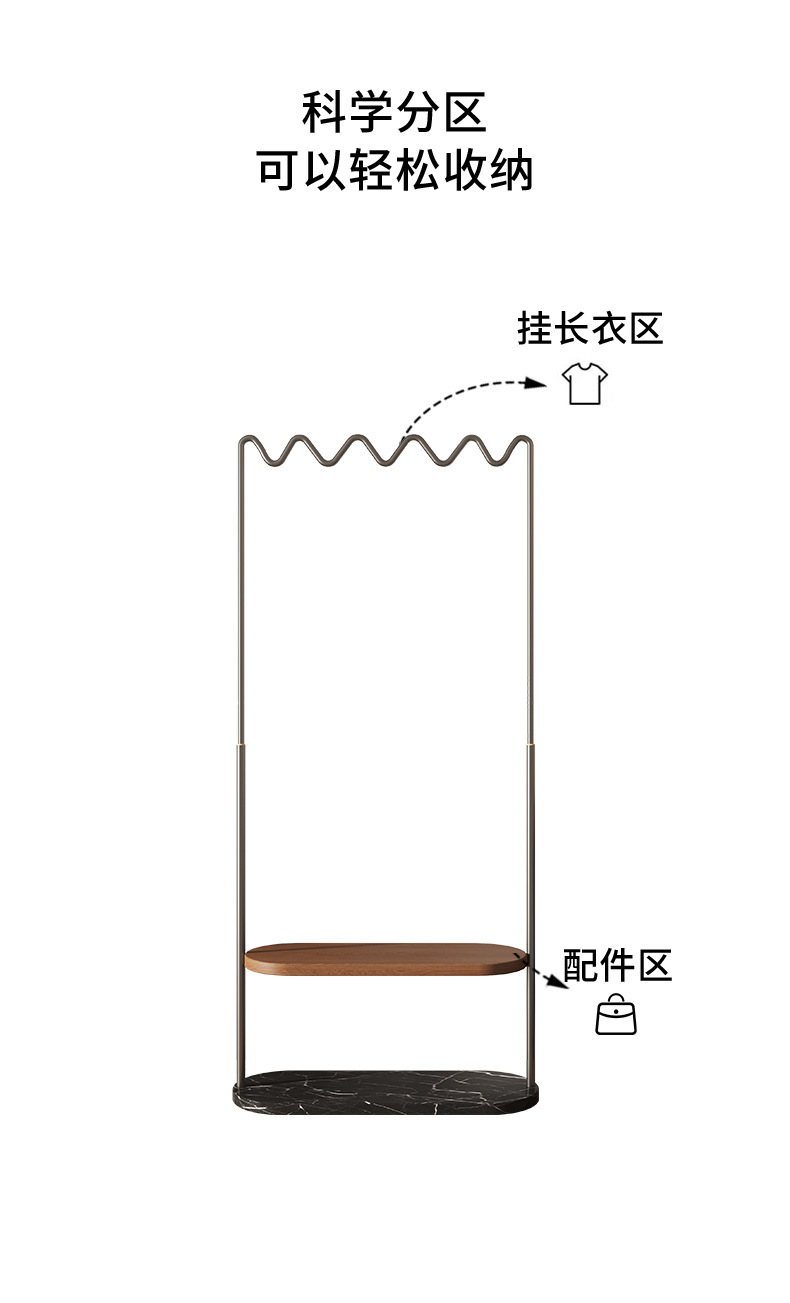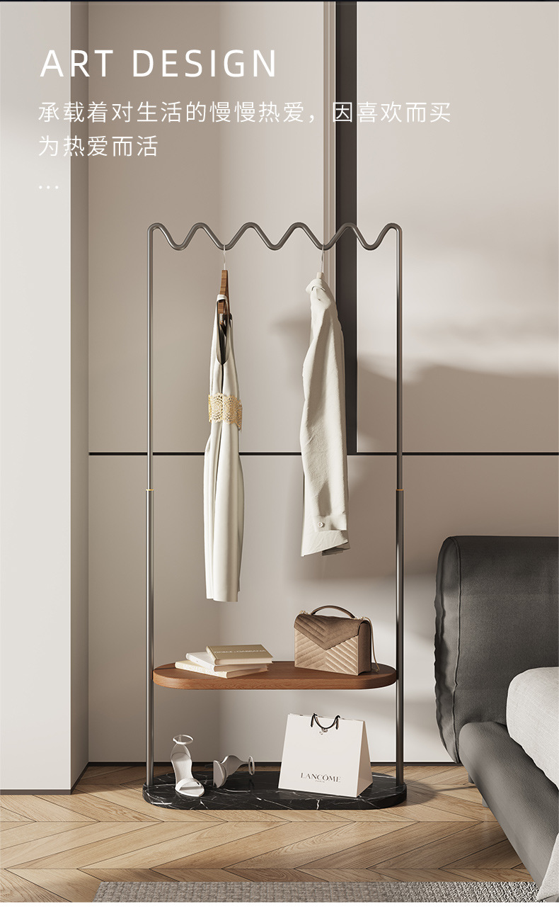 중간 고대 스타일의 가벼운 럭셔리, 코트 랙 스테인레스 스틸 대리석 바닥 옷걸이 침실 고급 단단한 나무 보관 랙