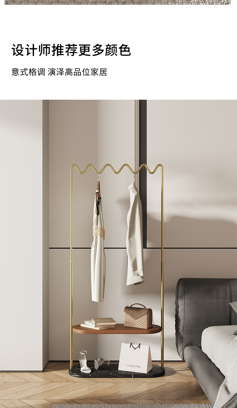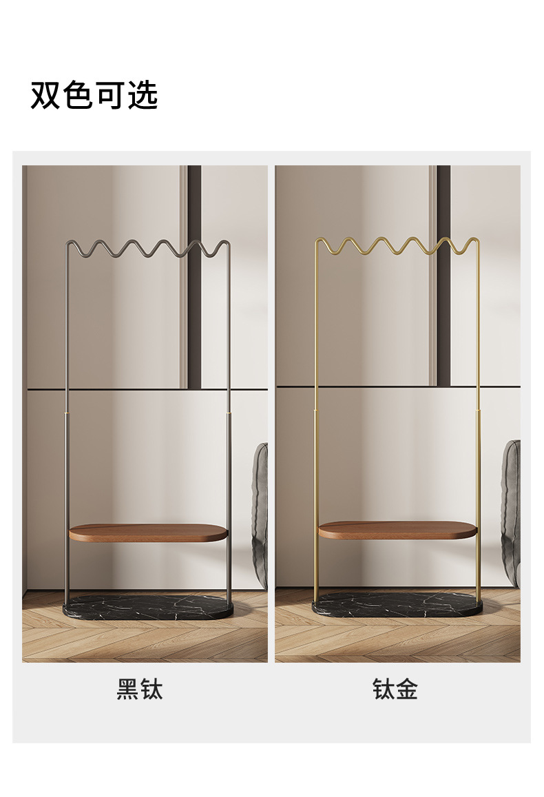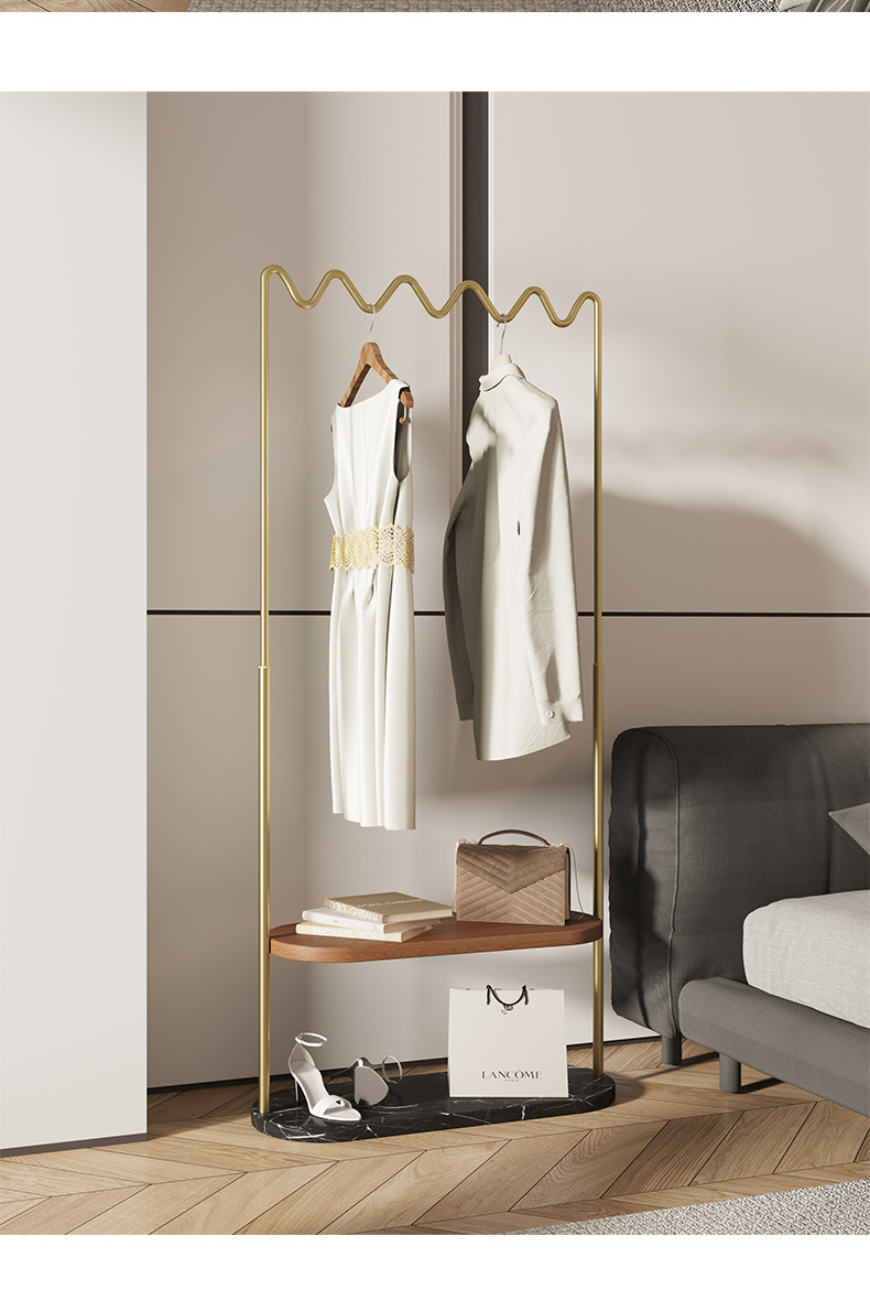 중간 고대 스타일의 가벼운 럭셔리, 코트 랙 스테인레스 스틸 대리석 바닥 옷걸이 침실 고급 단단한 나무 보관 랙스토어 가기