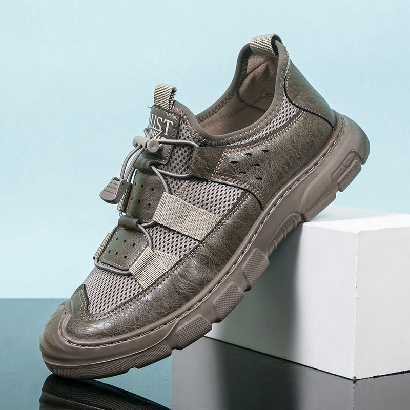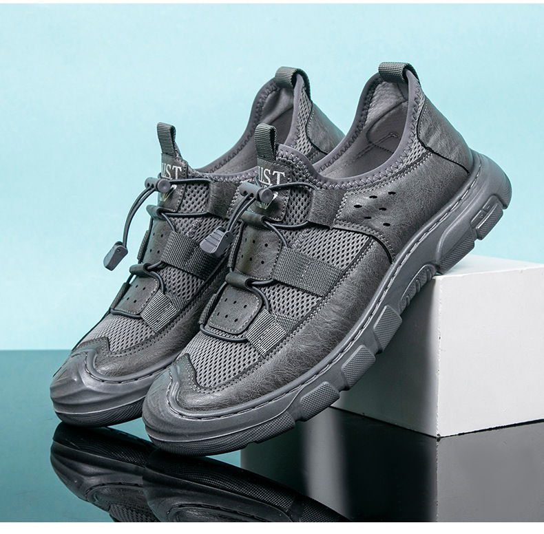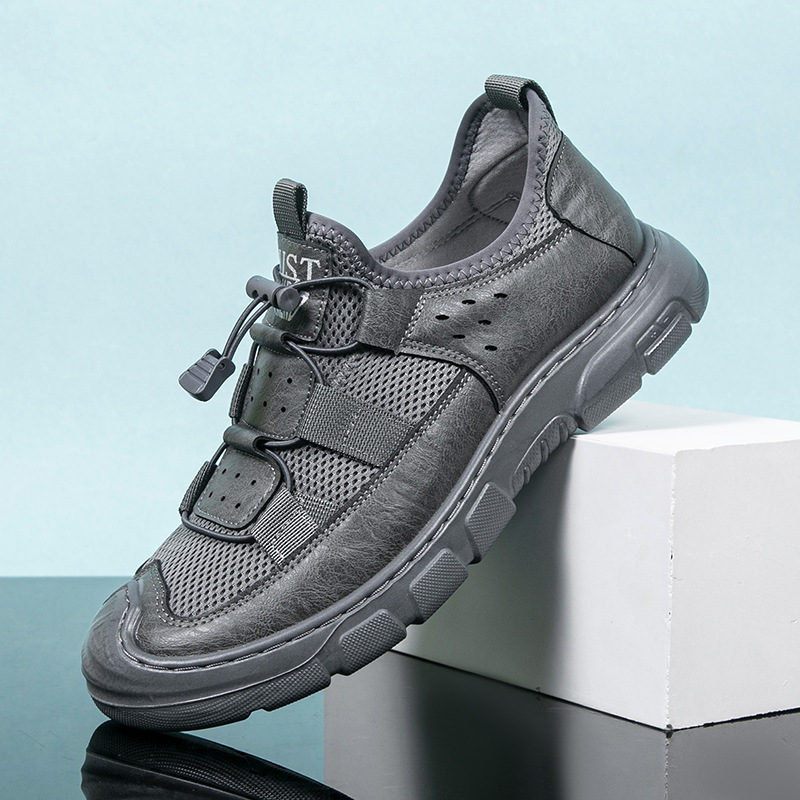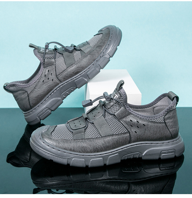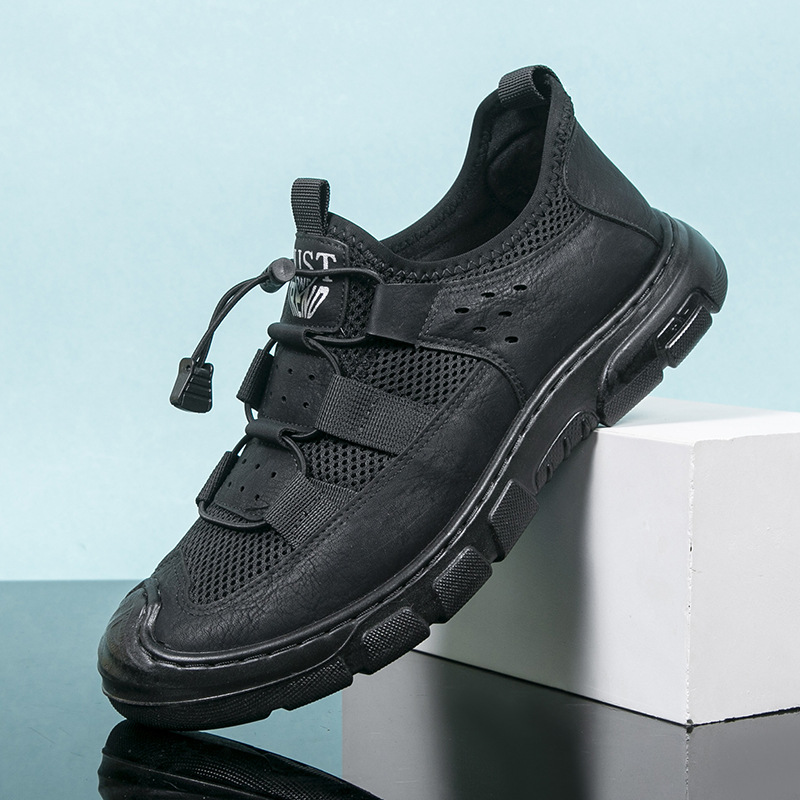2024 인기있는 남성용 메쉬 신발 가죽 메쉬 신발 남성용 메쉬 하이킹 신발 운동화 가벼운 통기성 내마모성 작업화스토어 가기