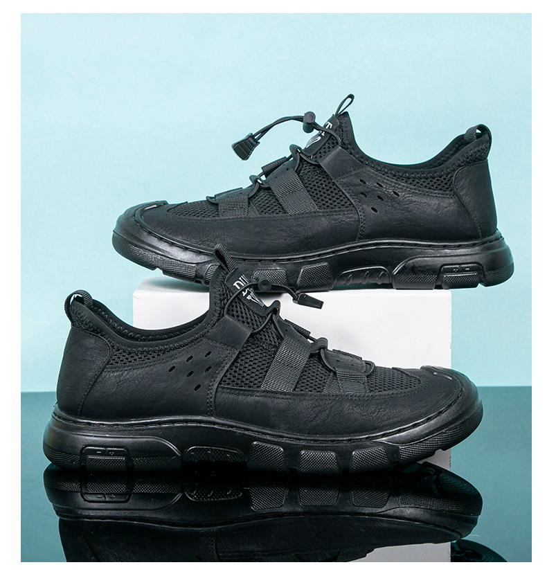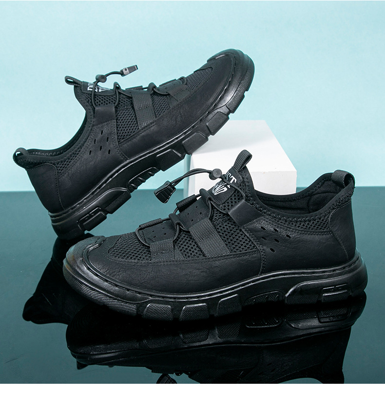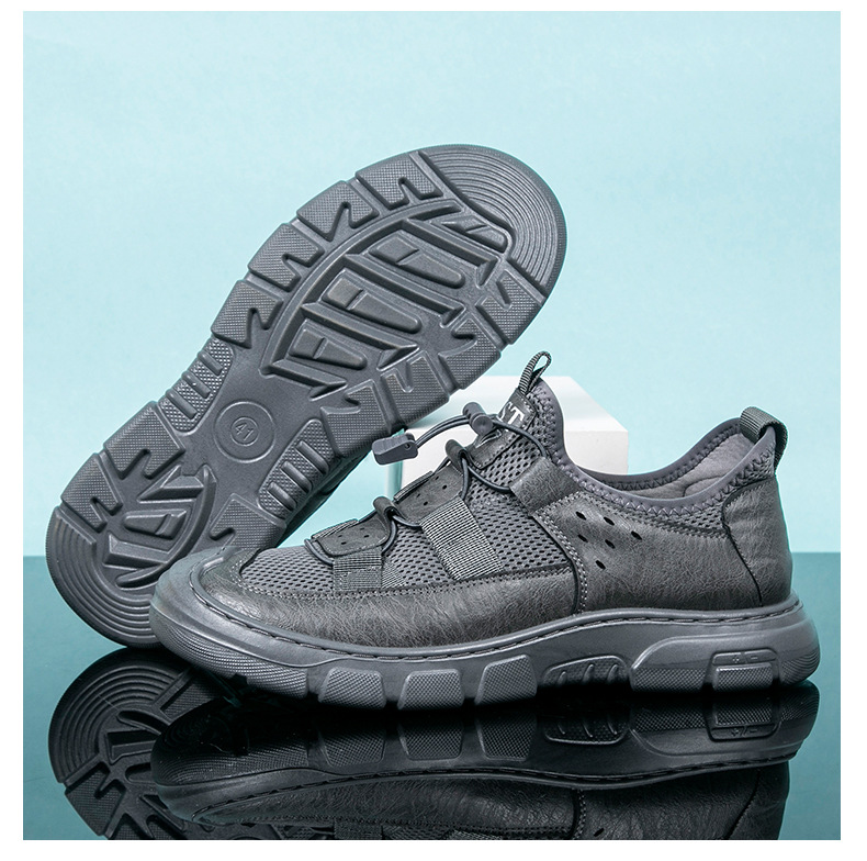 2024 인기있는 남성용 메쉬 신발 가죽 메쉬 신발 남성용 메쉬 하이킹 신발 운동화 가벼운 통기성 내마모성 작업화